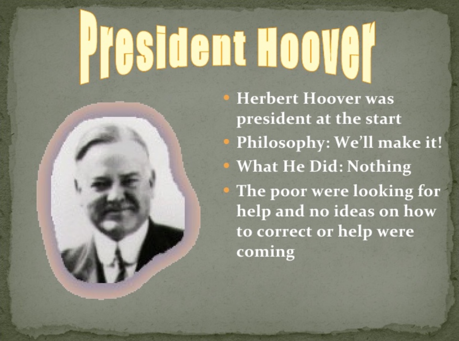 This was the time the economy crashed. Almost a forth of workers out of jobs. Not enough money to help out.
