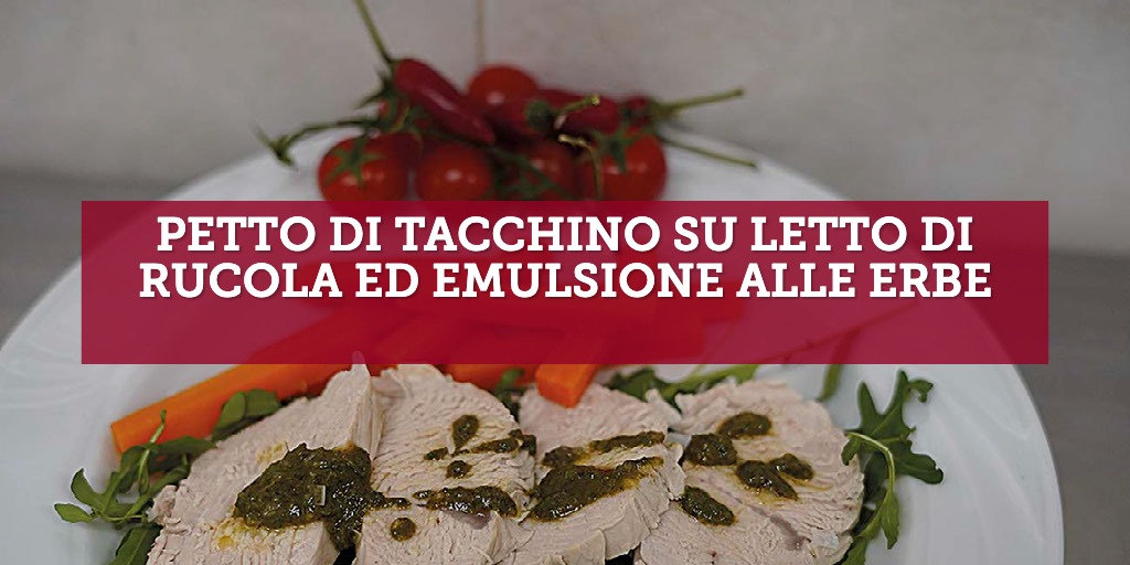 Tagliare il tacchino, adagiarlo sopra rucola e verdure e irrorare con la salsa.