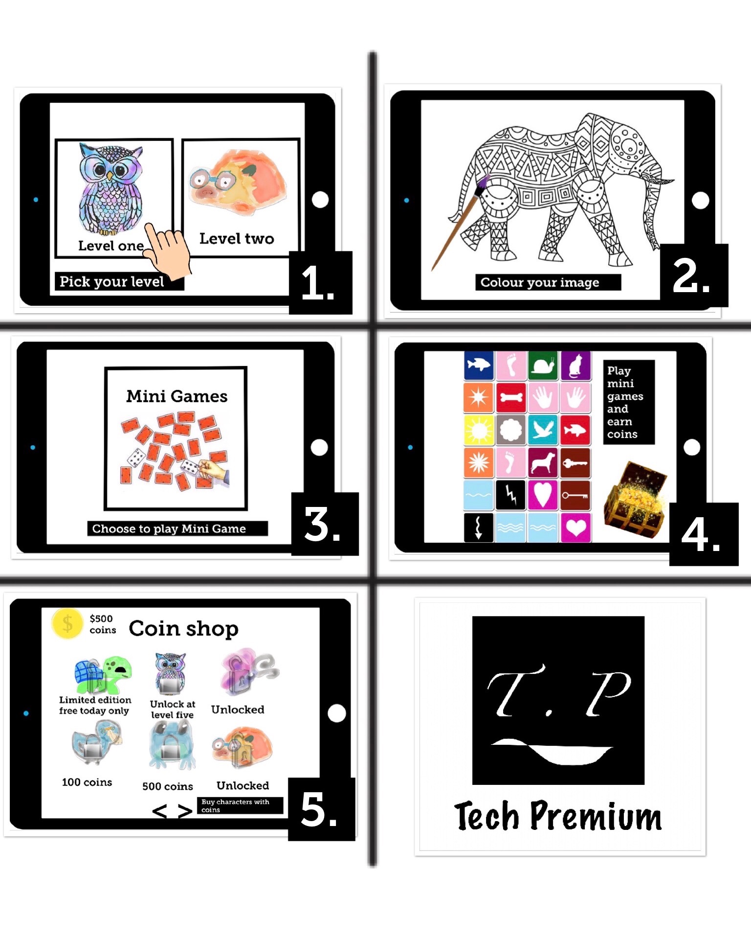 Mindful Colouring is an app that allows the user to colour in and play mini games. You are given 10 colouring pages for free and you have to buy the next lot with coins. You are probably asking where the coins come from or how you earn the coins? Well, to earn coins you must play the mini games in the Mindful Colouring app itself. One of the mini games is memory cards. In this mini game you have a bunch of levels you must complete to earn more coins. The more coins you earn the more packs you can purchase. You will get one free spin a day to see what new card games you have unlocked. Once you have unlocked all the card games you can save them and get free access to them whenever you want. Winning mini games can get you some different colouring and drawing utensils. Once you have collected all the different utensils you can use them whenever you need them.