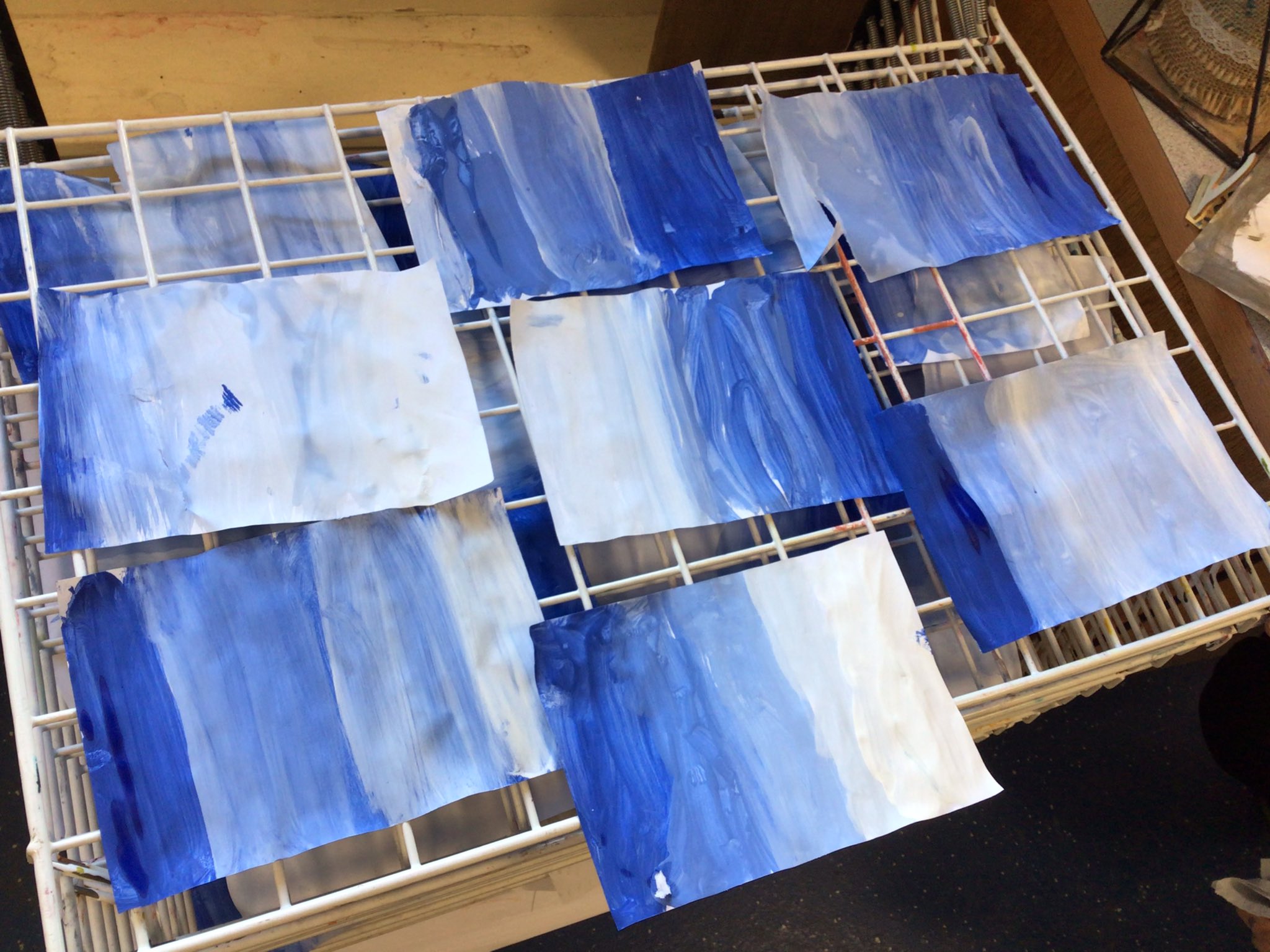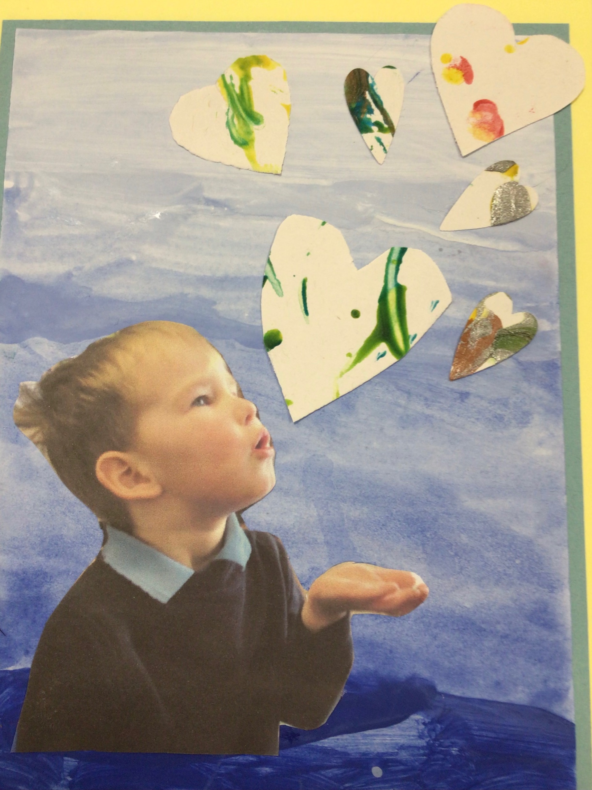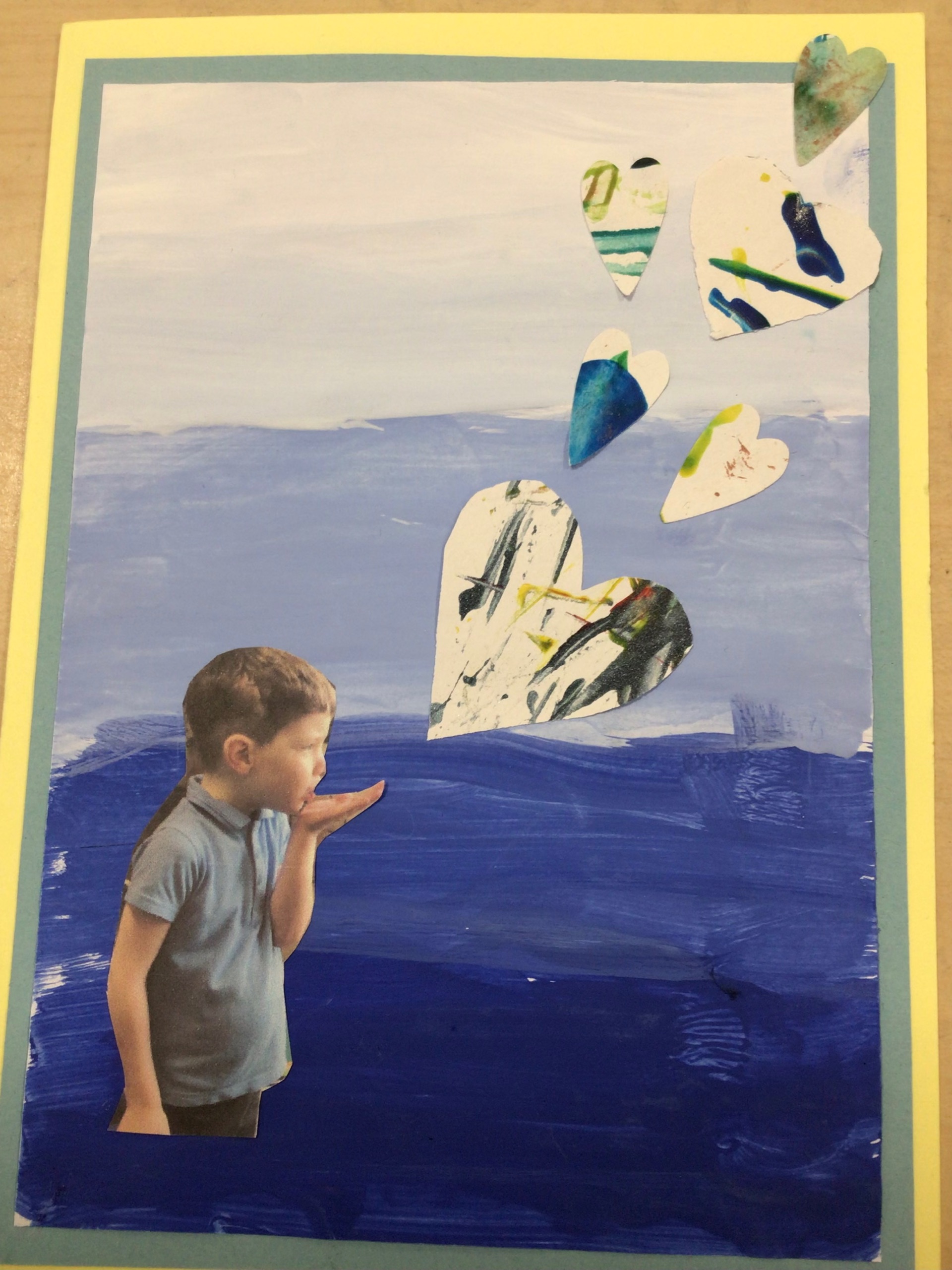 We added the hearts onto a background which was created by different shades of blue.