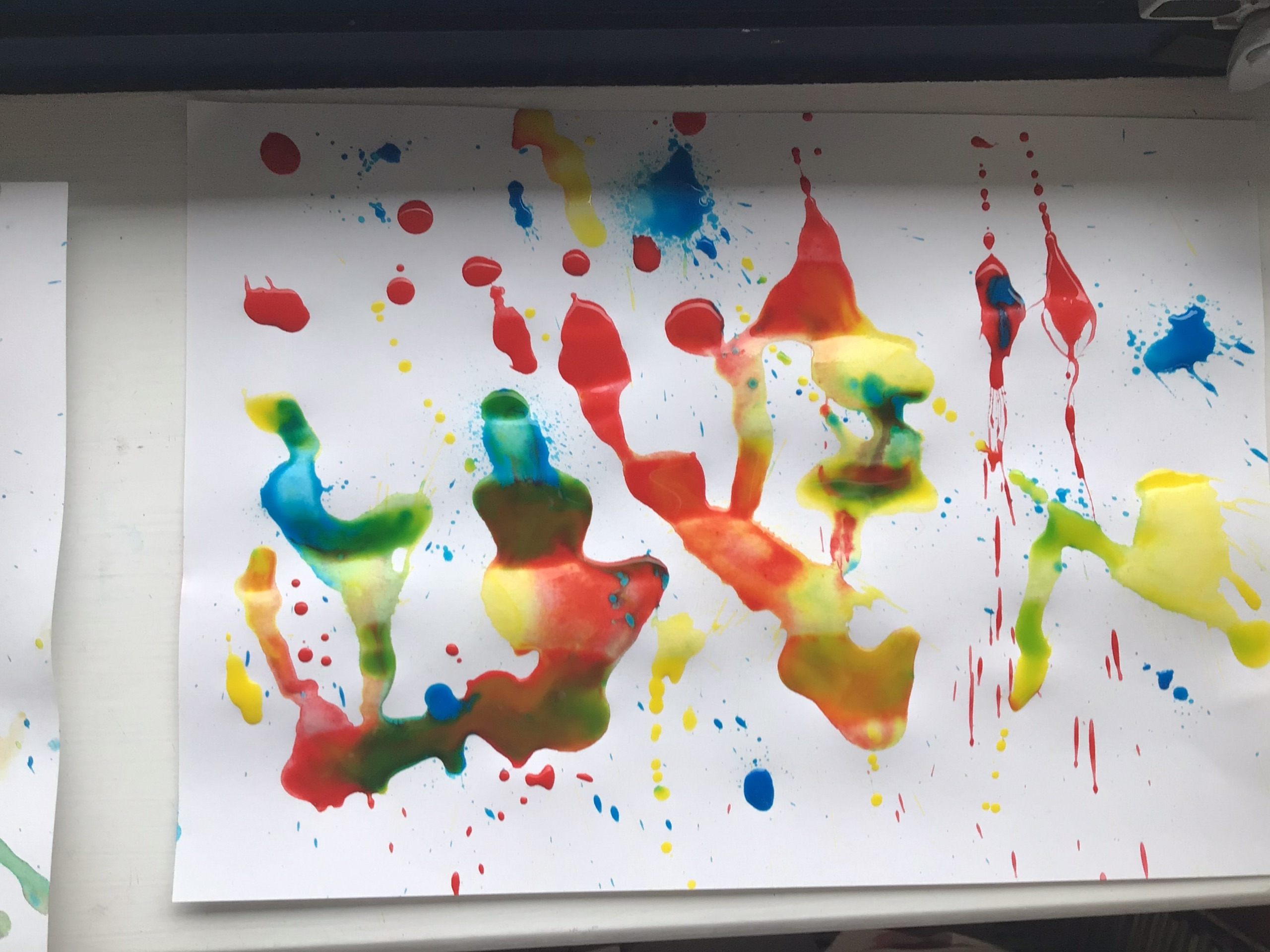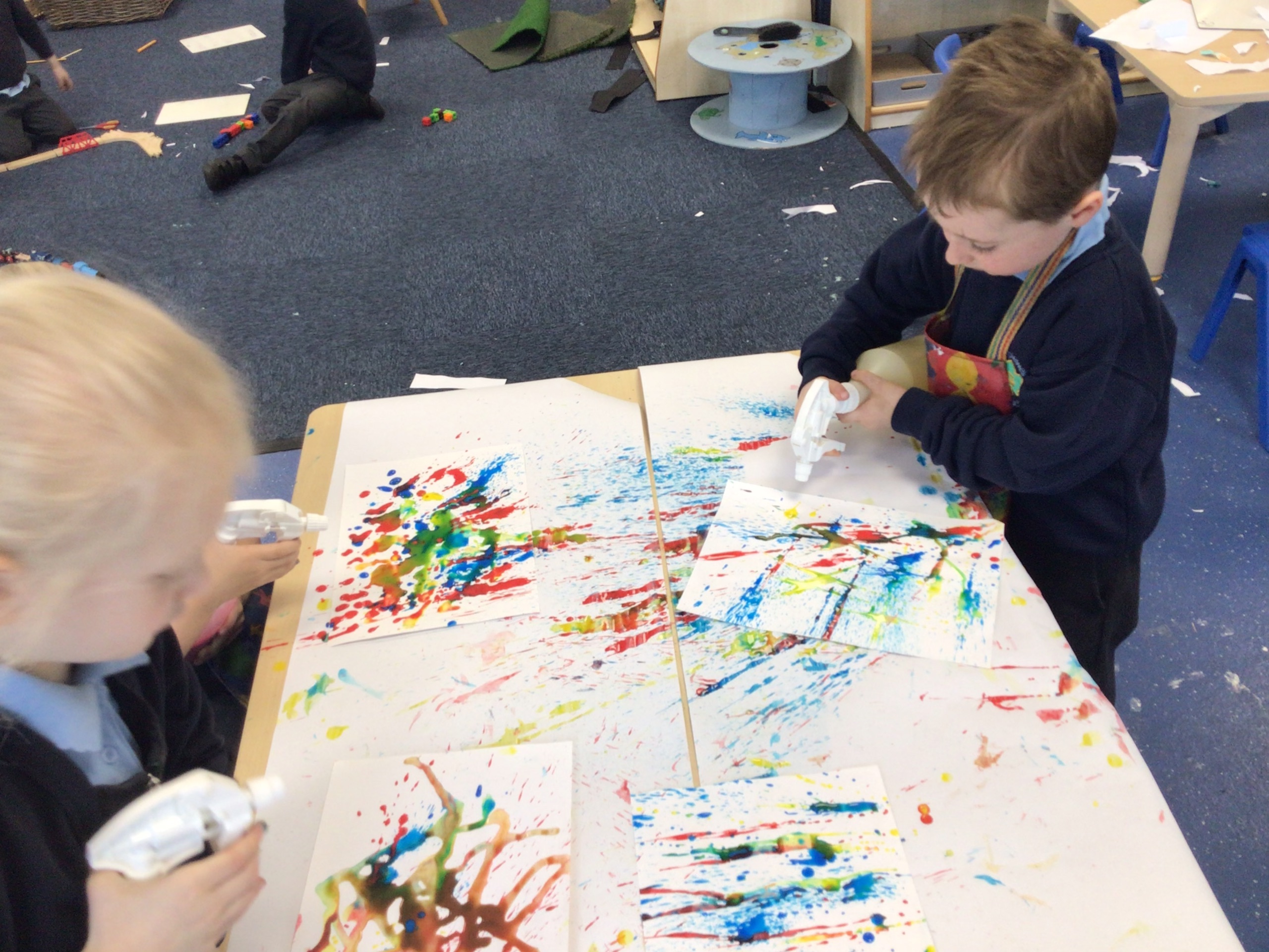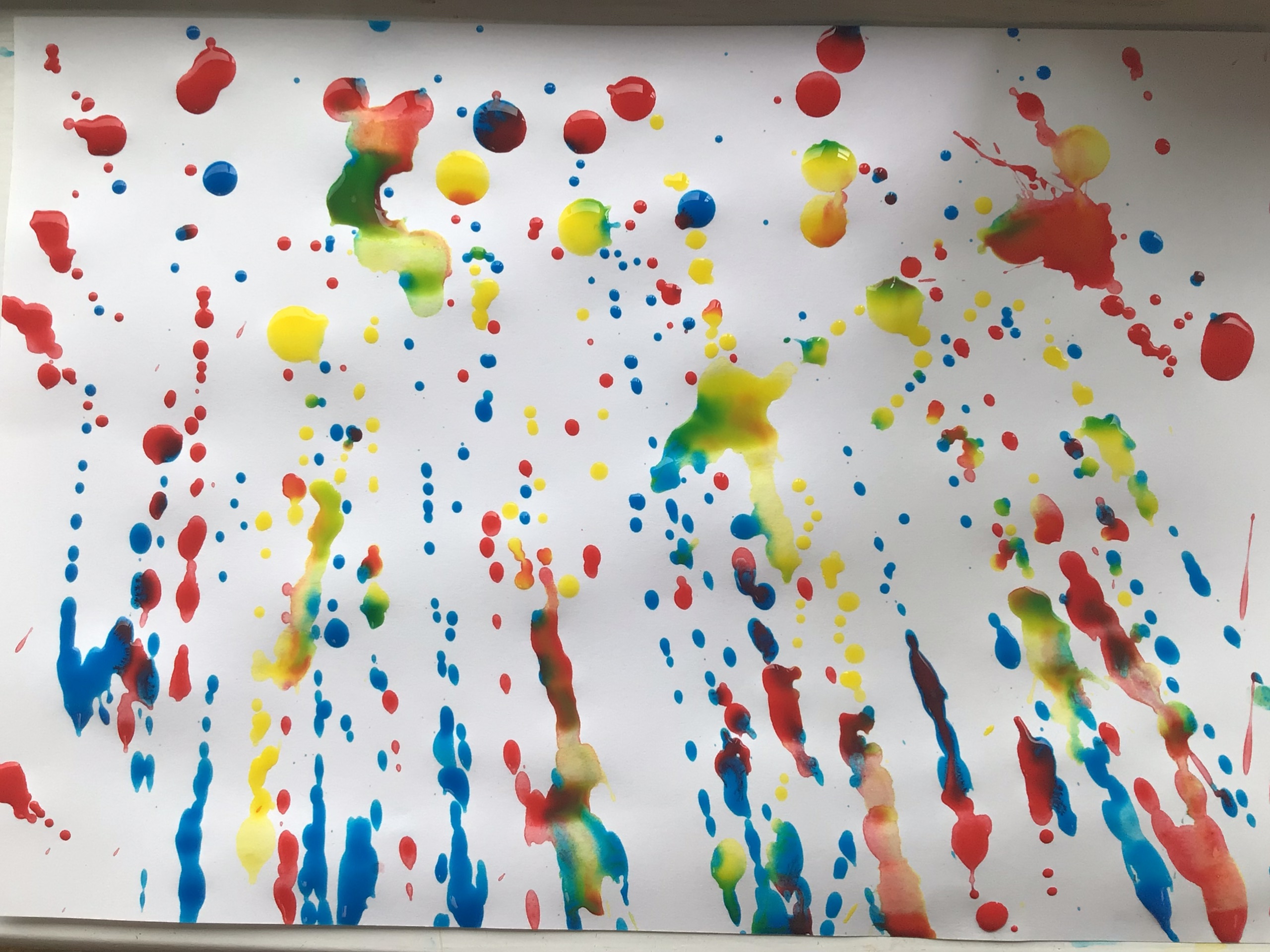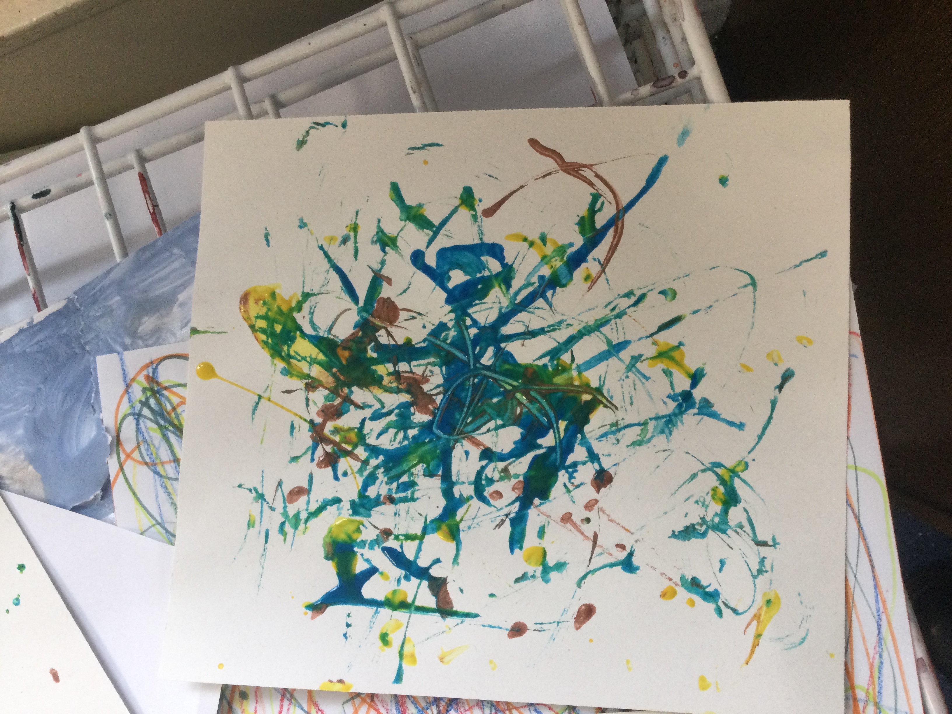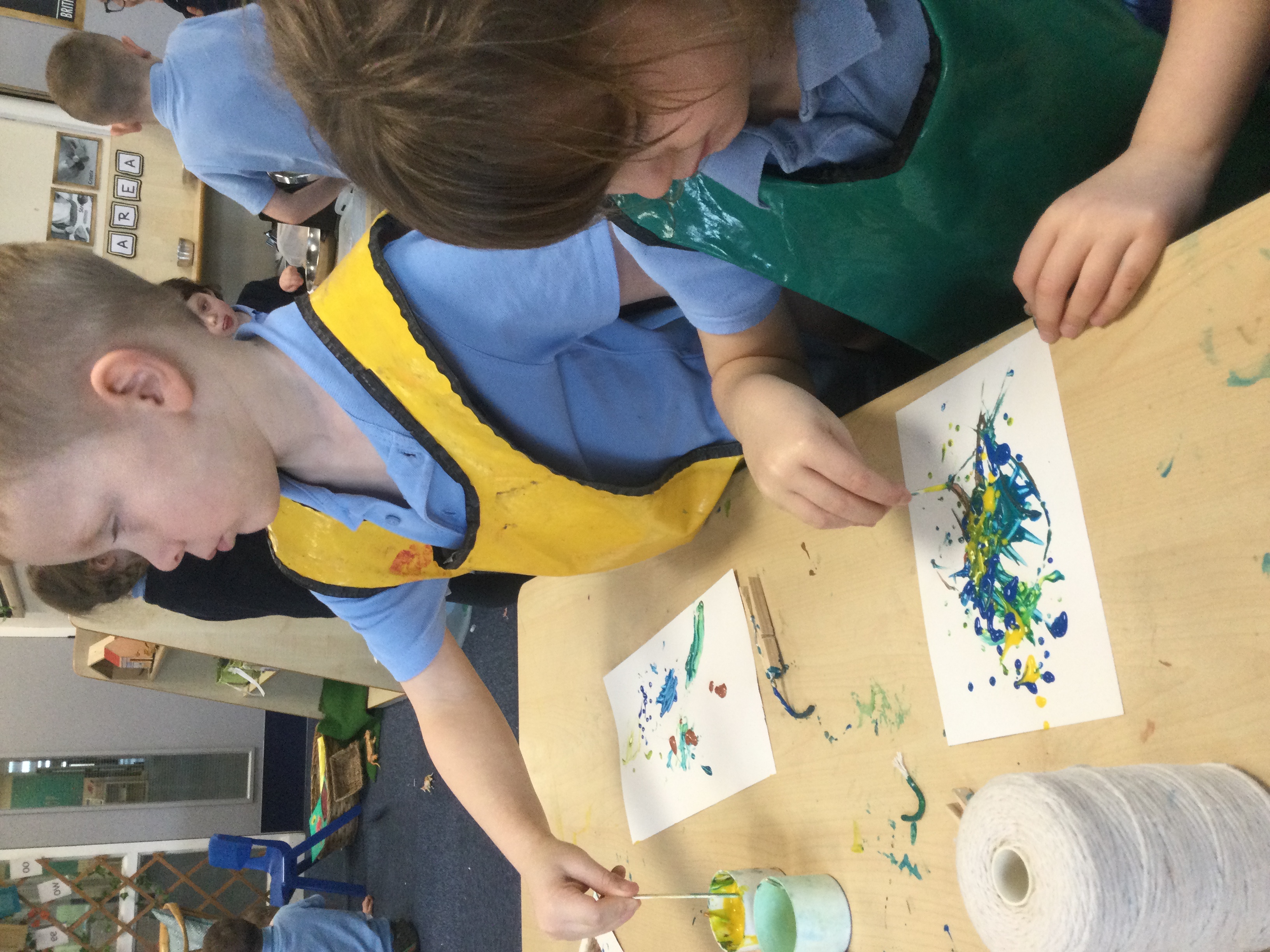 We created our own pieces of art inspired by Jackson Pollock. He used splatting on paper with paint and used different tools.