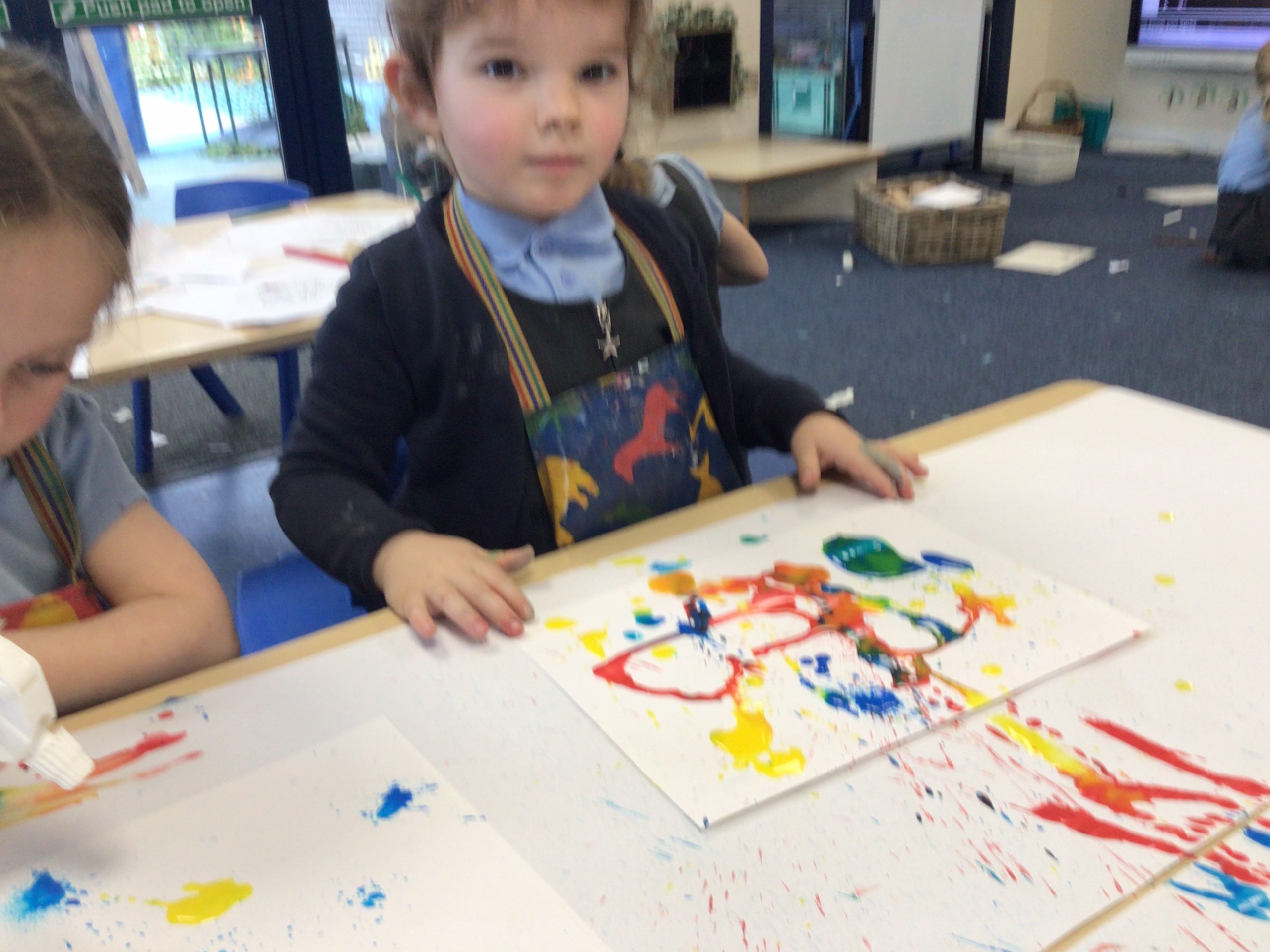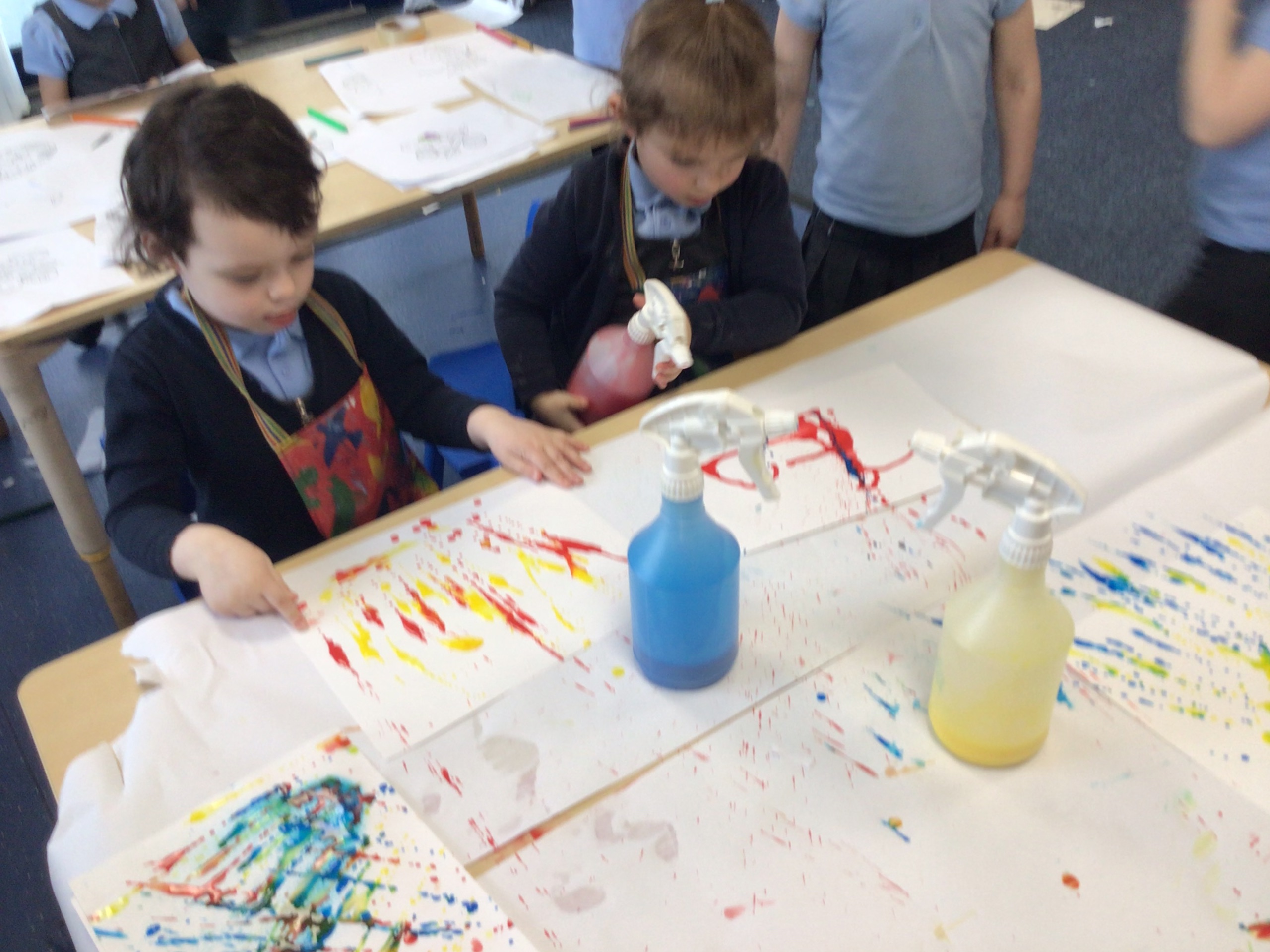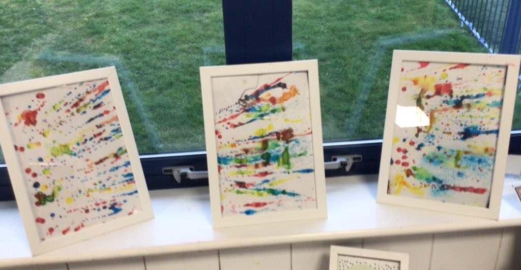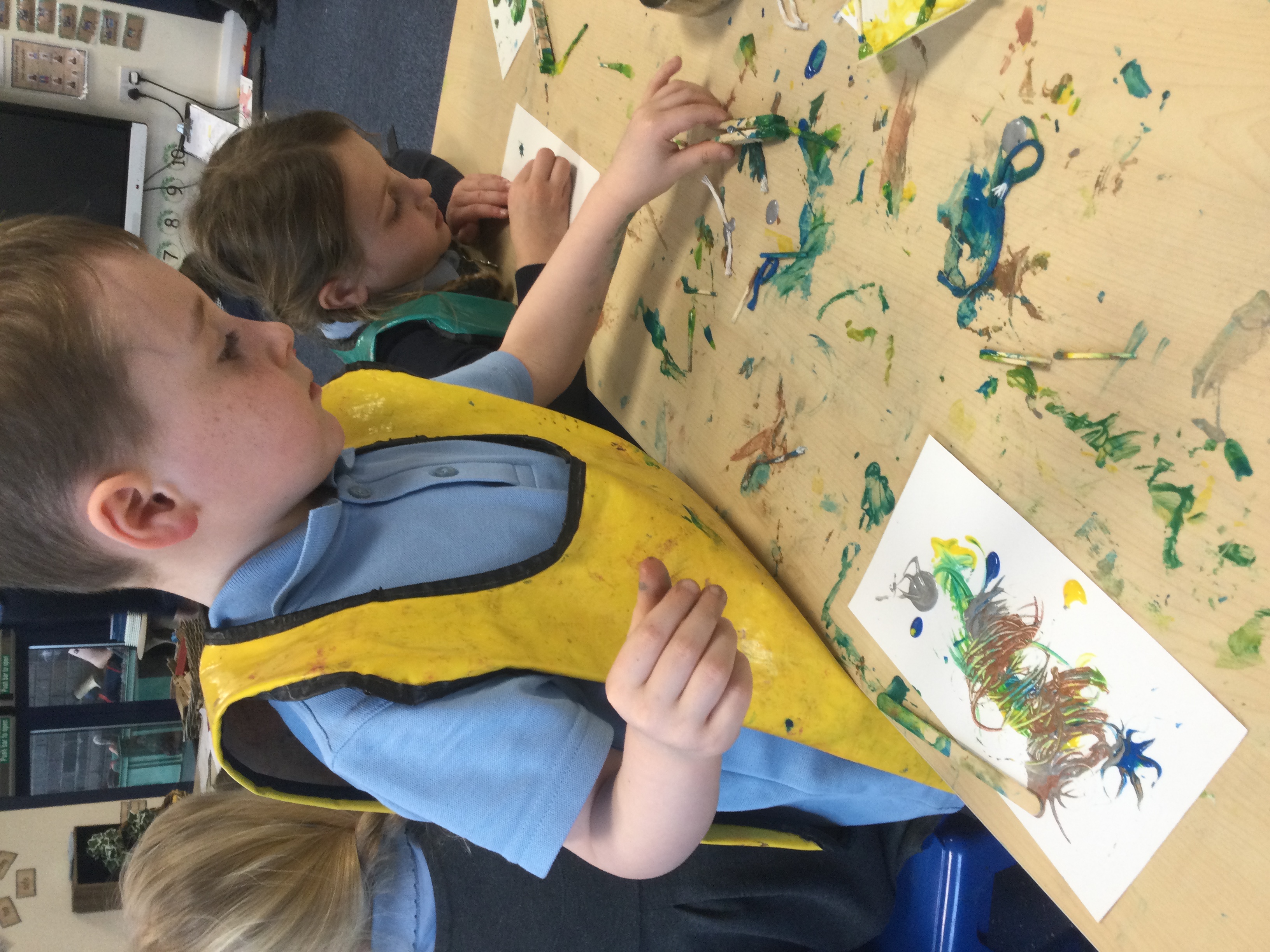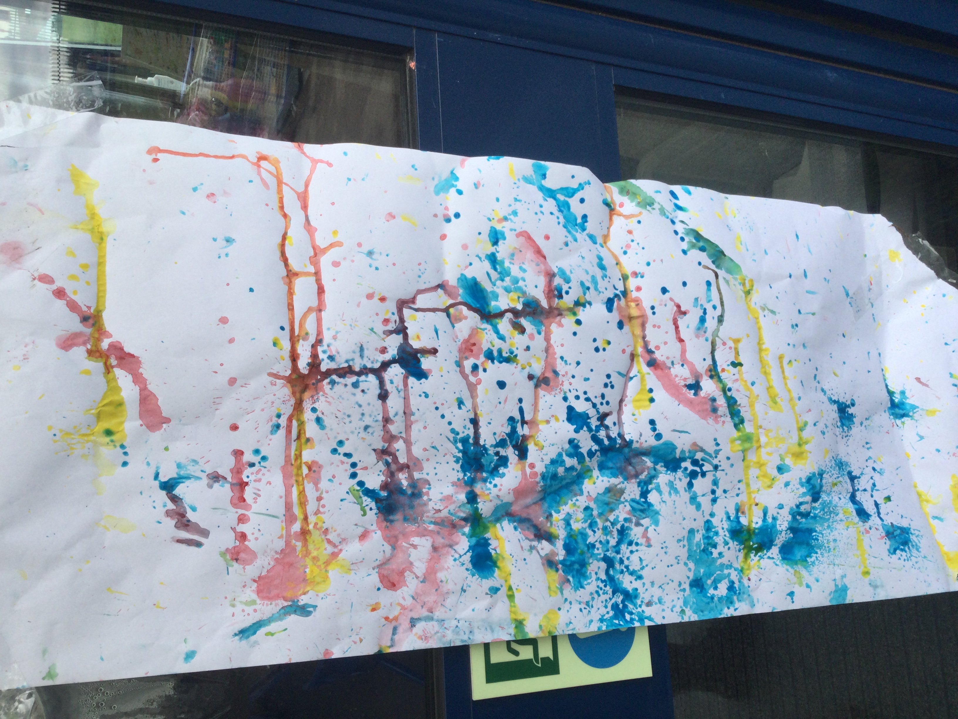 We created our own pieces of art inspired by Jackson Pollock. He used splatting on paper with paint and used different tools.