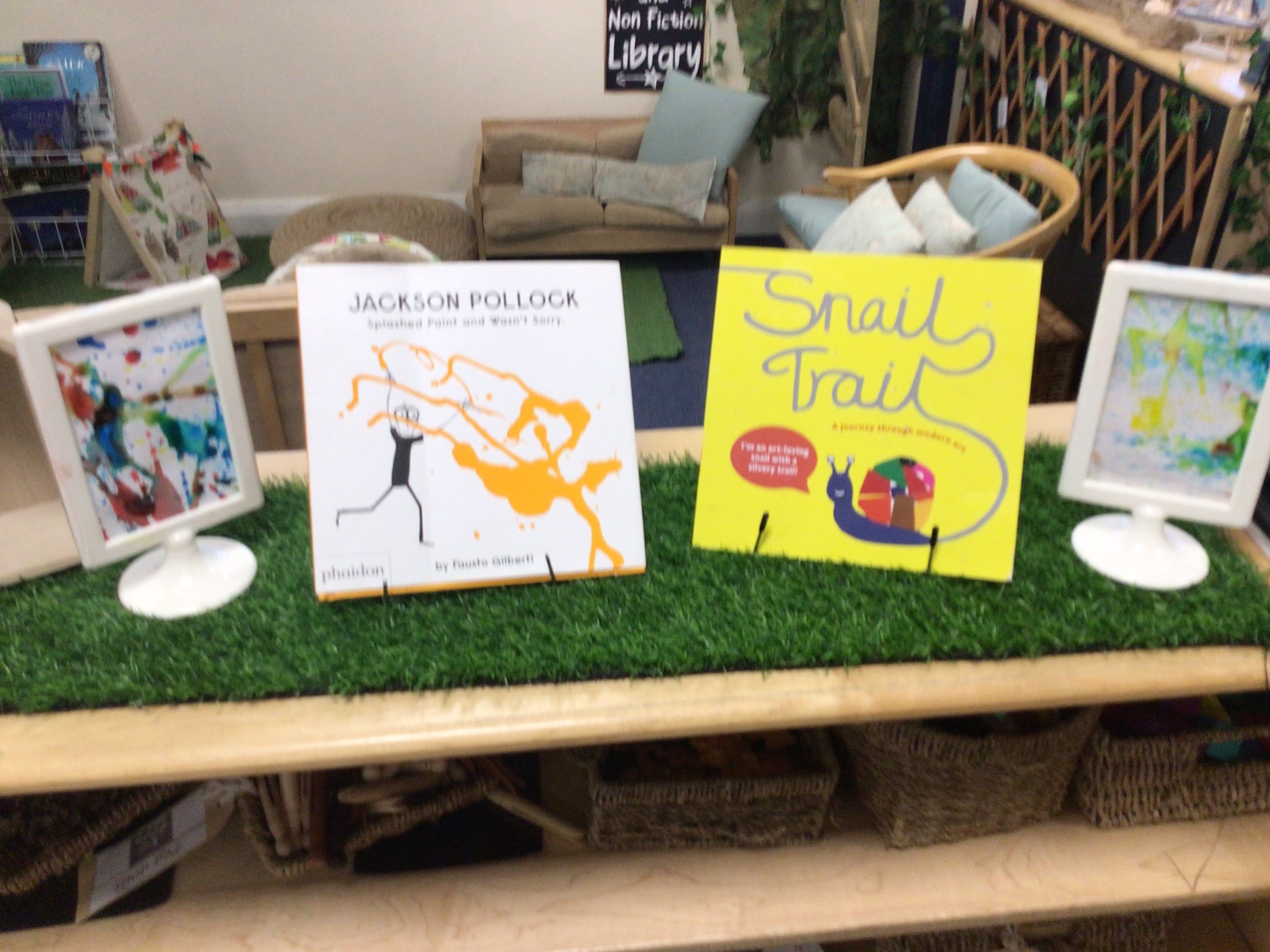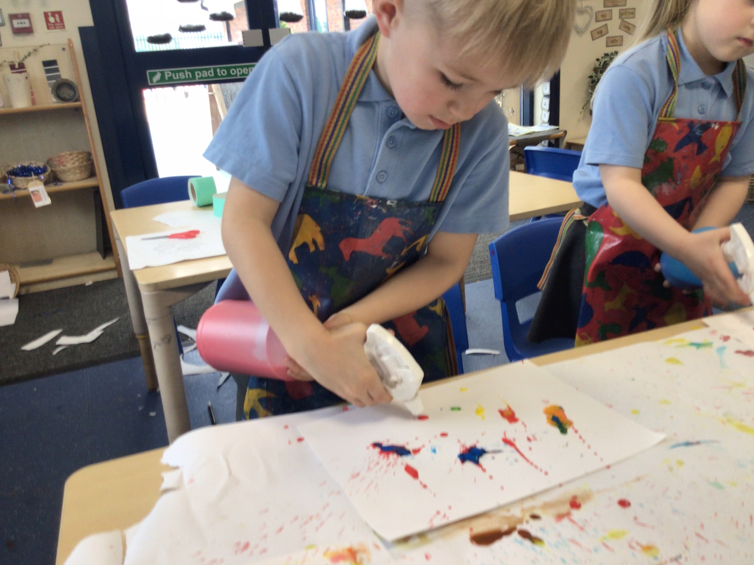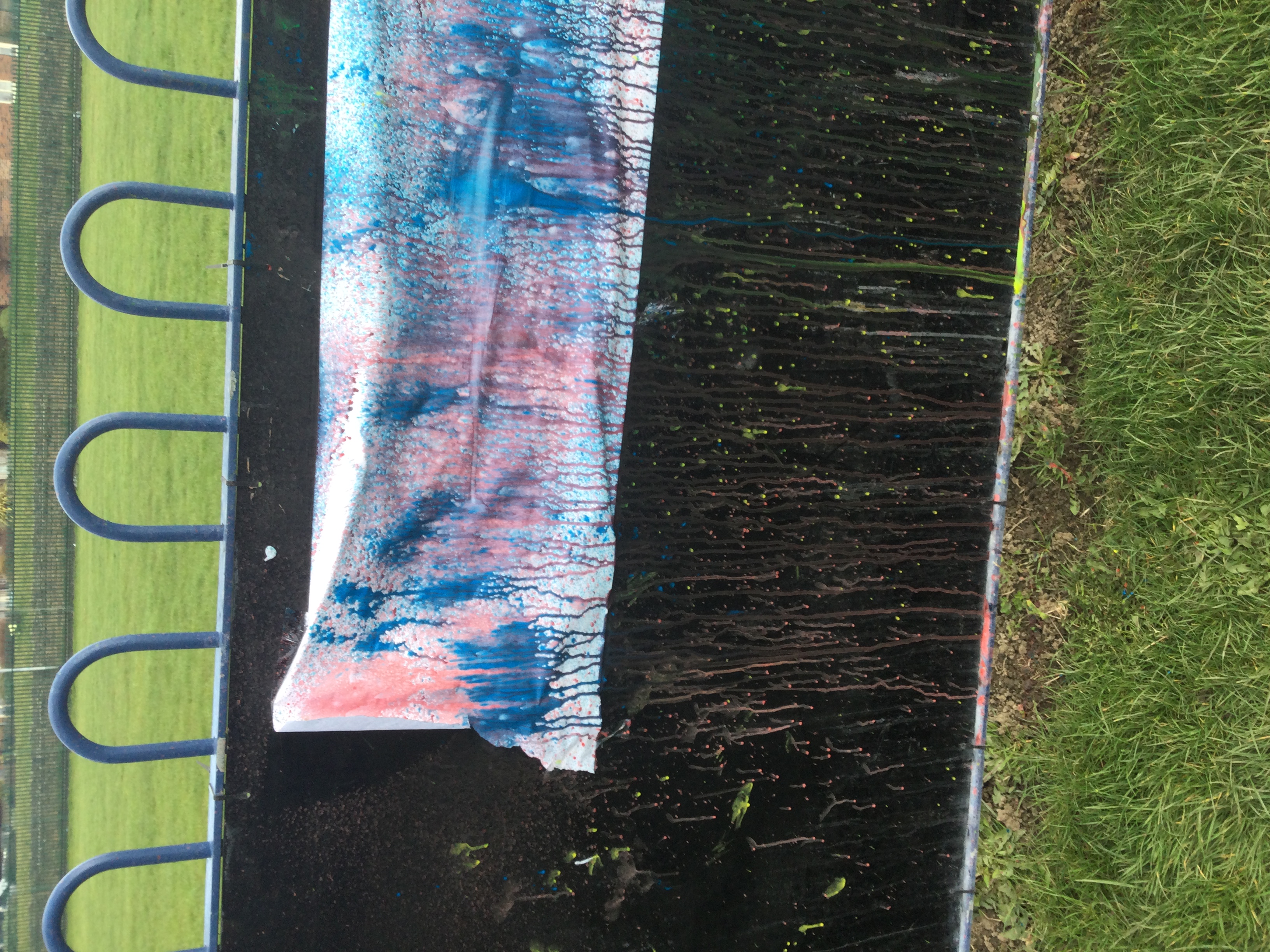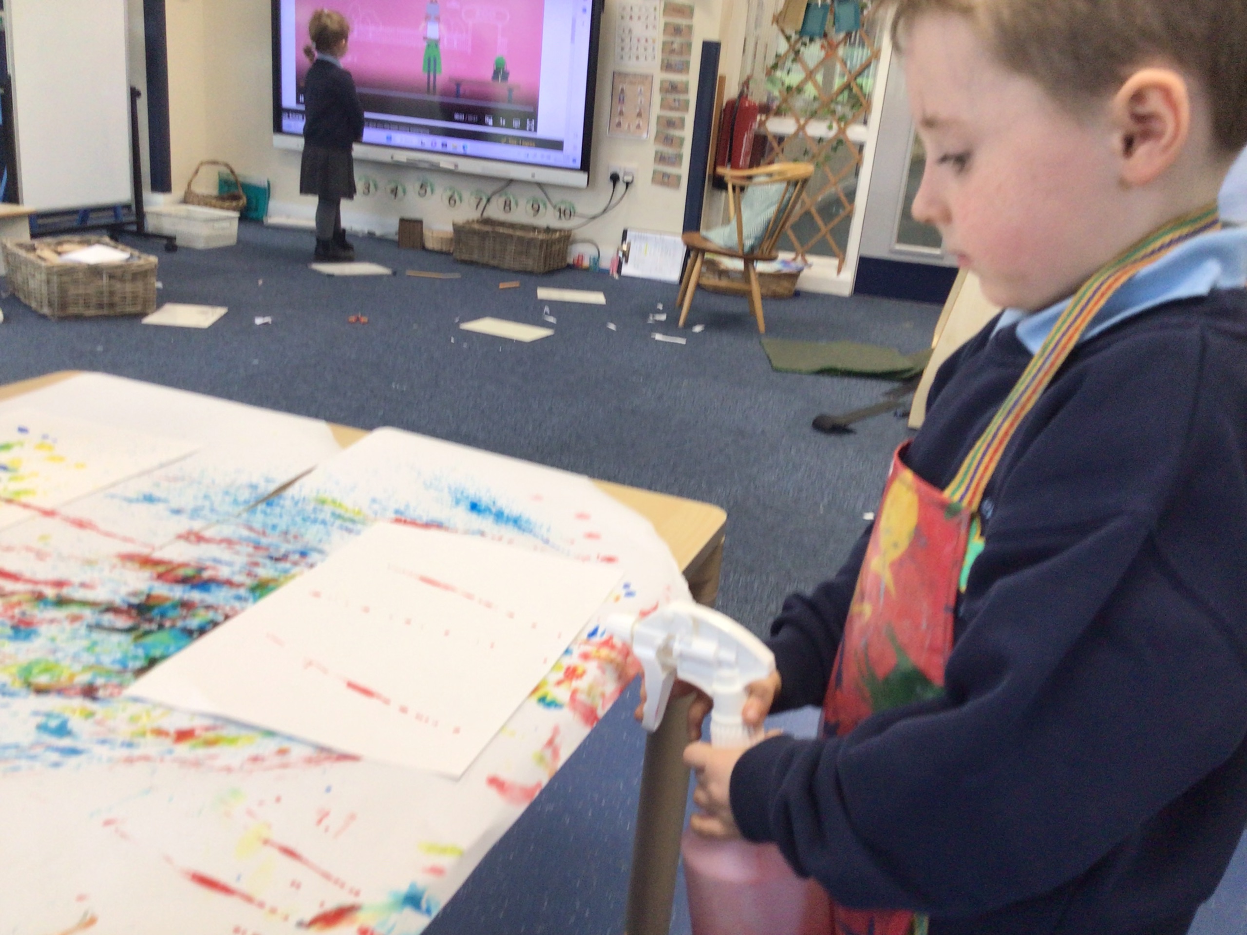 We created our own pieces of art inspired by Jackson Pollock. He used splatting on paper with paint and used different tools.