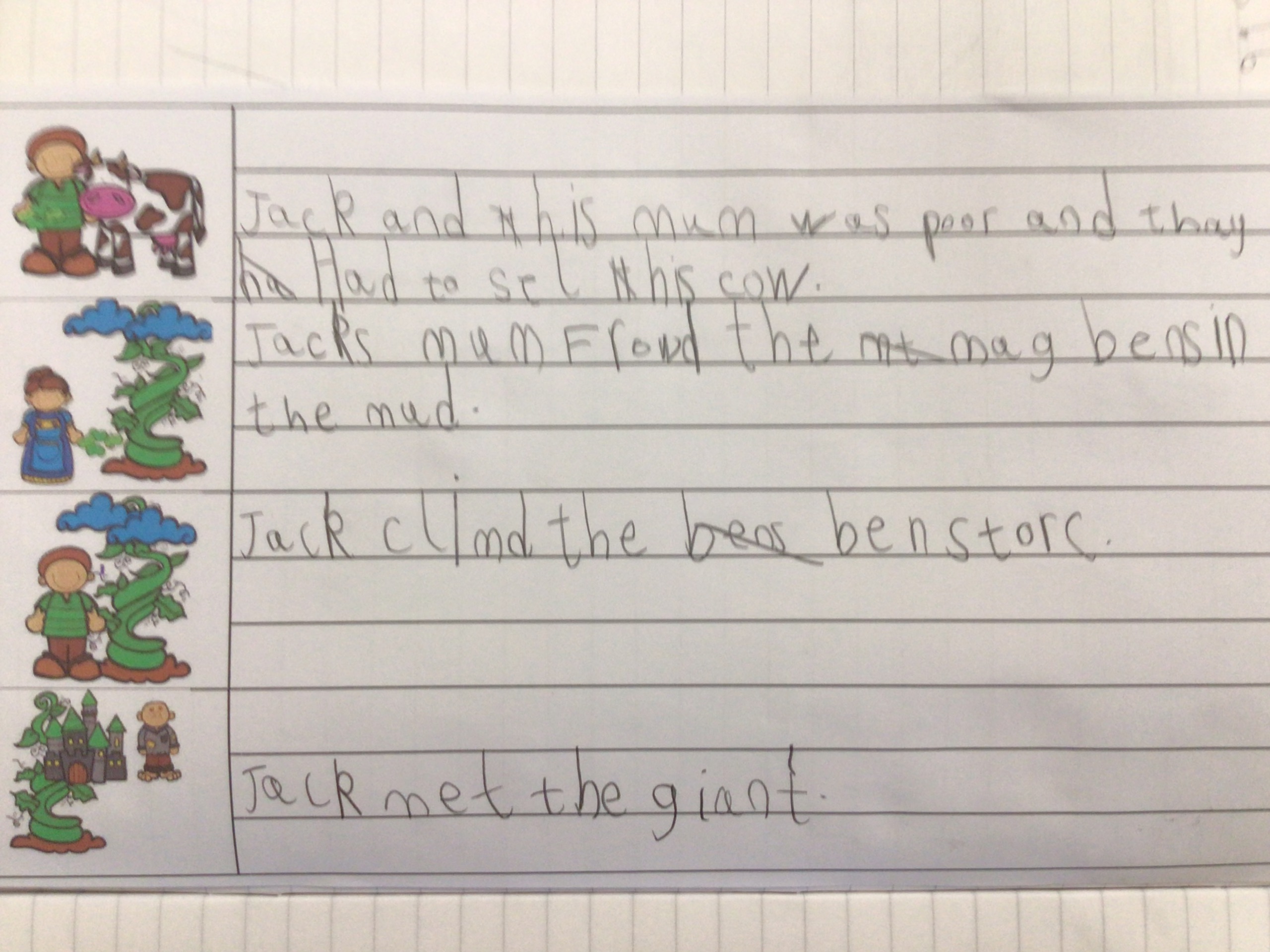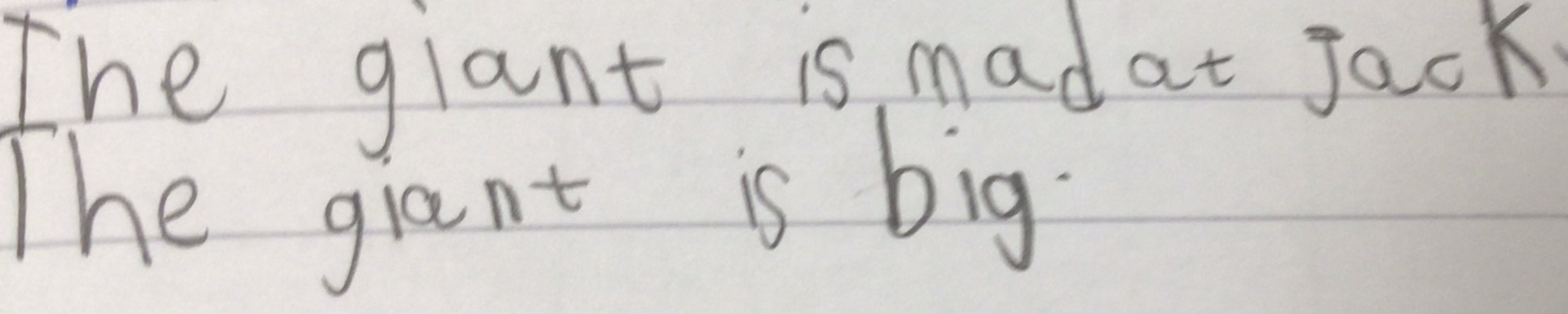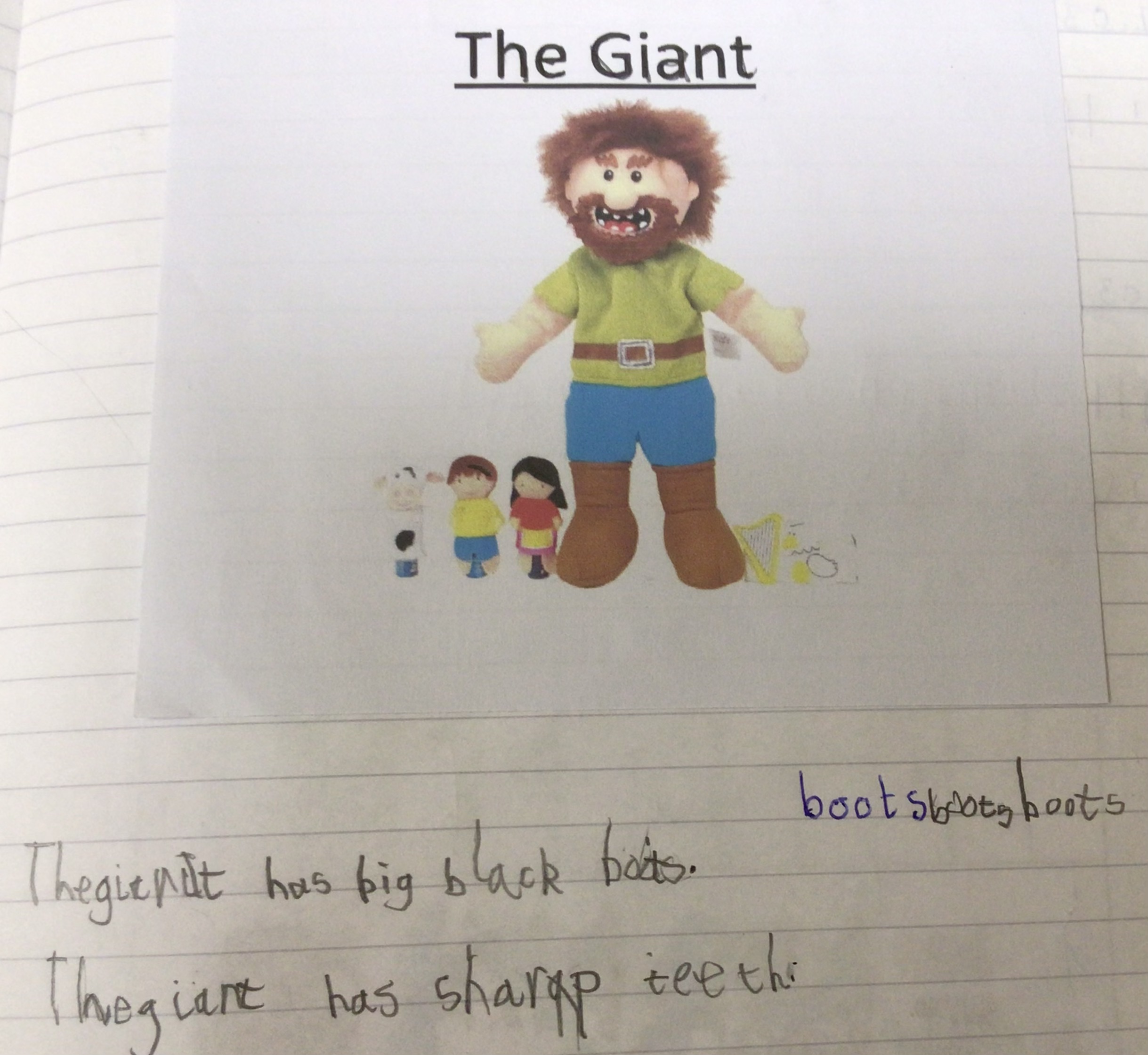 During our work based on the book Jack and the Beanstalk, we described the giant. We thought about what he looked like and how he acted.