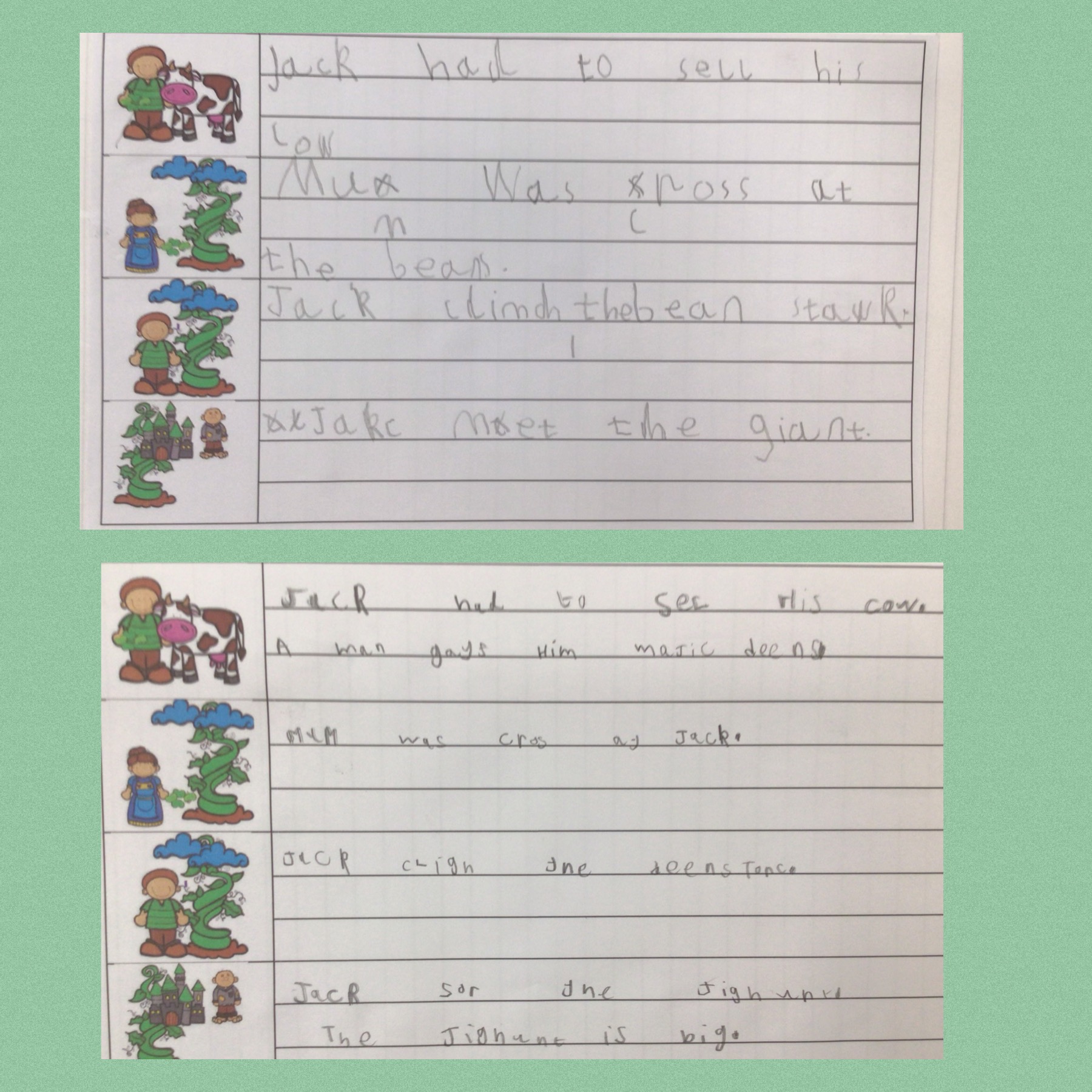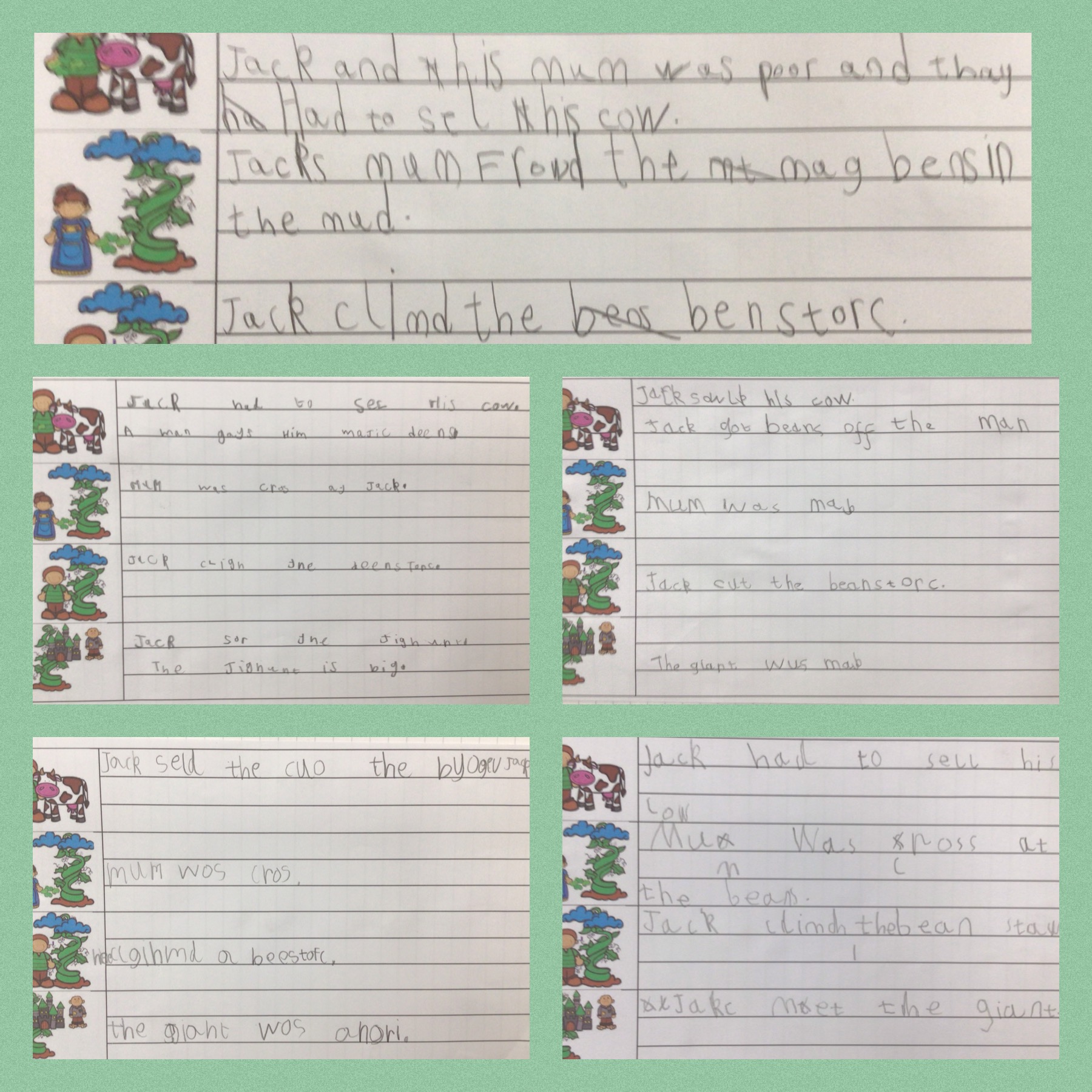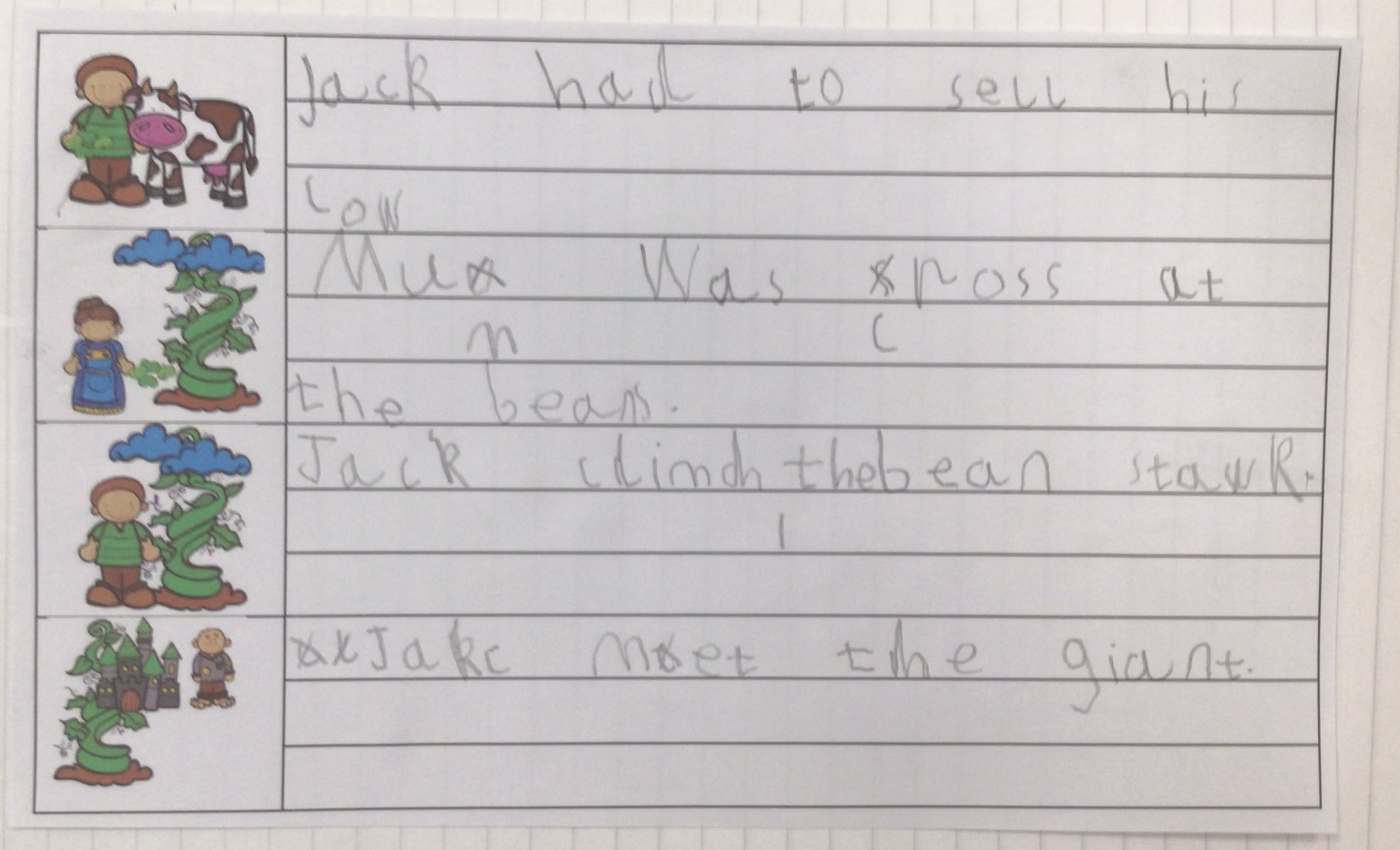 During our work based on the book Jack and the Beanstalk, we described the giant. We thought about what he looked like and how he acted.