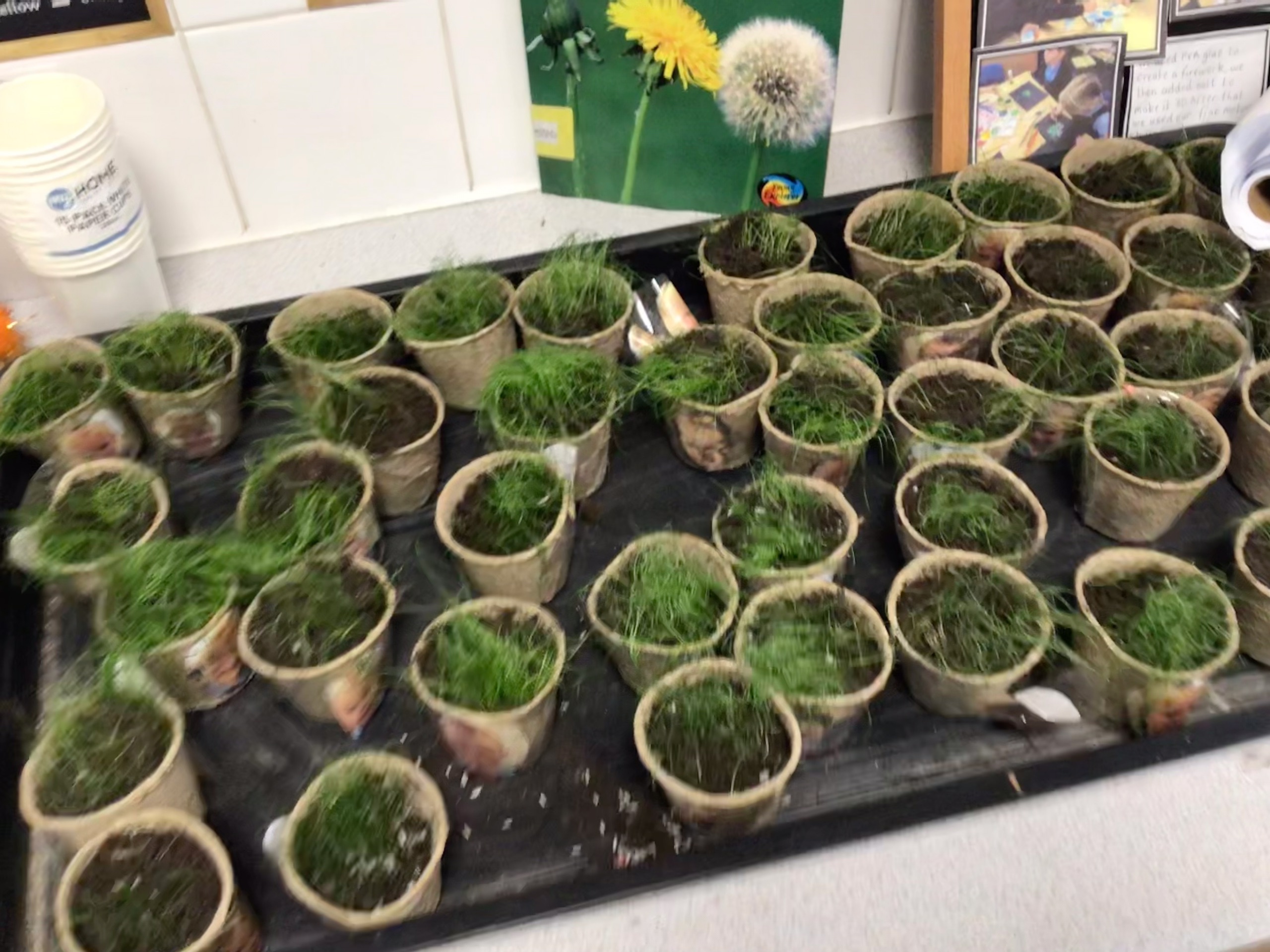 We grew some grass and made sure we added water and gave it sunlight to help it grow.