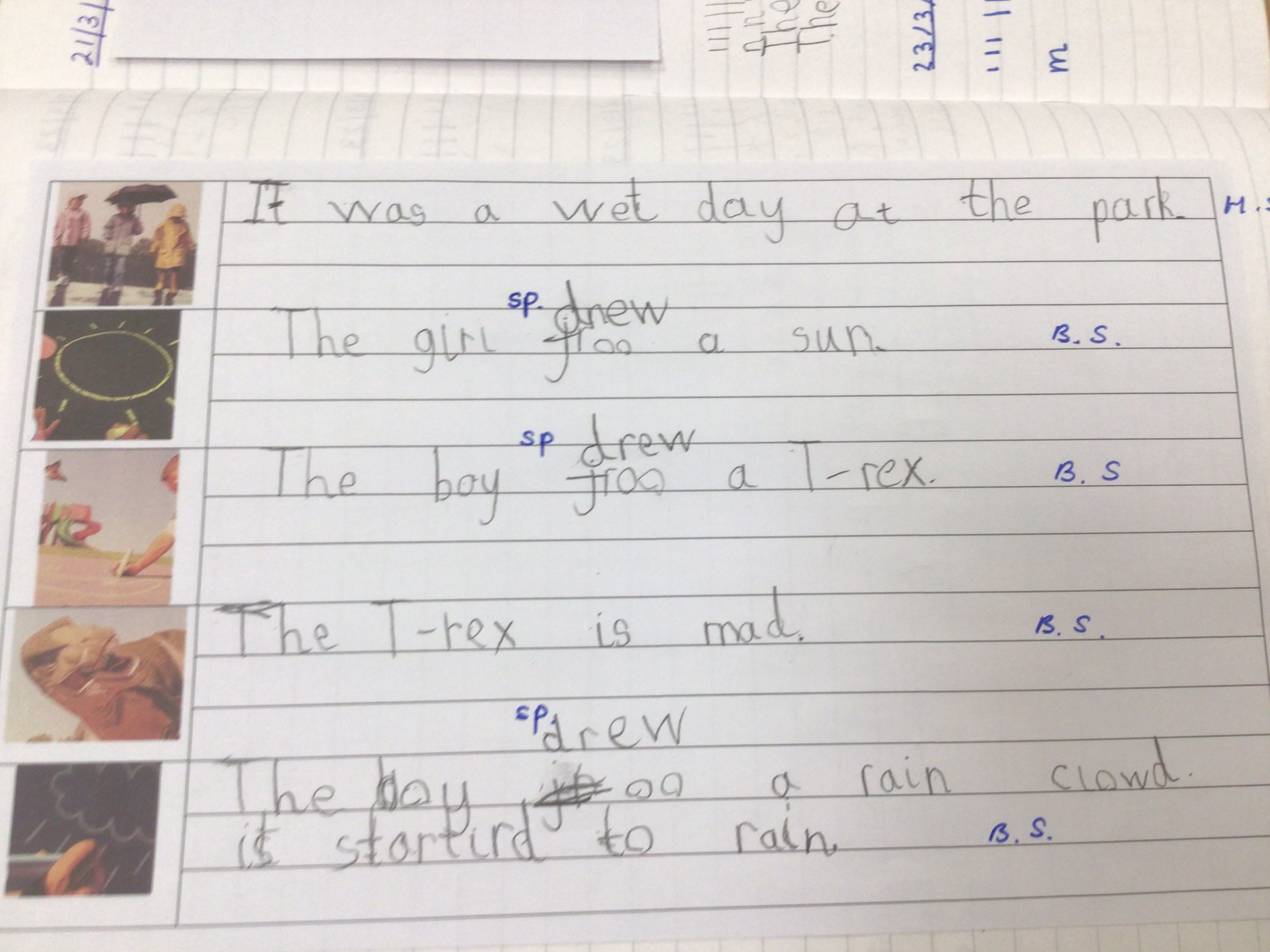 We started to write our retell of the story. We used capital letters, finger spaces and full stops.