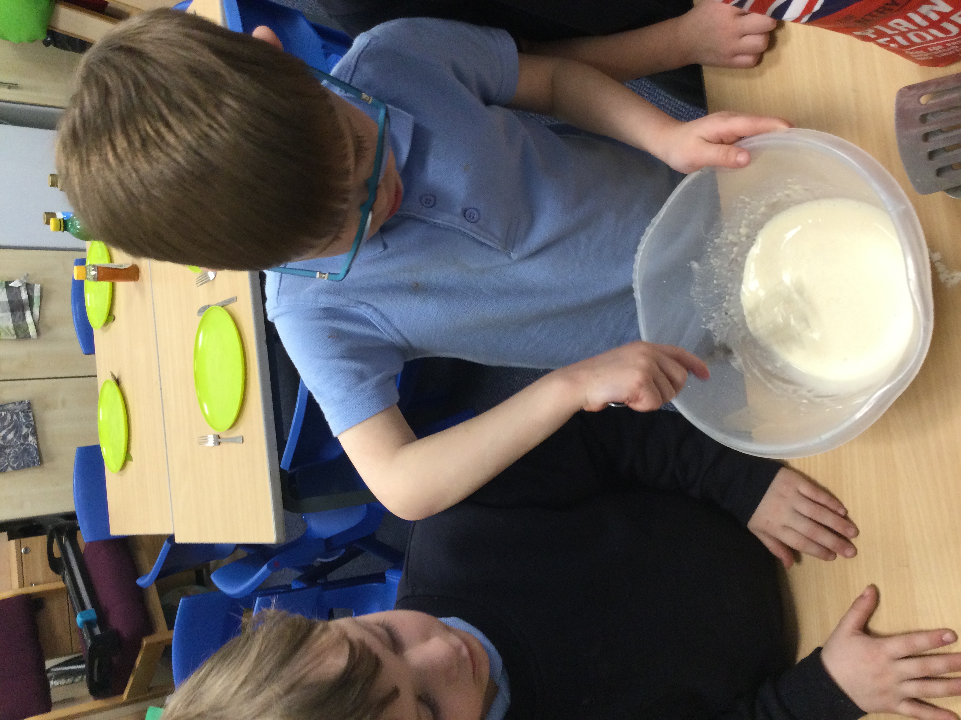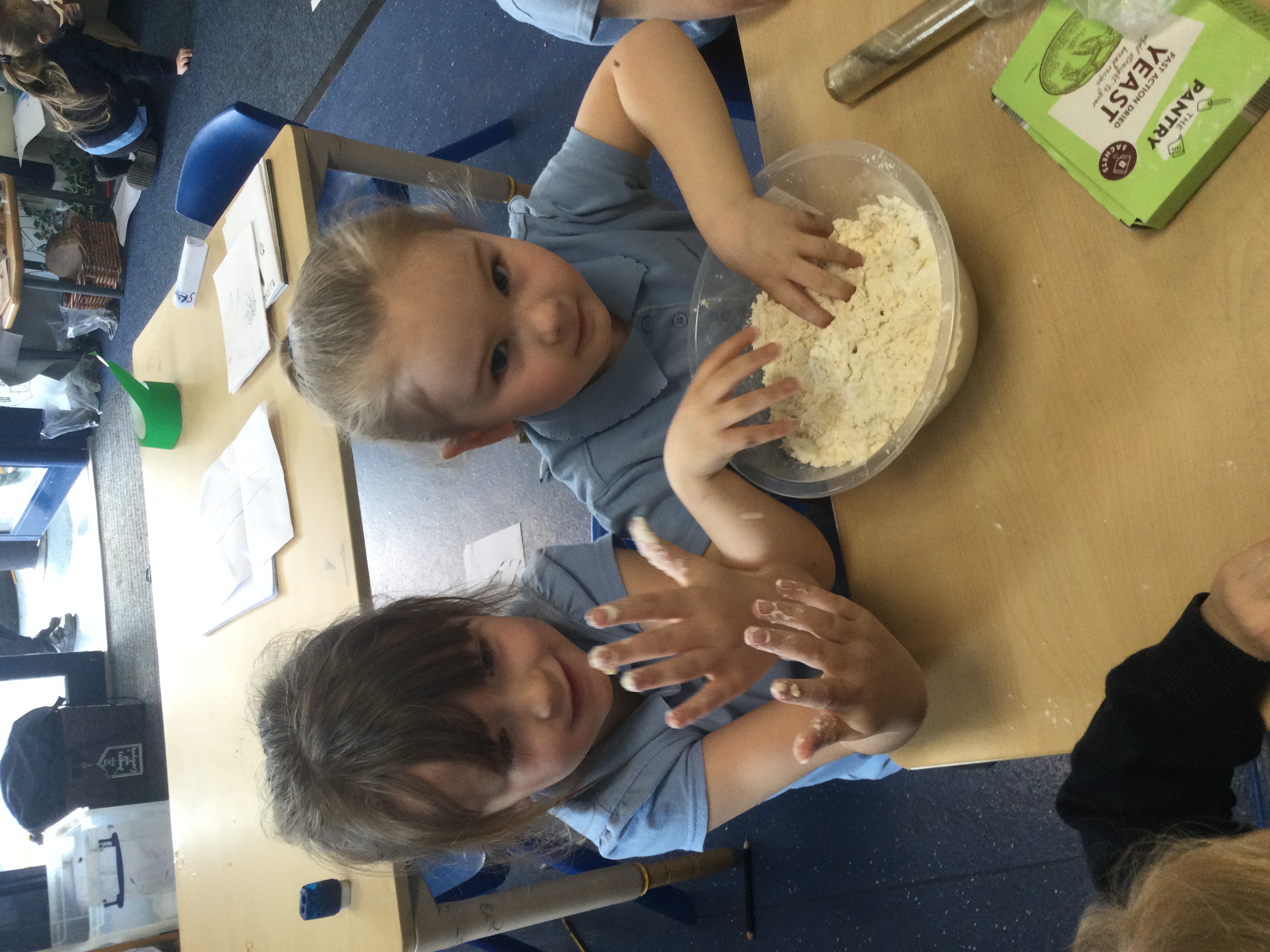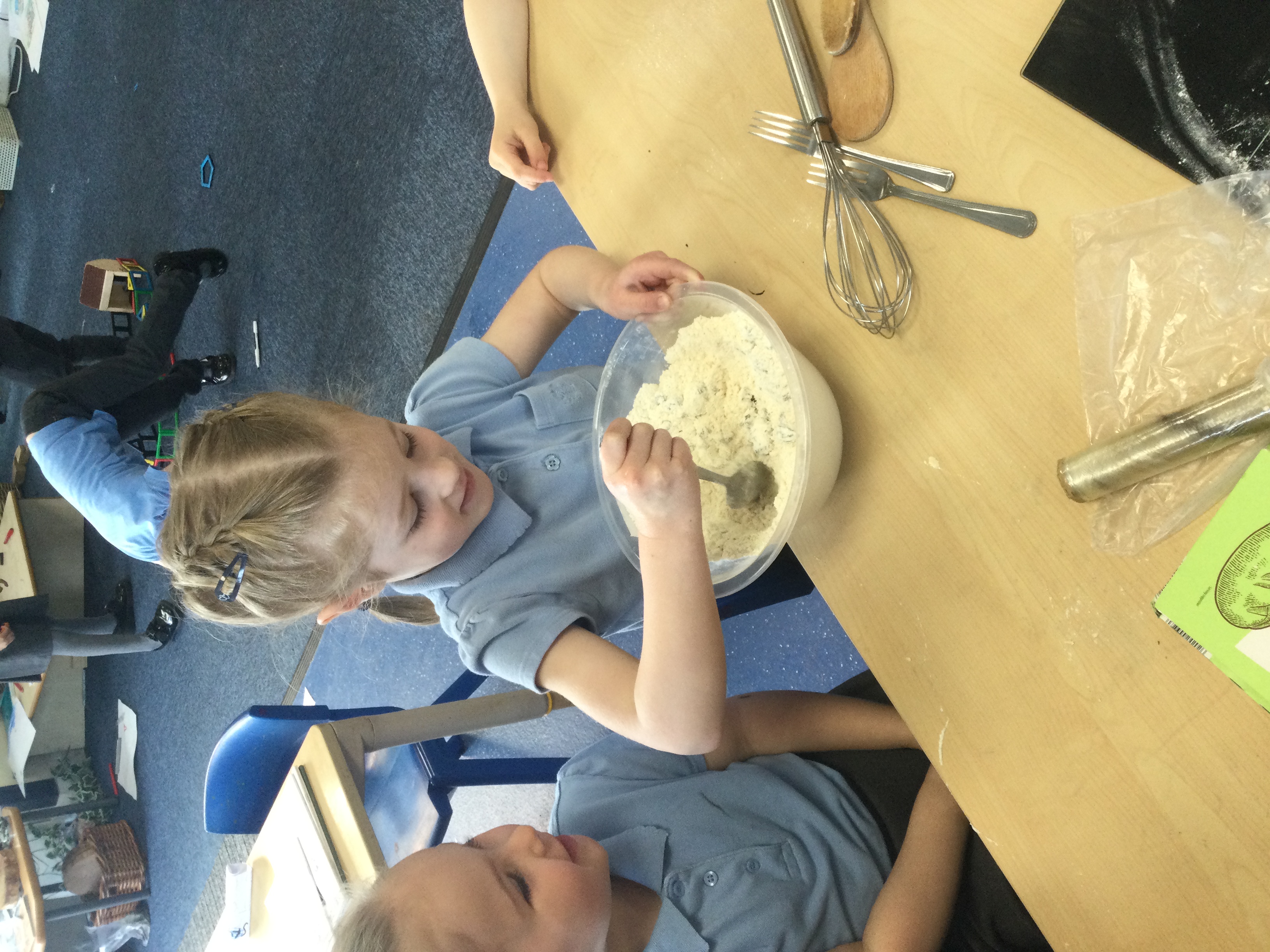 We made hot cross buns. Mrs Bailey worked with the children to measure the ingredients. The children carefully followed the instructions to make them.