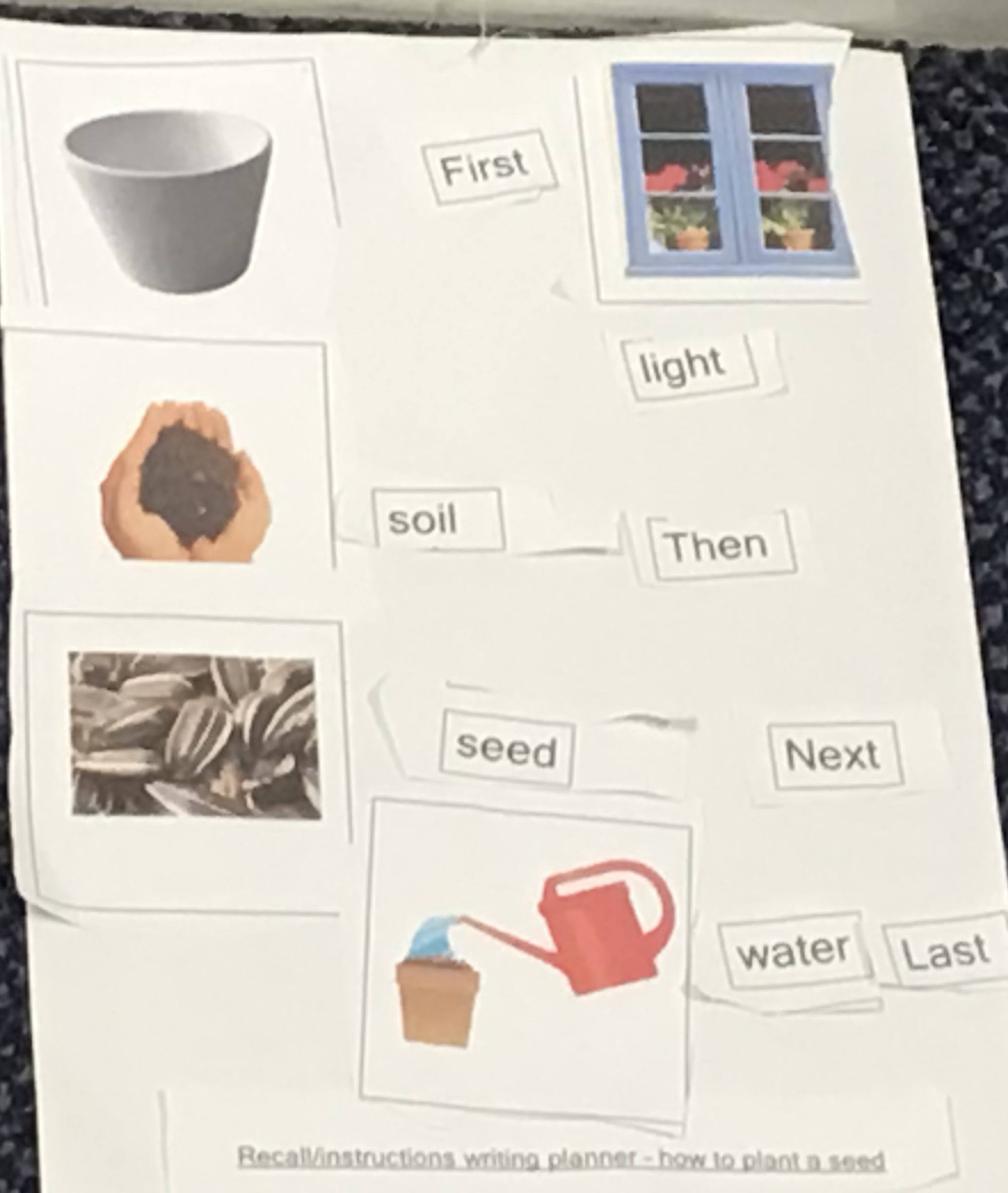 We ordered the instructions carefully to show how to grow a plant.