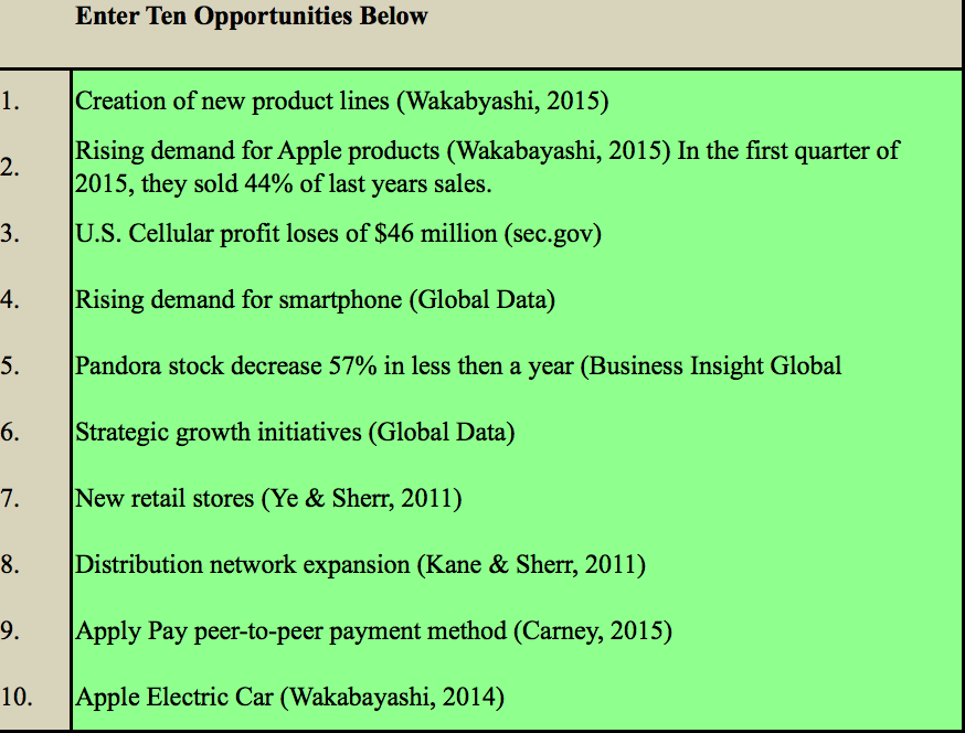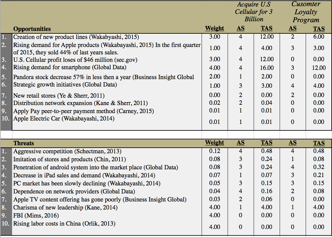 There are many cellular service providers that distribute Apple products in today's economy. What were to happen if Apple introduced their very own Apple cellular service? Our recommendation for Apple, is to expand into a new market in order to boost their competitive advantage within the technology industry. Through our analysis and research, we have come up with a strategy that Apple Inc. should highly consider introducing their very own cellular service by buying out U.S. Cellular. Since U.S. Cellular is within the top five cell phone services and Samsung has not yet introduced this strategy themselves, we have come to the conclusion that Apple could highly benefit from introducing their very own service provider in the cell phone market.