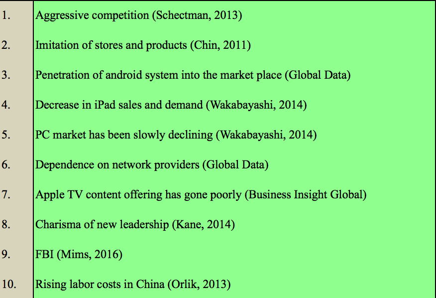 - Products: iPhone, iPad, iPod, iTunes, iCloud, Mac, Apple Watch, iOS, Apple Store, and Other Application Software