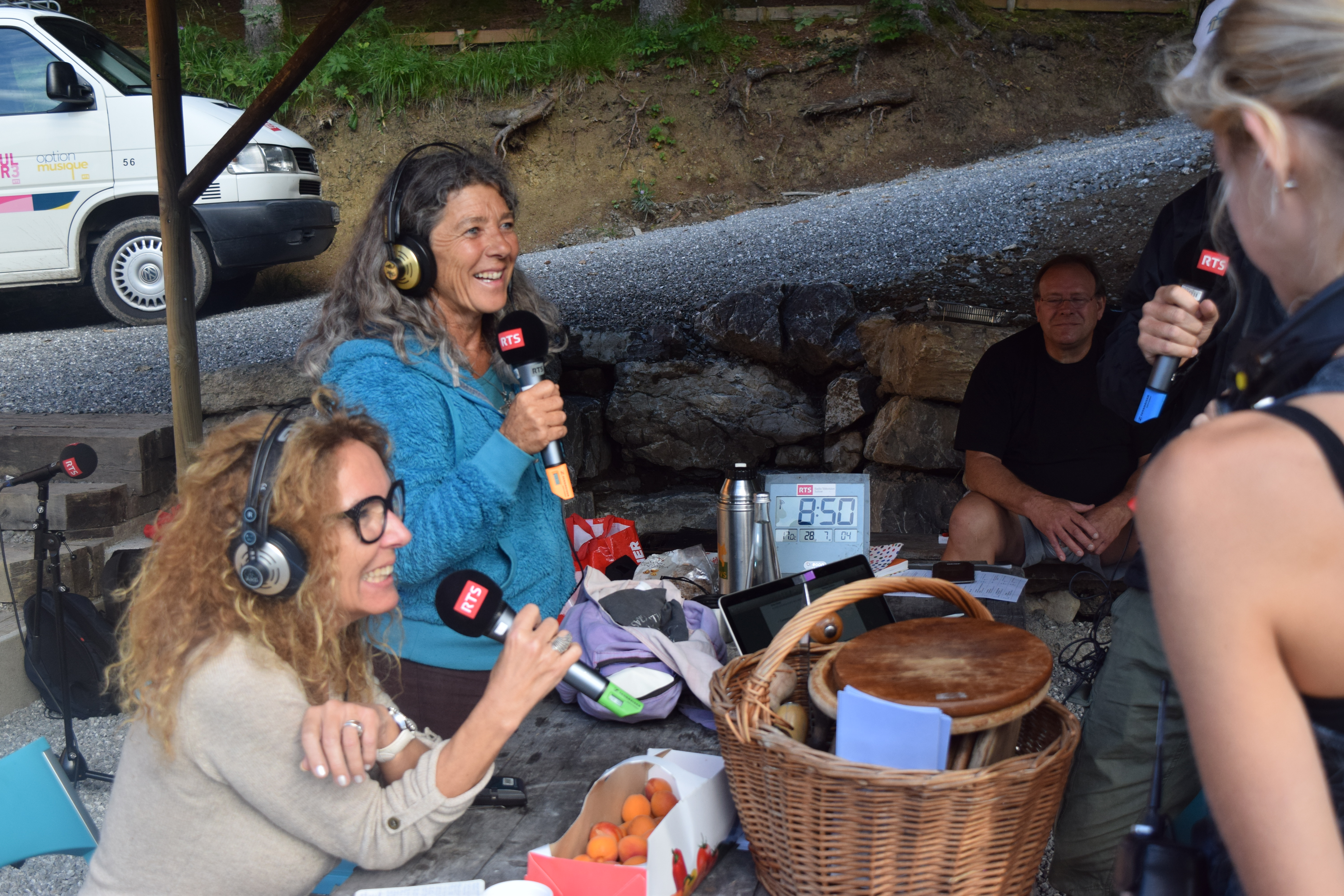 A 10h30 Alphonse Allaman, vêtu du costume traditionnel gruérien, et Stéphane chantent en direct le ranz des vaches.