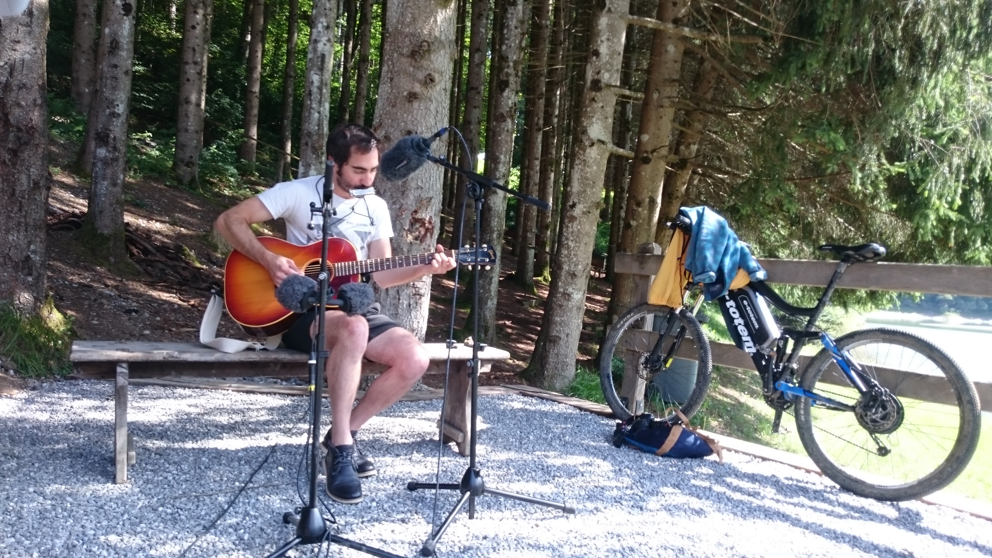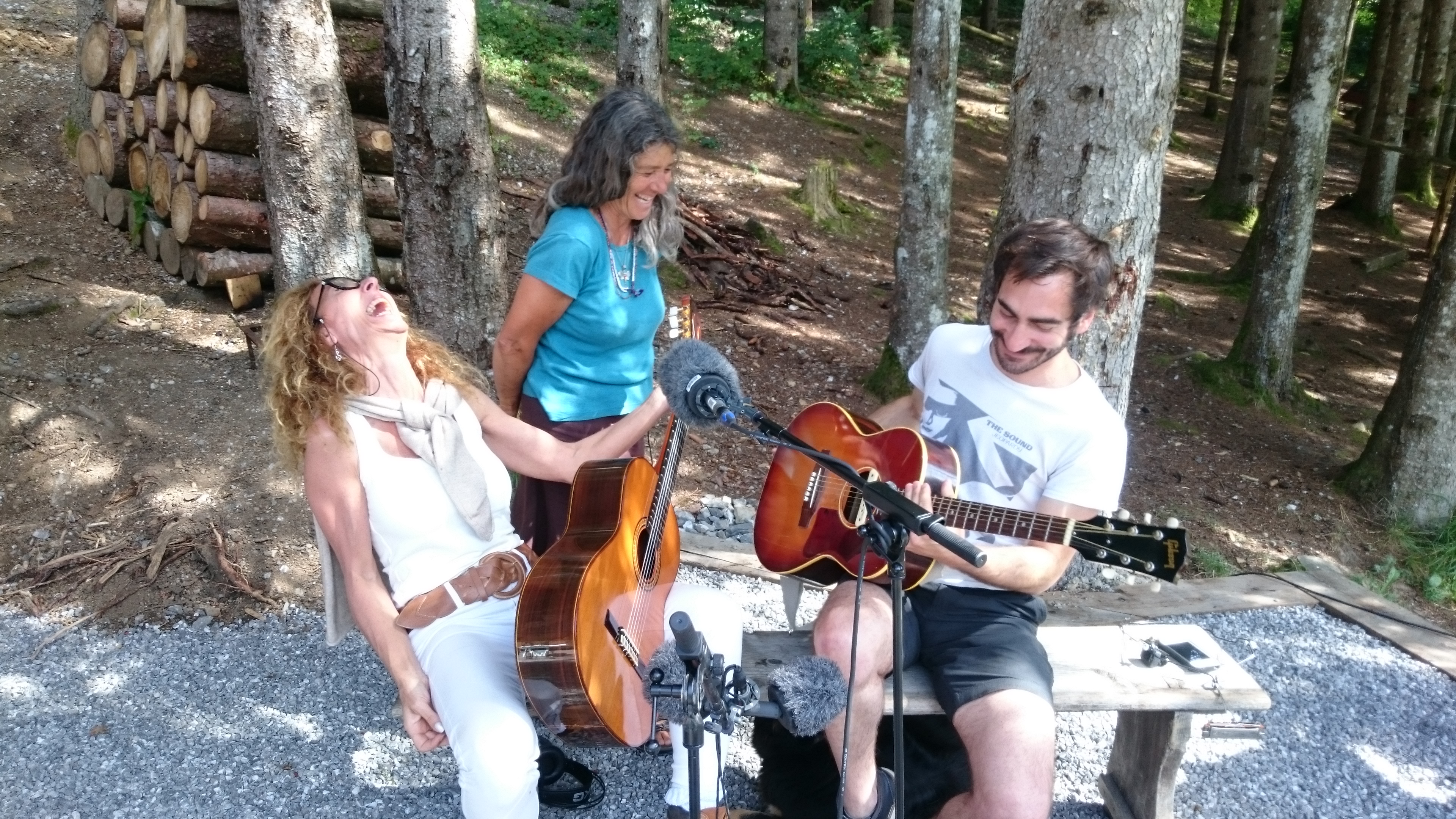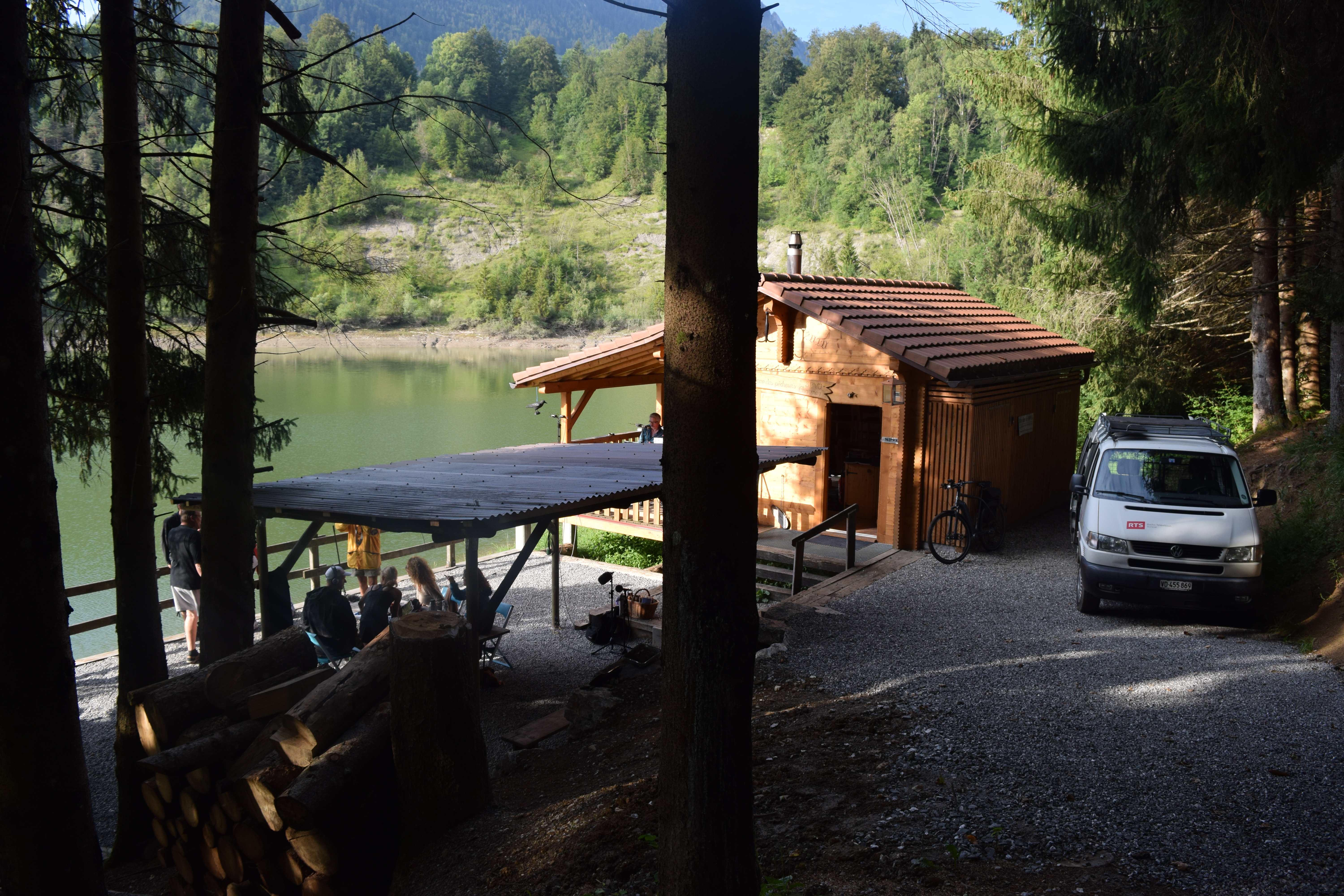 Pendant ce temps Frédéric Jeanrenaud, alias Mr. Jonfox, et Raphaël Weber, alias Dr. Wheels, du groupe The Rambling Wheels nous rendent visite à la cabane!