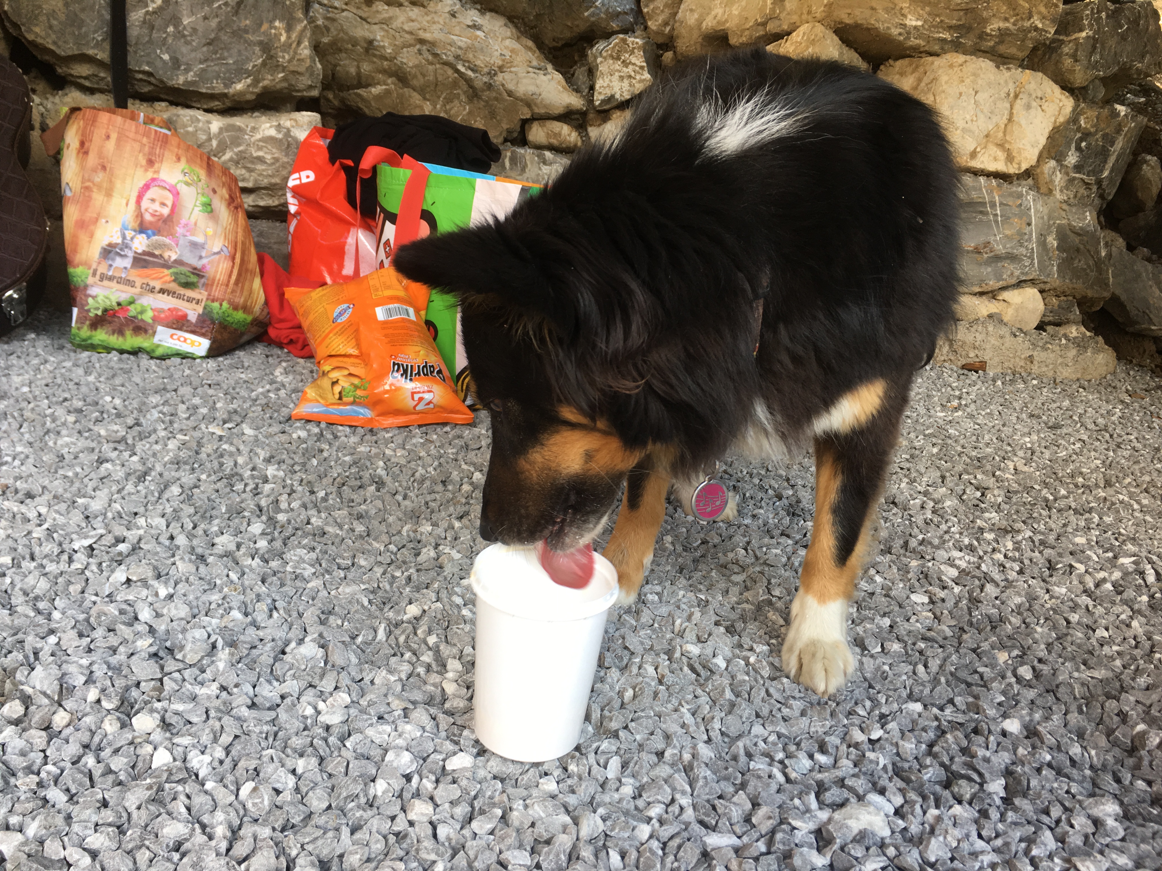 Etant donnée que nous sommes dans la Gruyère, la double crème et les meringues ne pouvaient pas manquer! Aussi Juku, le chien de Marlène Galletti, apprécie!
