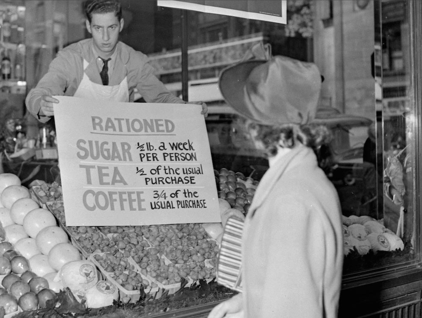 Yesterday rationing started in Britain. German U-boats have stopped many ships carrying food to Britain across the Atlantic ocean.