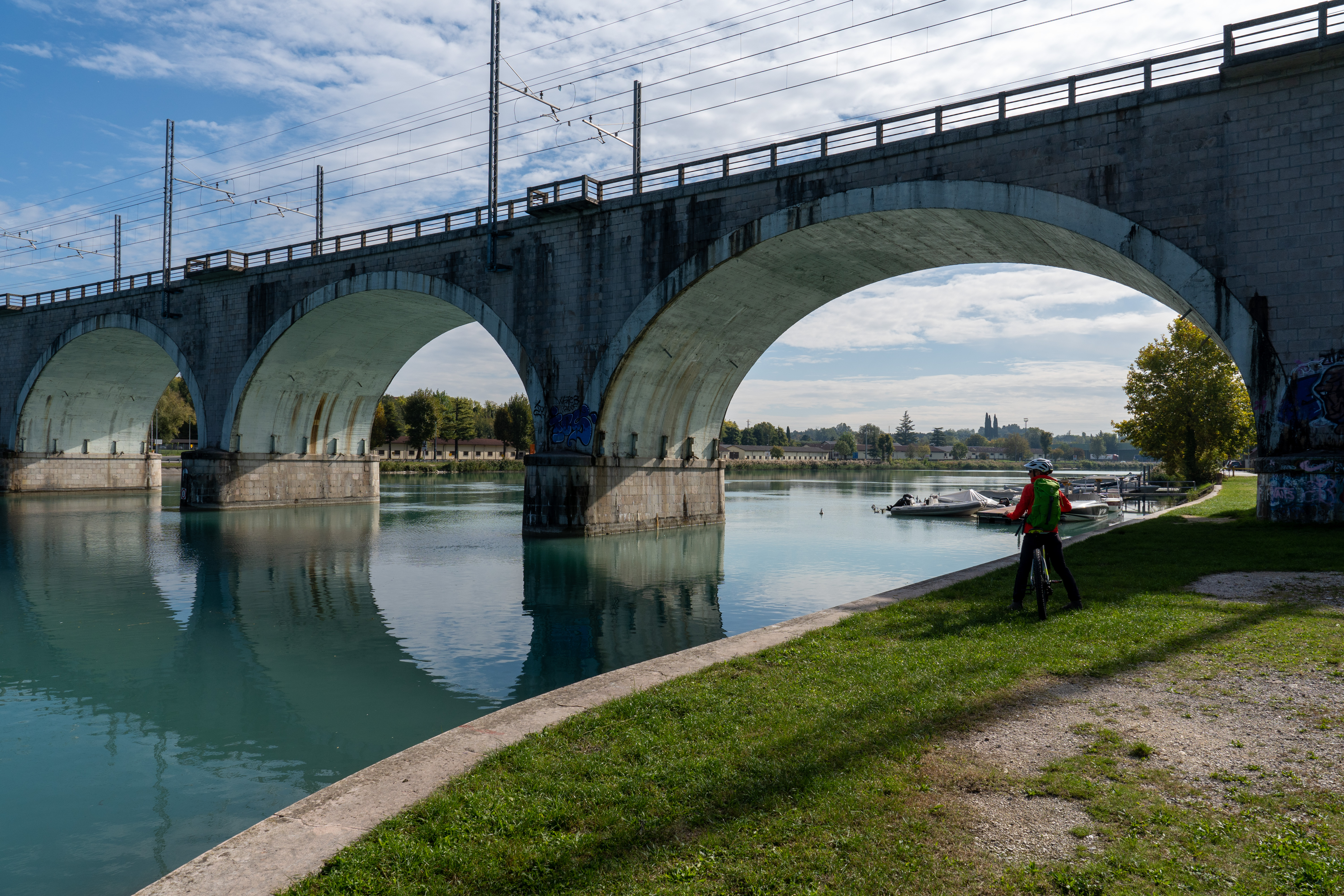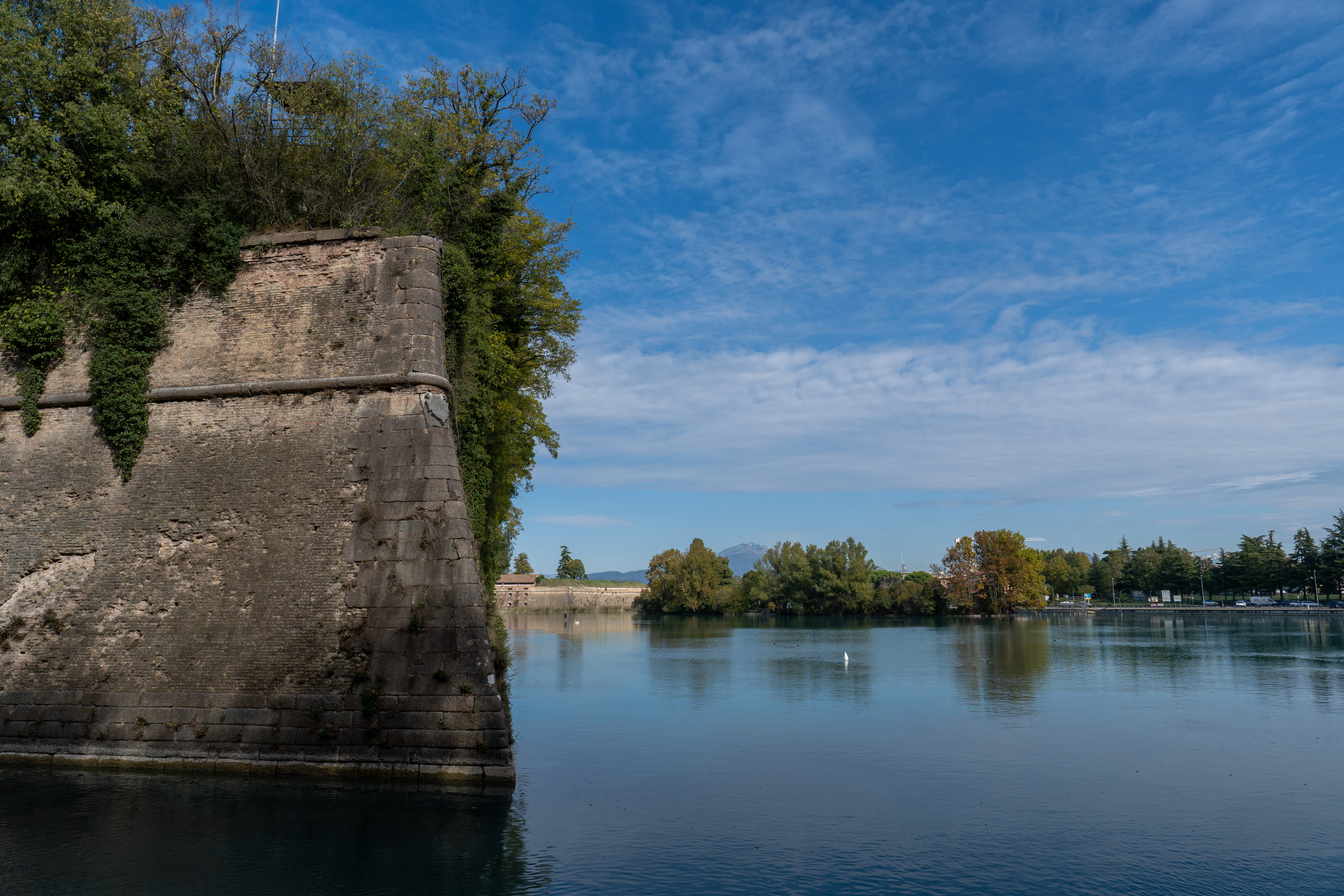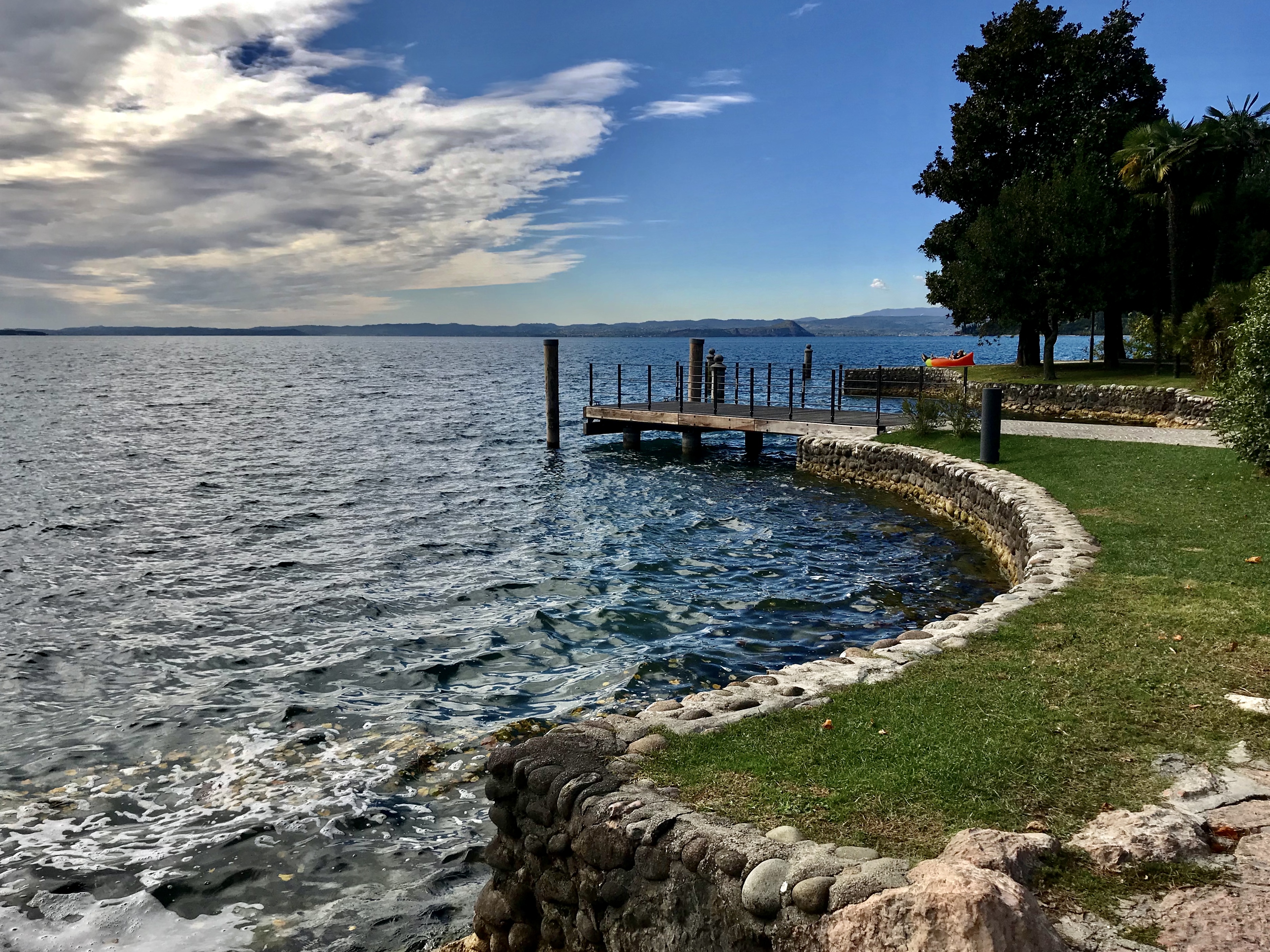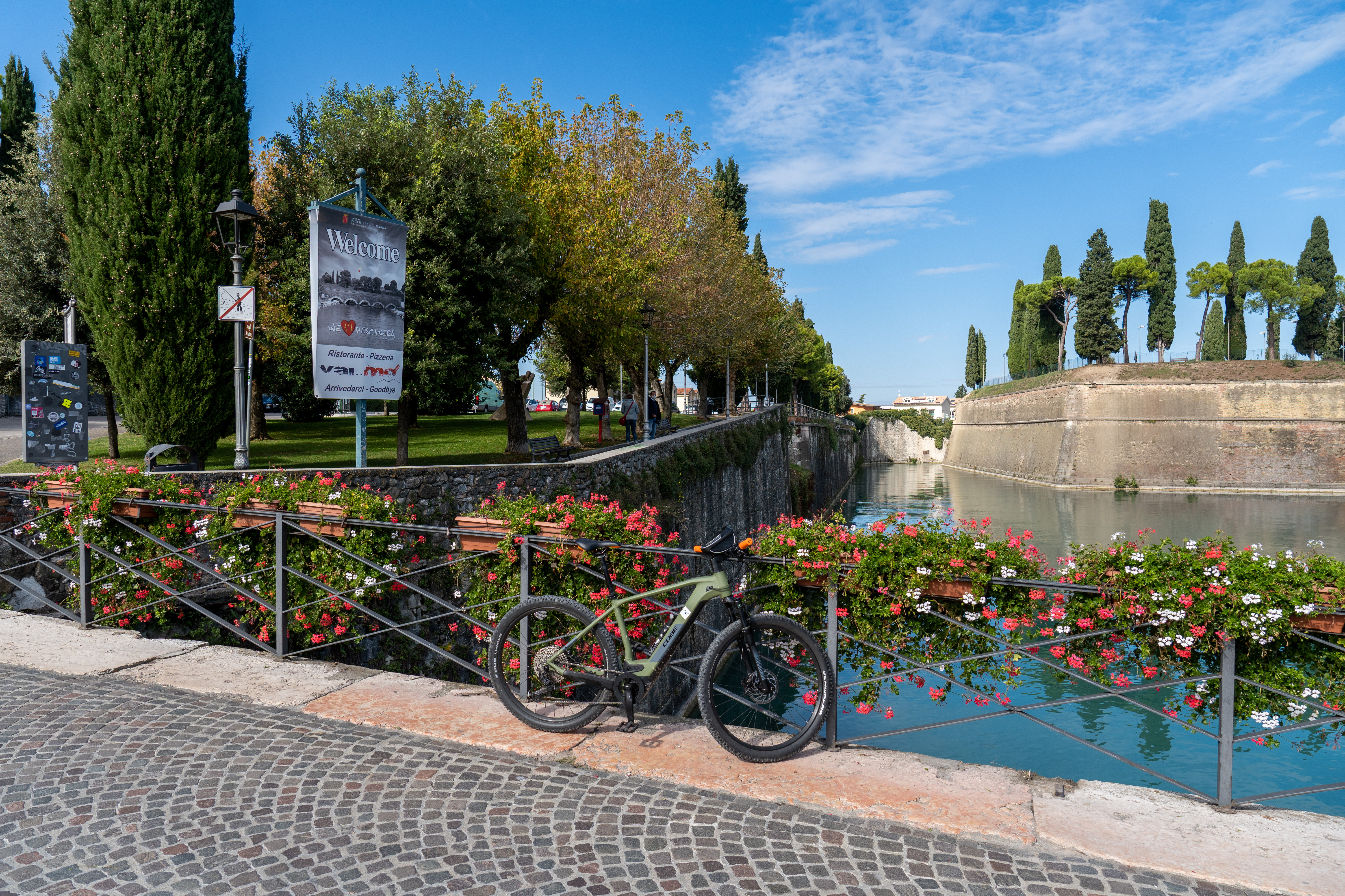 Tag Drei am Gardasee bricht an, es ist nicht so hundertprozentig dolle wie gestern, macht aber gar nix. Wir heben uns um 09:00 aus den Federn, frühstücken aber heute lieber mal drinne. Es ist zwar noch leicht wolkig aber es ist auch ganz schön kalt. Der Aufwasch will nach dem Frühstück noch erledigt werden, wir kramen noch bisschen rum und schwingen uns um 11:00 auf unsere Drahtesel (mit Akku). Wir fahren heute nach Süden in Richtung Peschiera del Garda. Es geht immer am Wasser entlang so dass wir einen tollen Blick auf den morgendlichen Lago di Garda haben. In Perschiera schauen wir kurz in die Altstadt und werfen einen Blick auf die Festung. Wir schwenken ein auf den Radweg entlang des Flusses Mincio. Unser Tagesziel ist heute der kleine Ort Valeggio Sul Mincio. Wir wollen hier hübsch Essen gehen, Pustekuchen - nix offen oder ungastlich. Wir kehren der Stadt den Rücken und kehren in Demu`s Stube am Fluss Mincio ein. Ein hübscher kleiner Biergarten am Fluss. Nach einer Pizza und Bierchen geht noch 1,5 km flussabwärts zum kleinen Örtchen Borghetto, ein kleines Mühlendörfchen am Mincio. Total hübsch gelegen und auch lauter hübsche kleine Kneipen in der Altstadt. Leider haben wir schon gegessen, also schauen wir uns nur um und machen ein paar Bilder. Wir treten unseren Rückweg an. Es sind immerhin knapp 35 km zurück nach Bardolino. Wir fahren also am Fluss zurück und nach Peschiera geht es weiter am Ufer des Gardasee entlang. Eine tolle Nachmittagssonne verwöhnt uns beim Radeln. Im Zentrum von Bardolino am Hafen trinken wir noch schnell einen Traubensaft und einen Wein. Zurück am Campingplatz ist chillen und duschen angesagt. Heute haben wir durchaus beachtliche 68 km unter die Räder genommen aber mit Akku ist das nur eine Frage der Ausdauer, sind aber dennoch etwas erledigt.