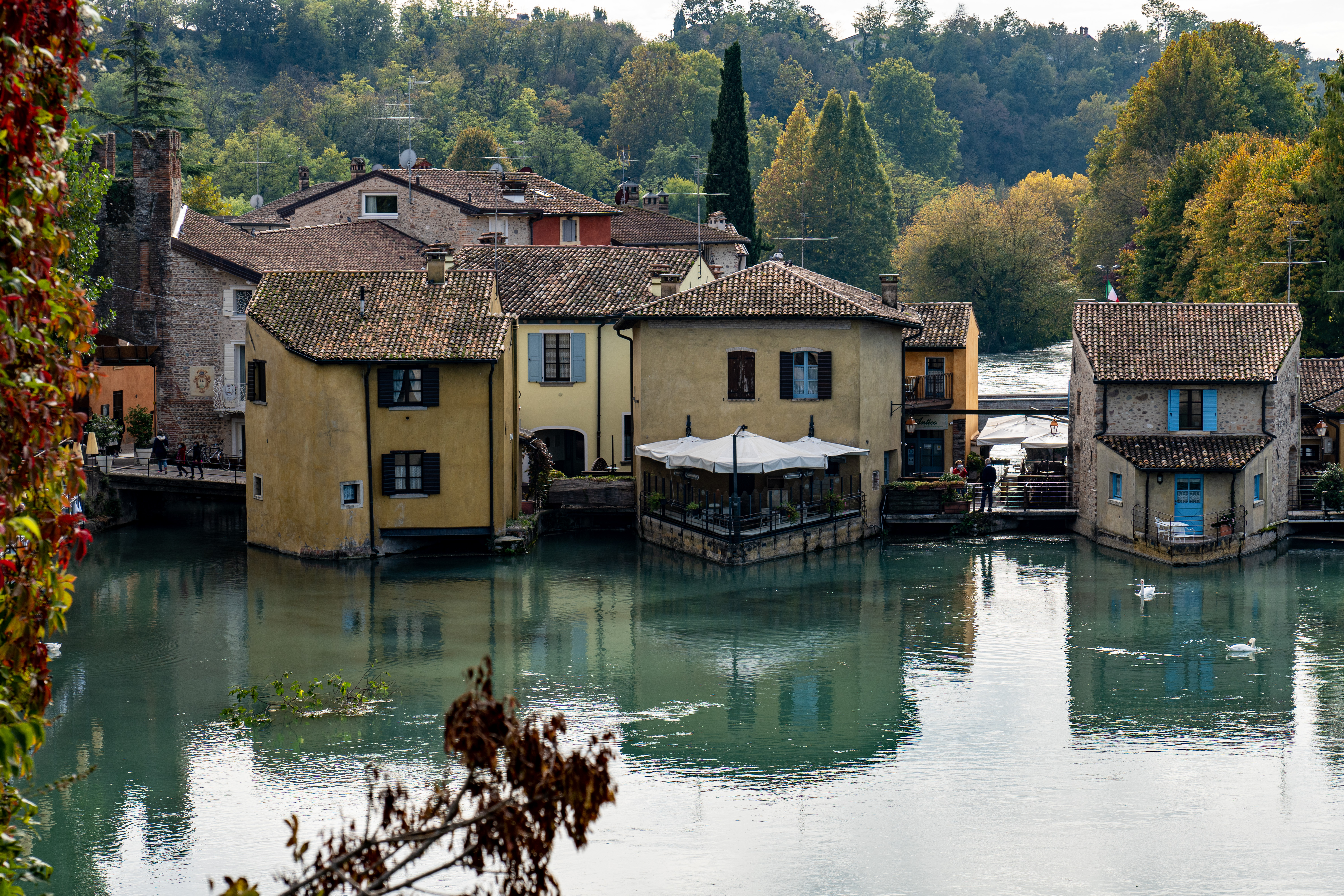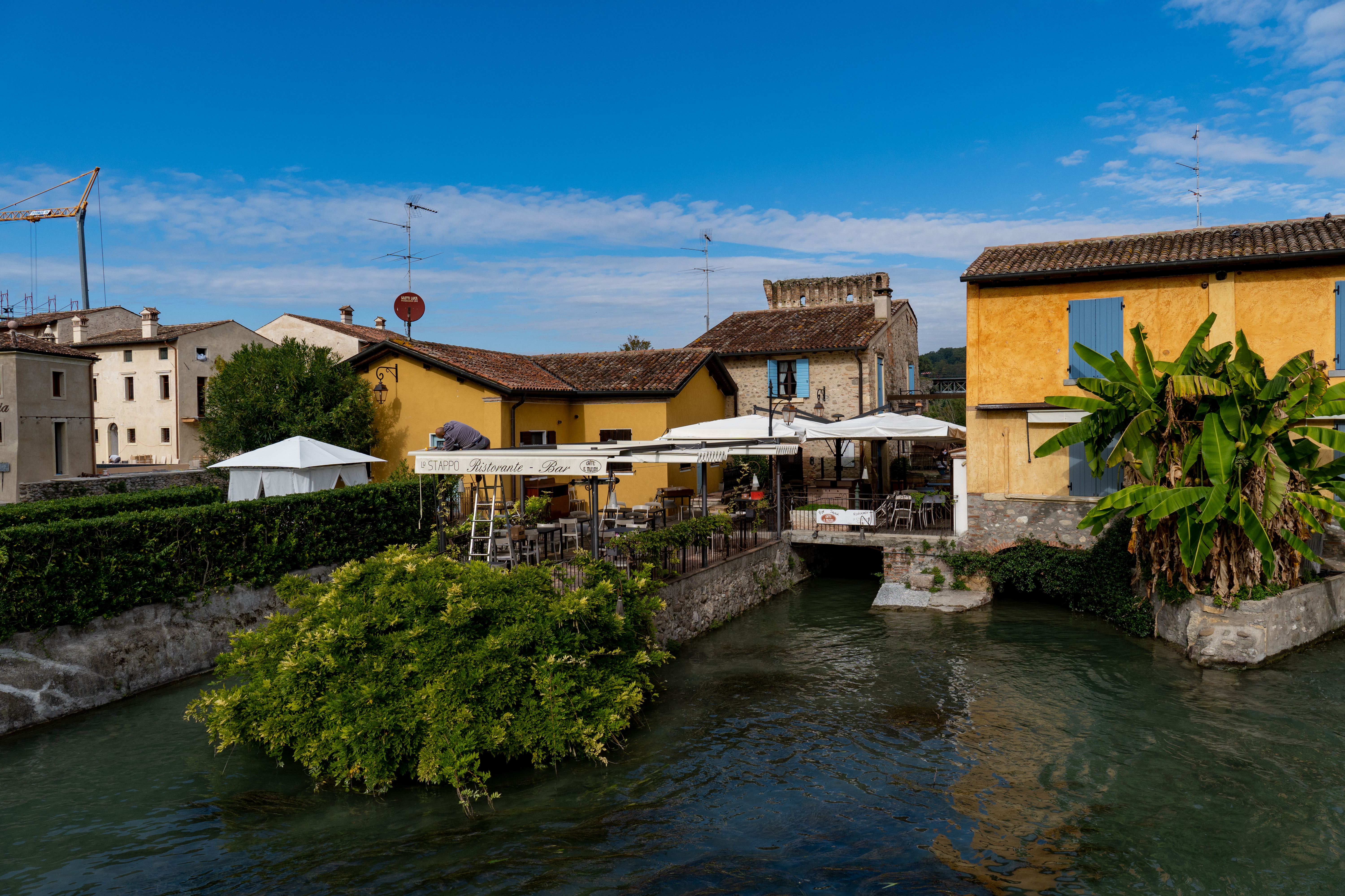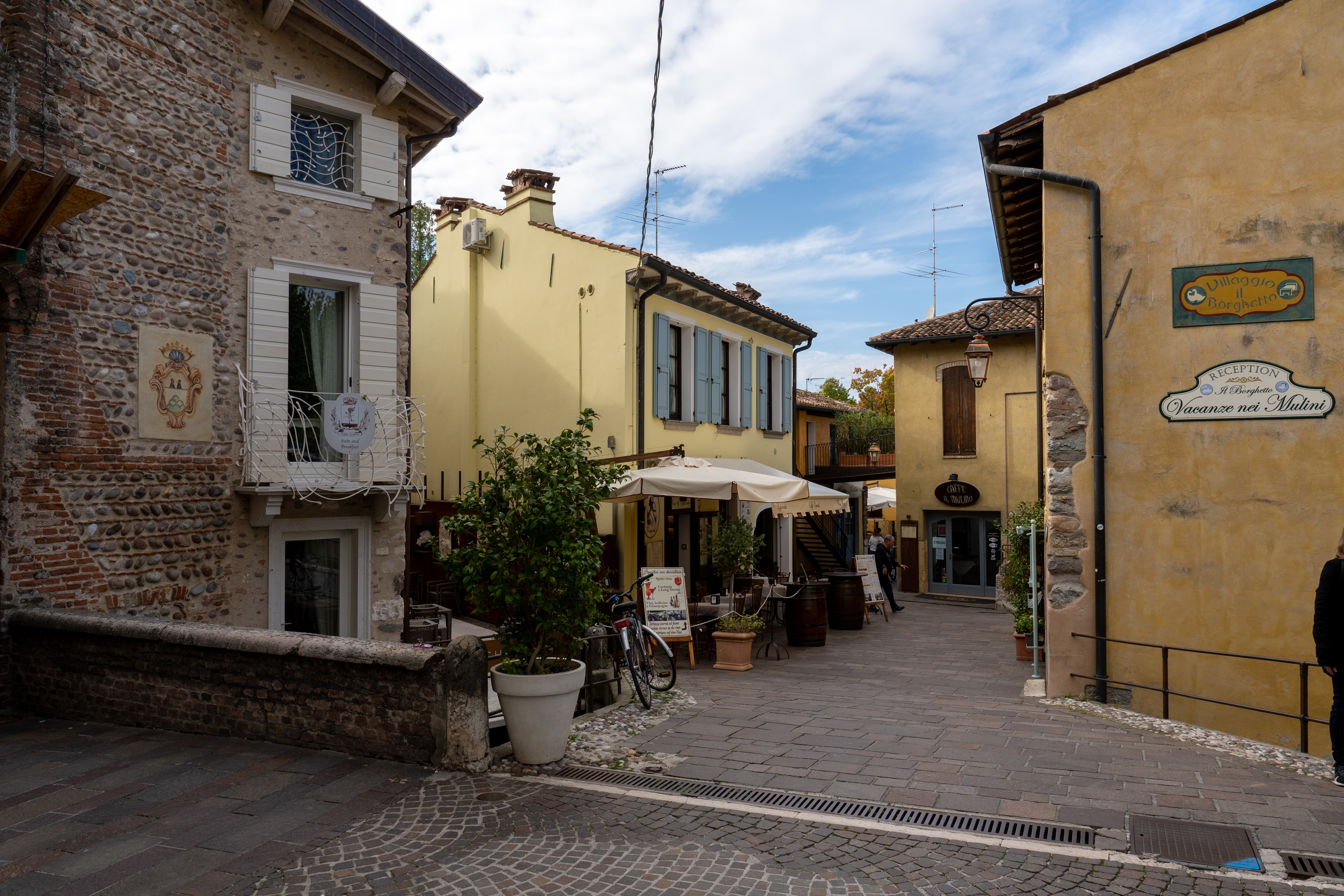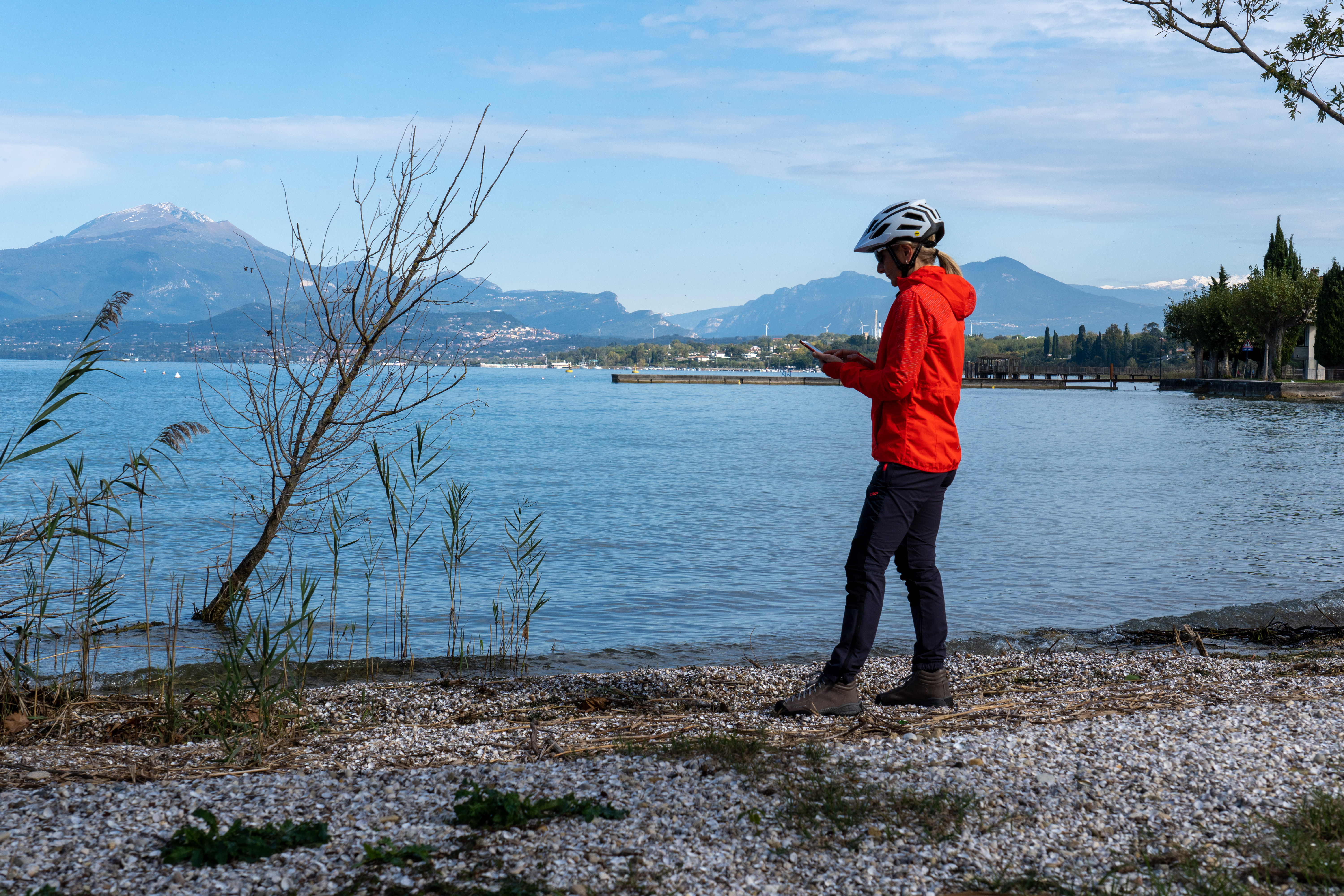 Tag Drei am Gardasee bricht an, es ist nicht so hundertprozentig dolle wie gestern, macht aber gar nix. Wir heben uns um 09:00 aus den Federn, frühstücken aber heute lieber mal drinne. Es ist zwar noch leicht wolkig aber es ist auch ganz schön kalt. Der Aufwasch will nach dem Frühstück noch erledigt werden, wir kramen noch bisschen rum und schwingen uns um 11:00 auf unsere Drahtesel (mit Akku). Wir fahren heute nach Süden in Richtung Peschiera del Garda. Es geht immer am Wasser entlang so dass wir einen tollen Blick auf den morgendlichen Lago di Garda haben. In Perschiera schauen wir kurz in die Altstadt und werfen einen Blick auf die Festung. Wir schwenken ein auf den Radweg entlang des Flusses Mincio. Unser Tagesziel ist heute der kleine Ort Valeggio Sul Mincio. Wir wollen hier hübsch Essen gehen, Pustekuchen - nix offen oder ungastlich. Wir kehren der Stadt den Rücken und kehren in Demu`s Stube am Fluss Mincio ein. Ein hübscher kleiner Biergarten am Fluss. Nach einer Pizza und Bierchen geht noch 1,5 km flussabwärts zum kleinen Örtchen Borghetto, ein kleines Mühlendörfchen am Mincio. Total hübsch gelegen und auch lauter hübsche kleine Kneipen in der Altstadt. Leider haben wir schon gegessen, also schauen wir uns nur um und machen ein paar Bilder. Wir treten unseren Rückweg an. Es sind immerhin knapp 35 km zurück nach Bardolino. Wir fahren also am Fluss zurück und nach Peschiera geht es weiter am Ufer des Gardasee entlang. Eine tolle Nachmittagssonne verwöhnt uns beim Radeln. Im Zentrum von Bardolino am Hafen trinken wir noch schnell einen Traubensaft und einen Wein. Zurück am Campingplatz ist chillen und duschen angesagt. Heute haben wir durchaus beachtliche 68 km unter die Räder genommen aber mit Akku ist das nur eine Frage der Ausdauer, sind aber dennoch etwas erledigt.