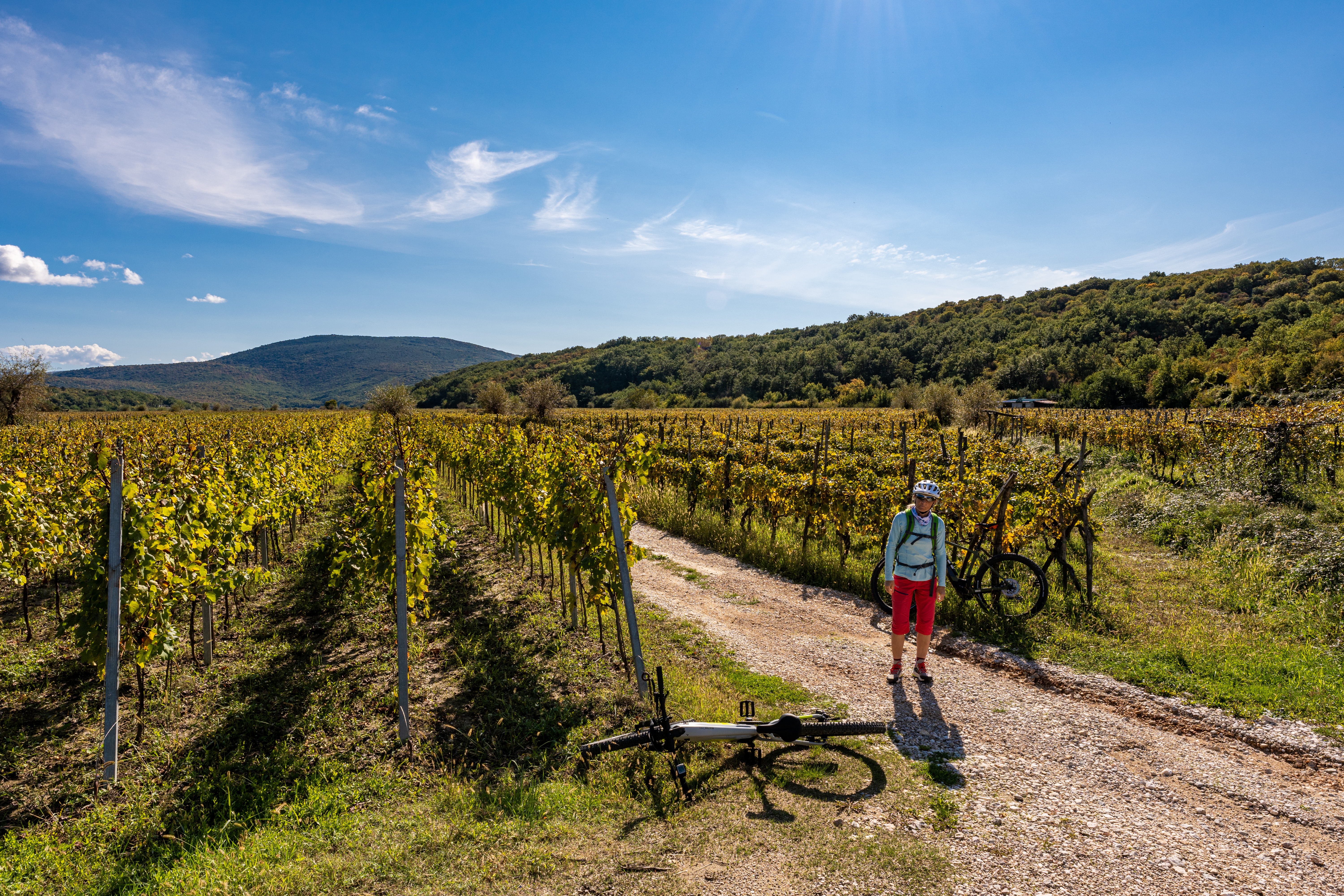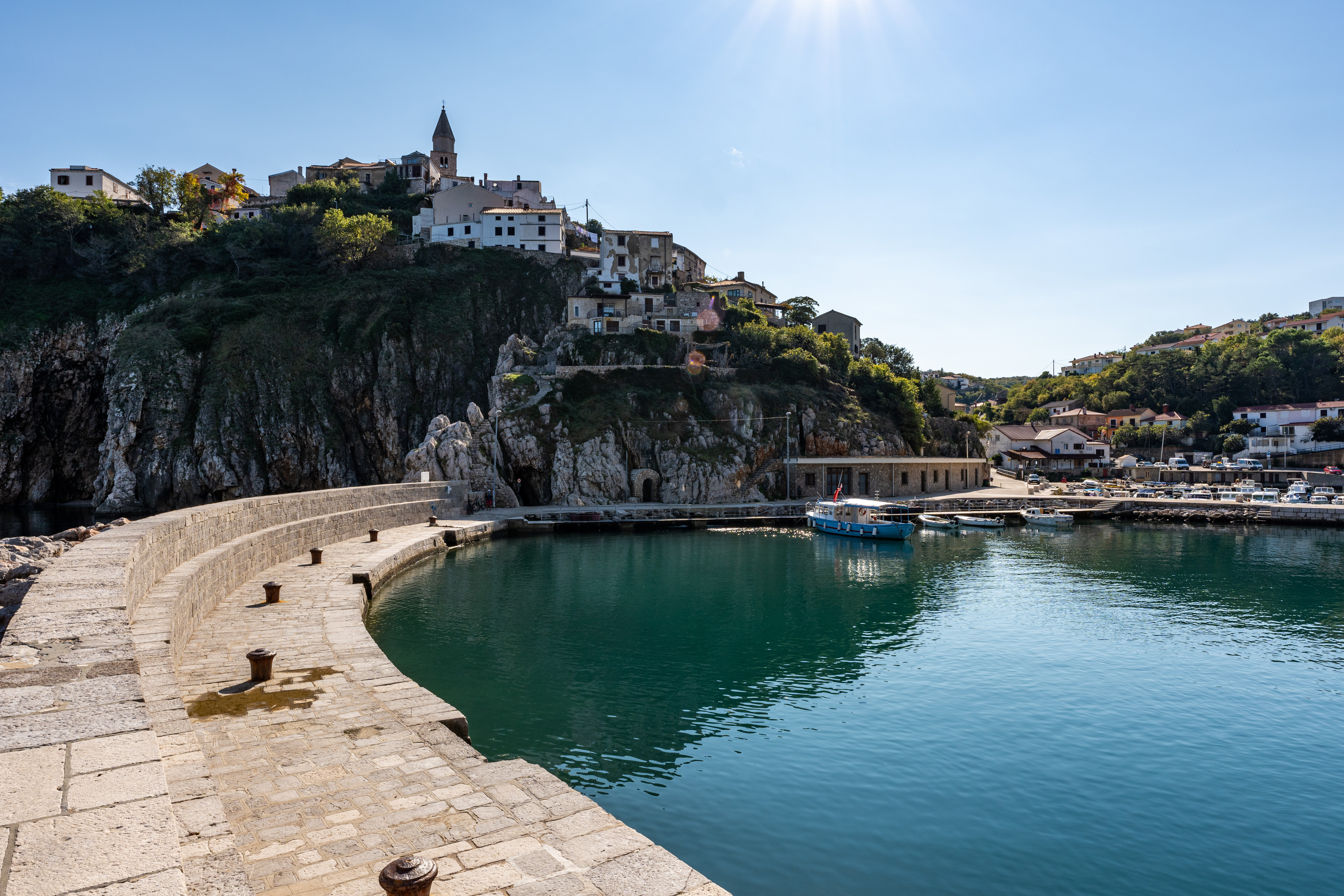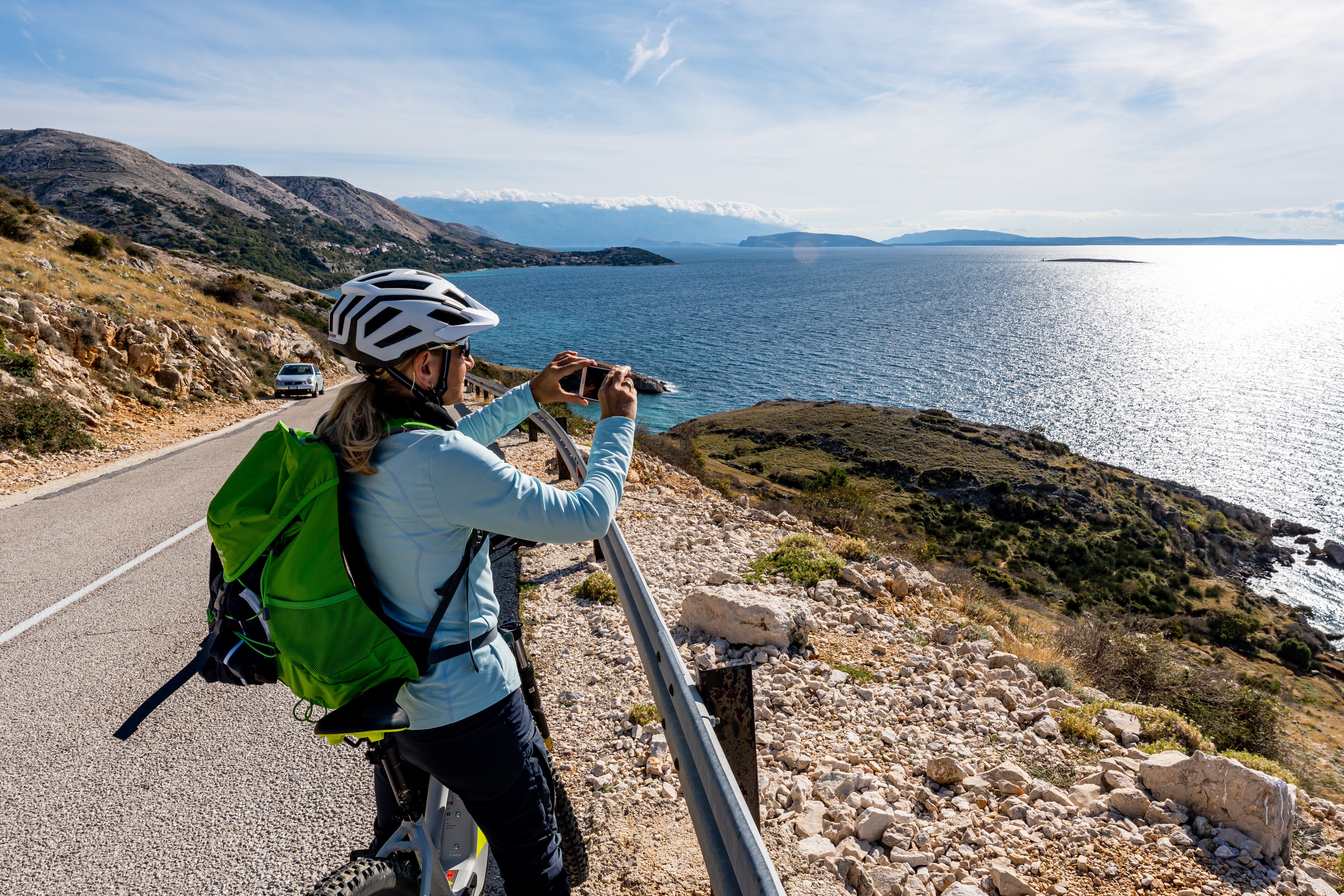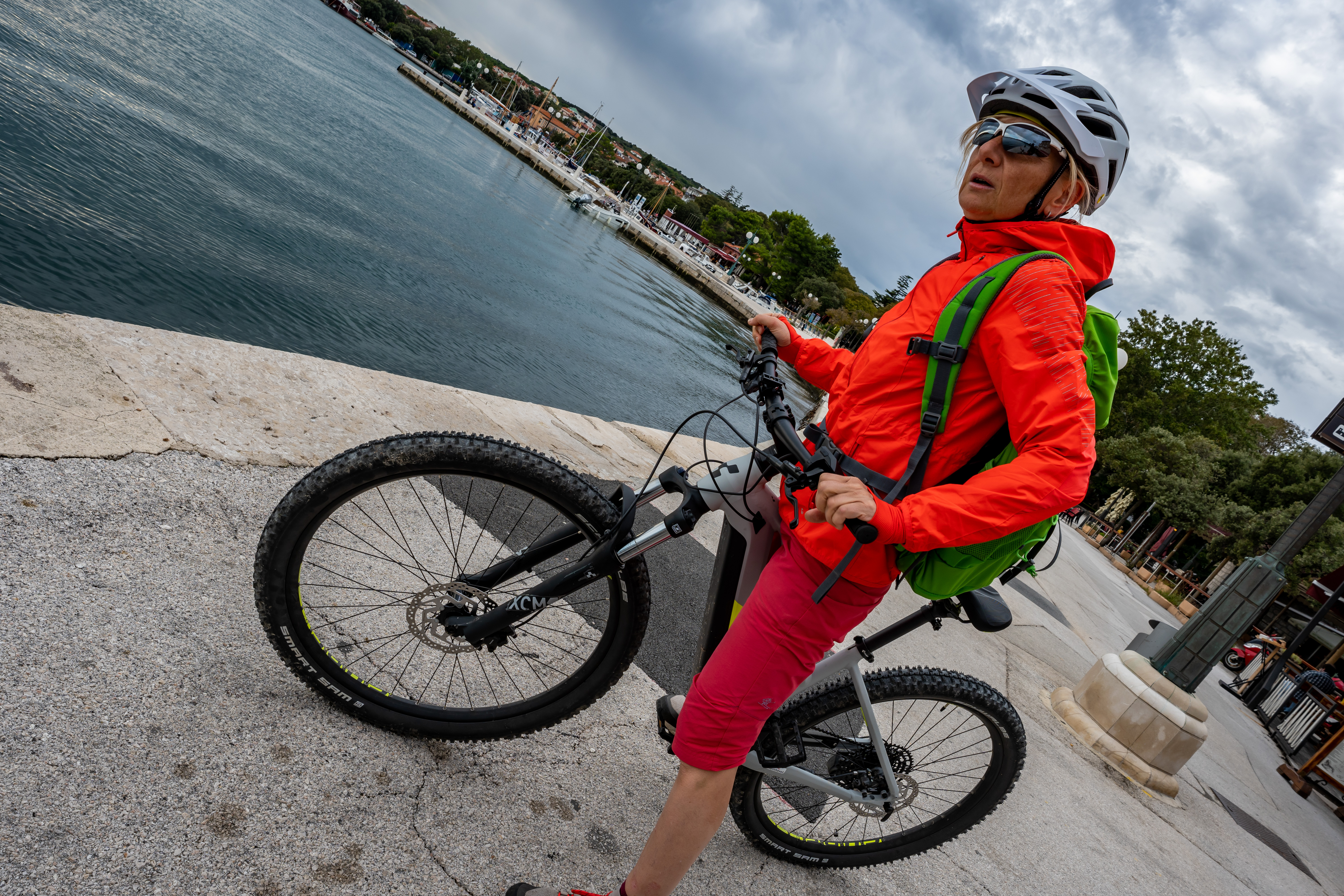 Heute sind wir richtig zeitig wach. 07:30 schleichen wir aus dem Wohnmobil. Wir gehen erstmal in das fast glatte Meer baden, dann frühstücken wir gemütlich ein Müsli. Wir satteln unsere Bikes und radeln gegen 10:10 los in Richtung Vrbnik. Wir fahren auf großen und kleinen Straßen über die Insel Krk. Wir schauen im kleinen Fischerdorf Malinska vorbei und ruhen uns dort erstmal aus. Es geht nach Dobrinj, Risika über Weinfelder weiter bis wir zum Mittag Vrbnik erreichen. Hier shoppen wir ein paar Kleinigkeiten und essen eine „Mittagspizza“ - super lecker aber zu groß für uns. Wir kaufen noch fix eine Flasche lokalen Wein, den Zlahtina (Rebsorte) von Gospoja/Vrbnik. Unterwegs fangen wir kurz vor Krk noch 4kg Mandarinen ein. Bei der Dame hatten wir schon vor Tagen eingekauft, und weil es so lecker war sind wir nochmal zu Ihr. Um 15:00 erreichen wir wieder den Campingplatz. Erstmal fix mit den Nachbarn latschen und nochmal ein schnelles Bad im Meer. Brrrr...schon kalt. Zum Abendessen gibt es Spaghetti Aglio Olio und den Wein dazu. Wir sind durch den sonnenreichen Tag und die Bewegung ganz schön platt. Unsere Platznachbarin Brunhilde hat uns fünf Bücher über ihren letzten Italienurlaub geliehen. Sehr inspirierend. Sieben Wochen in aller Ruhe durch Italien - sehr inspirierend. Dann gehts zeitig in die Koje.