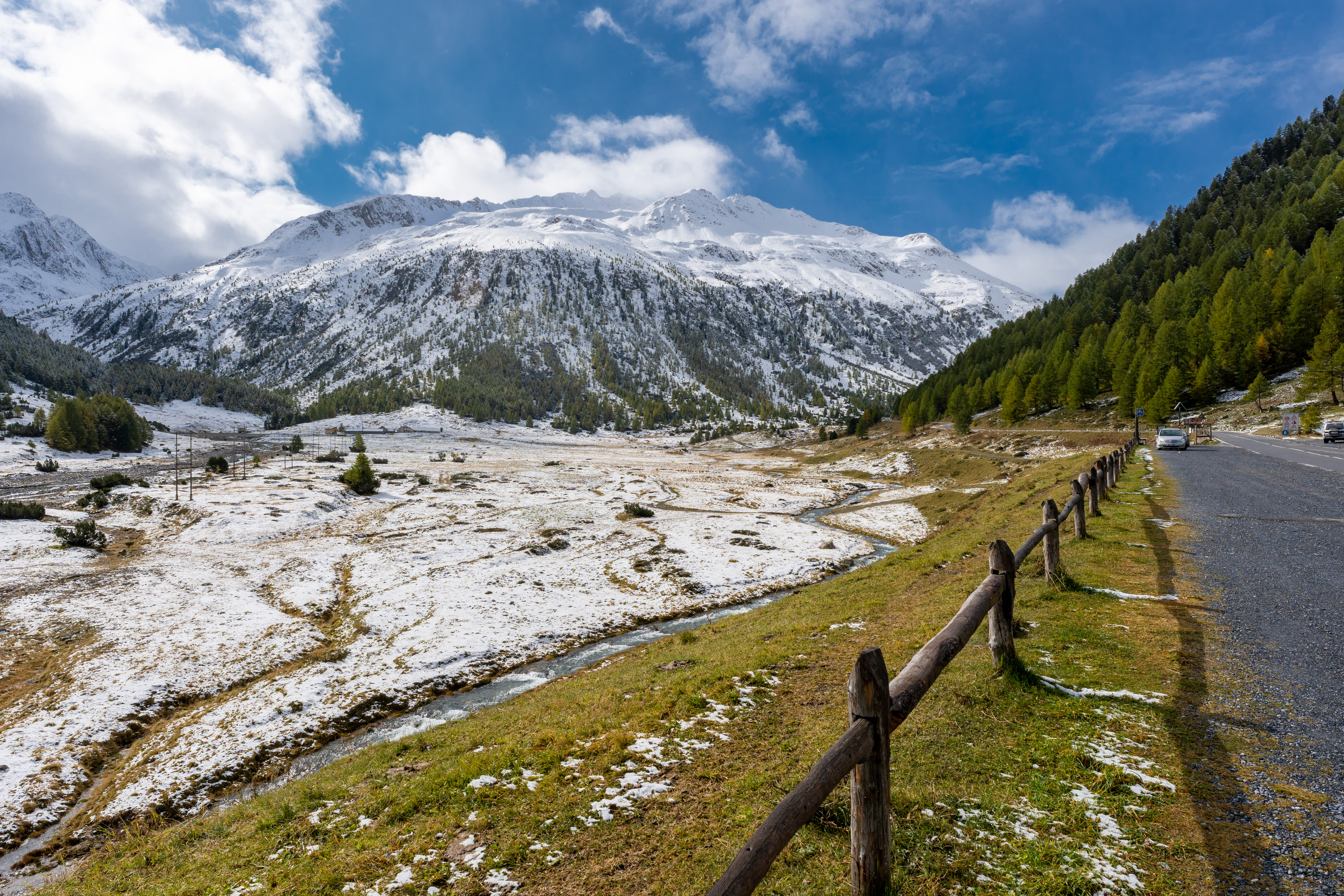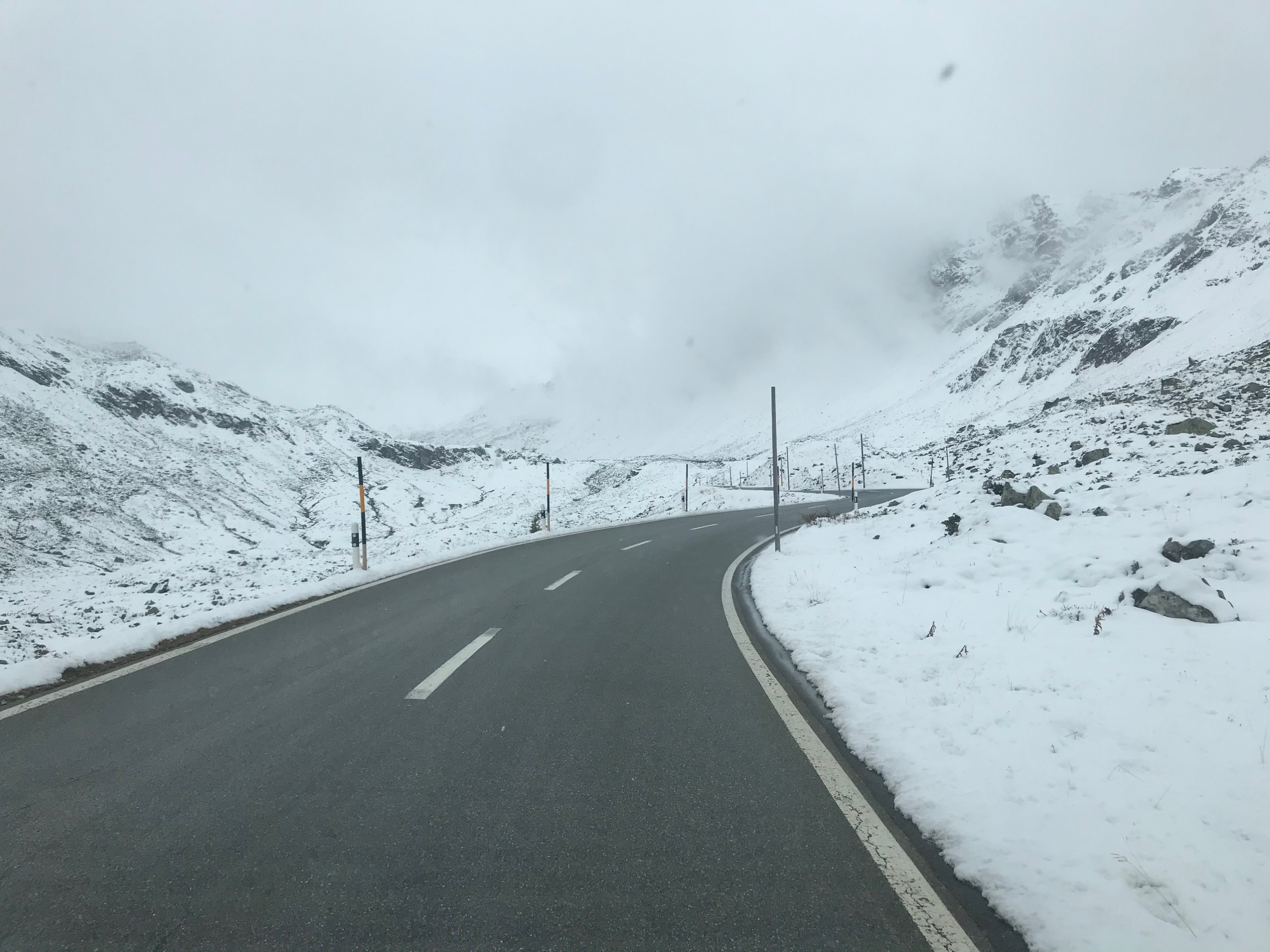 Wir wachen heute zeitig auf, nicht weil wir ausgeschlafen haben, nein, es ist kalt im Wohnmobil denn auch draussen sind es fröstelige 0°C. Ich hatte zwar gestern Abend die Gasflaschen getauscht, aber scheinbar scheint die zweite Flasche nun auch restlos leer zu sein. Prima. Wir brauchen als jetzt erstmal 22kg neues Gas. Das scheint mir laut Recherche im Internet nicht so einfach zu sein. Noch vor dem Frühstück ziehen wir los, weil einfach beim fahren auch der Innenraum etwas wärmer wird. Wir fragen an verschiedenen Stellen, aber so richtig kann uns keiner helfen. Es gibt eine Metzgerei die wohl Gasflaschen hat, also nix wie hin. Leider die falschen Anschlüsse. Gut. Wir beschließen in Richtung Südtirol aufzubrechen. Erst der zweite Anlauf über den Bernina Pass bei 2.200m gelingt uns, beim ersten Versuch waren uns die verschneiten Straßen und unsere Sommerreifen nicht die richtige Kombination für diese Fahrt.