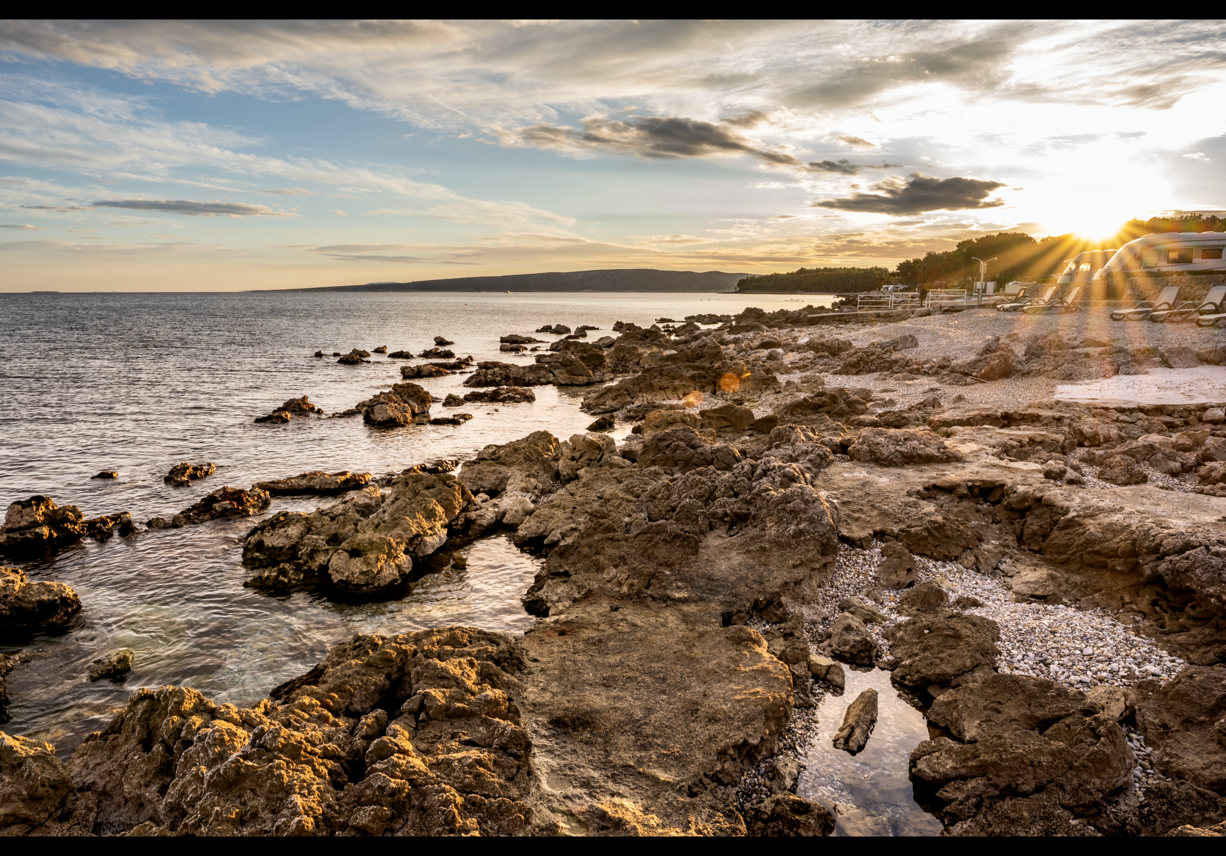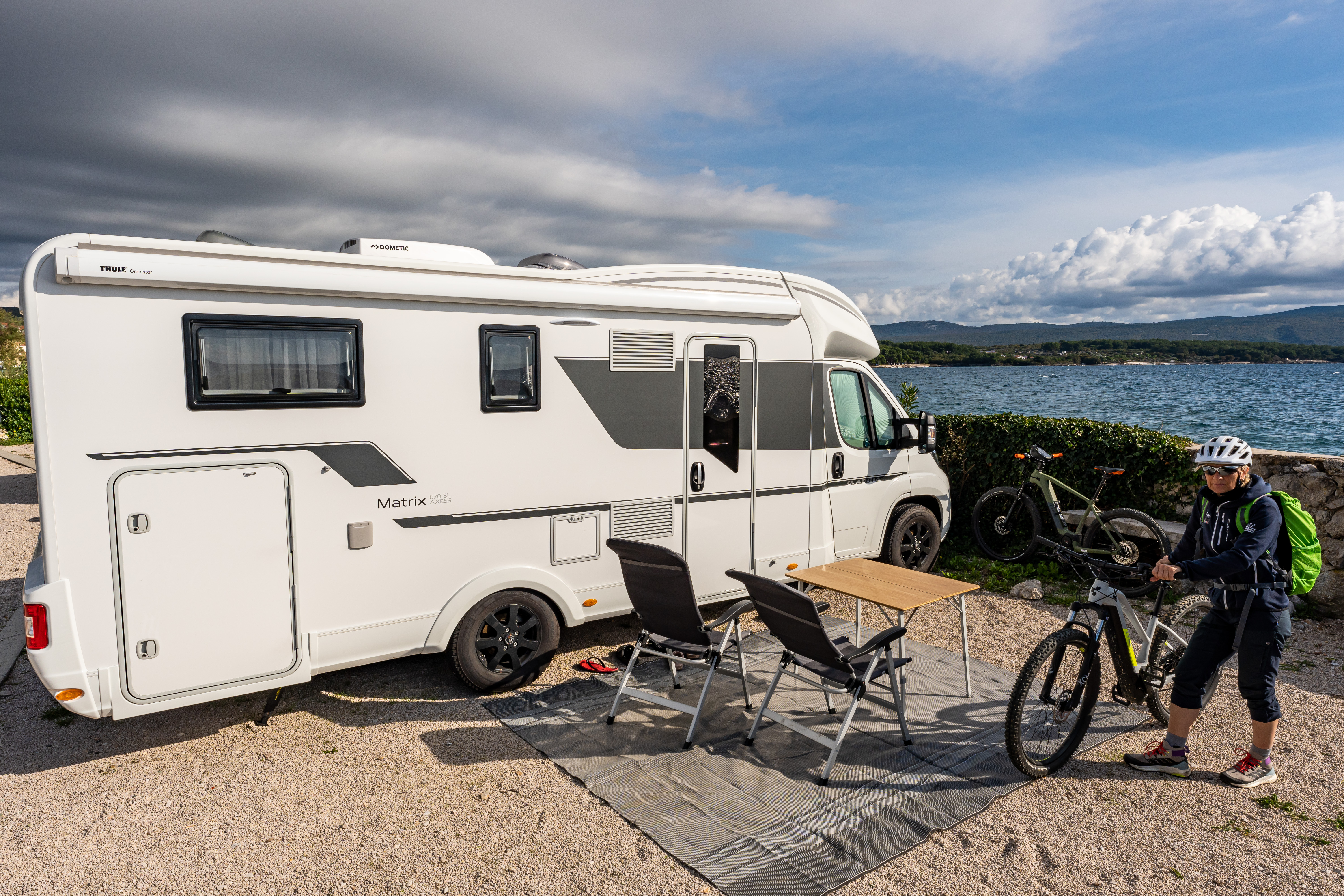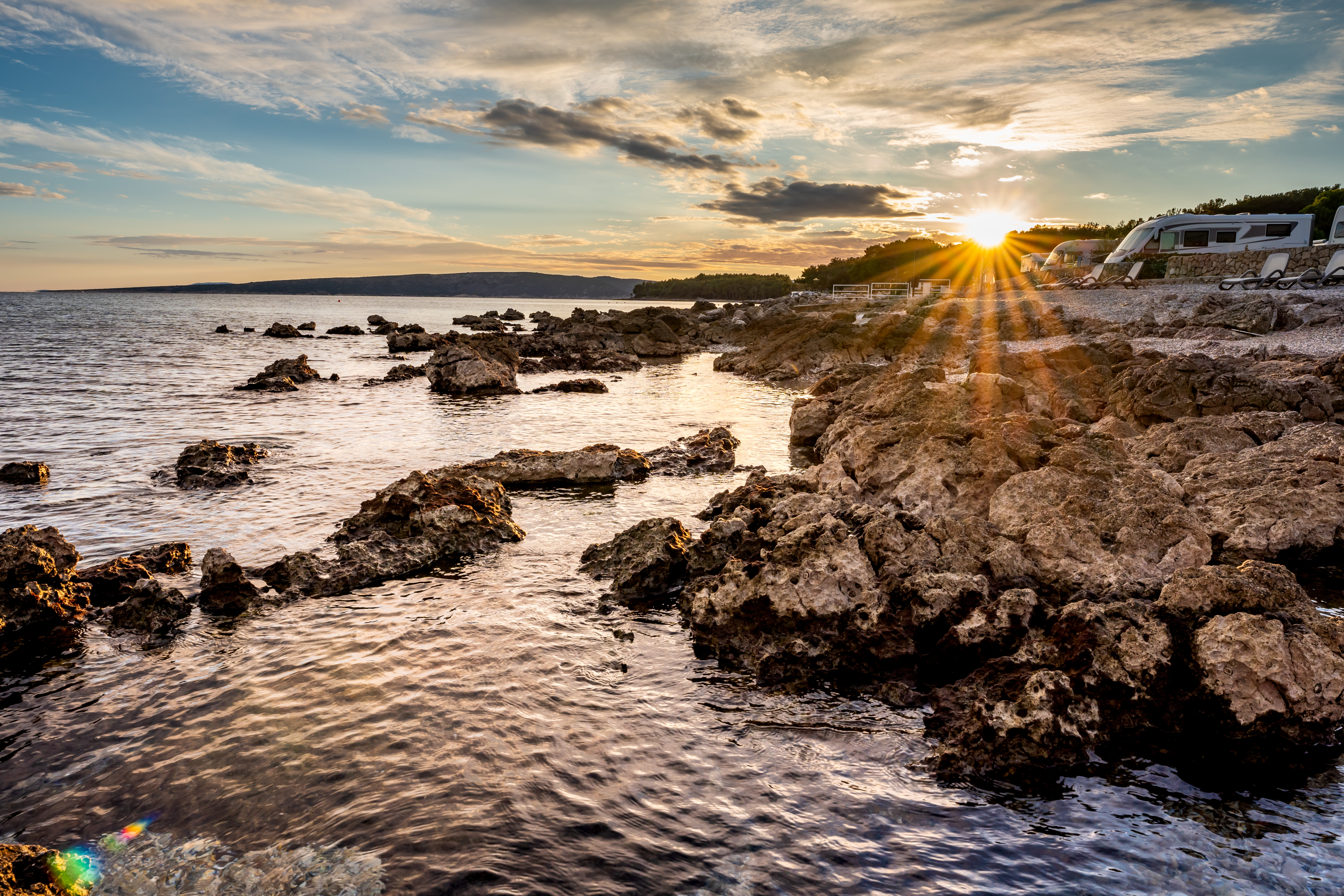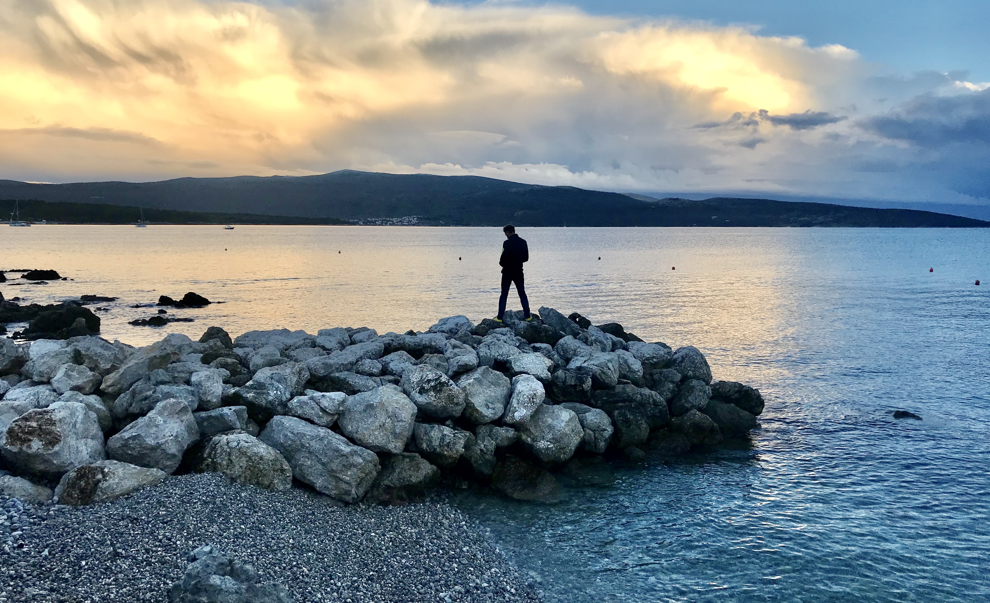 Nach einer doch anstrengenden Fahrt von über 450km und einigen Stunden hinter dem Lenkrad erreichen wir gegen 17:00 Uhr die Insel Krk und den gleichnamigen Ort. Im Supermarkt „Plodine“ füllen wir unsere Vorräte auf. Wir checken auf dem neuen Campingplatz Ježevac Premium Camping Resort ein und freuen uns wie die Kinder über den tollen Stellplatz D 013 - direkt am Meer. Wir stehen lediglich durch eine Mauer getrennt wirklich direkt am Meer. Die Anlage ist super gepflegt und in einem tollen Zustand, kleine Bar, sanitäre Einrichtungen top und eine günstige Lage zum Ortskern von Krk. Morgen soll es noch bisschen regnen, aber da machen wir uns mal nix draus, Regenjacke und fertsch. Wir lassen gerade ein Gewitter über uns ergehen - hat aber keine Ausdauer. Nach 30 Minuten ist alles vorbei.