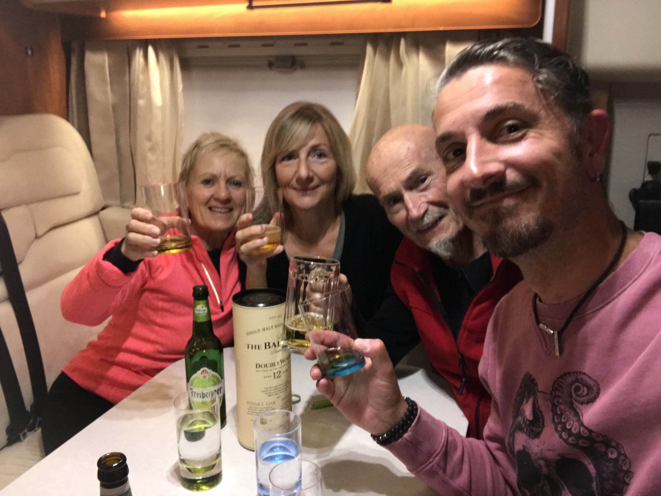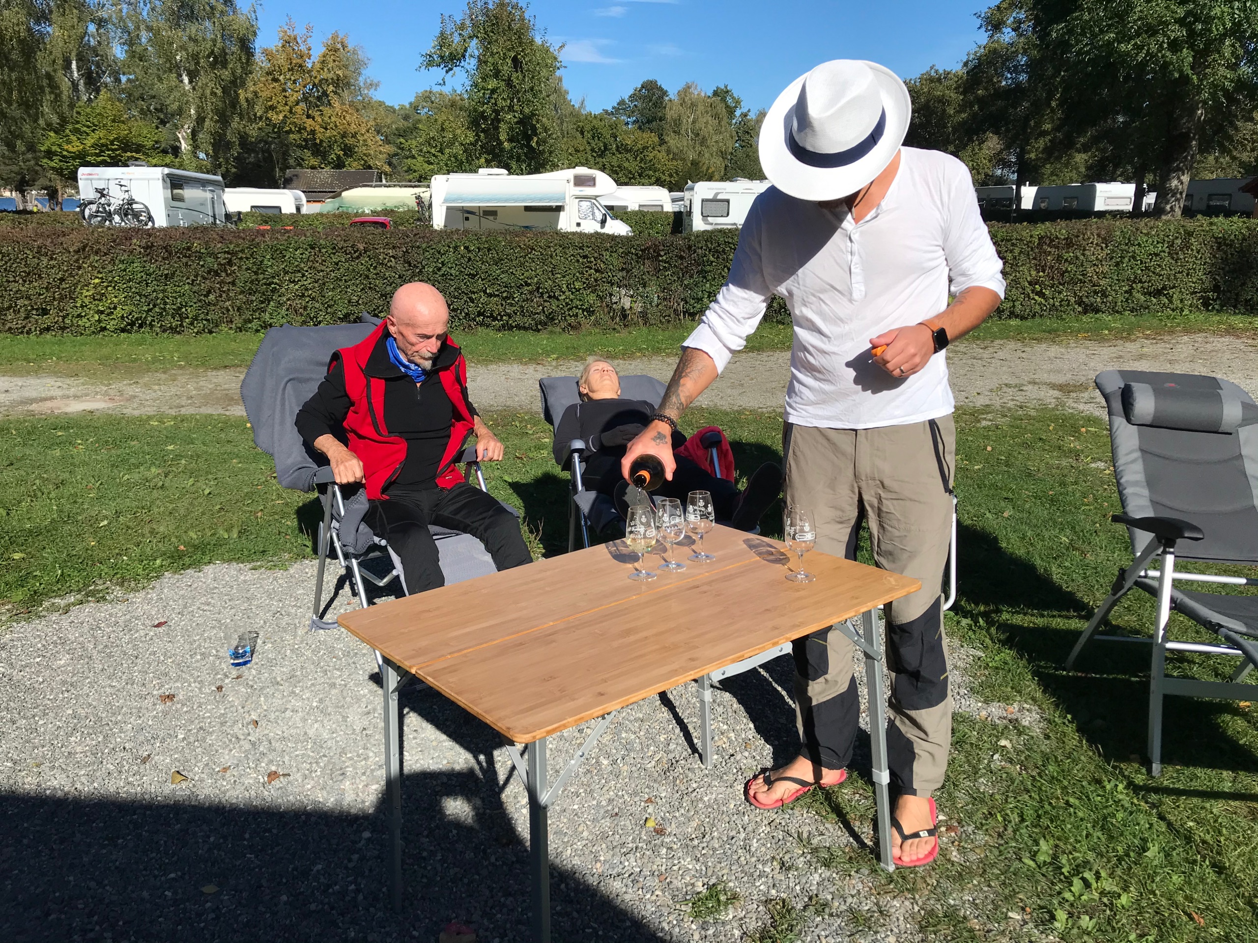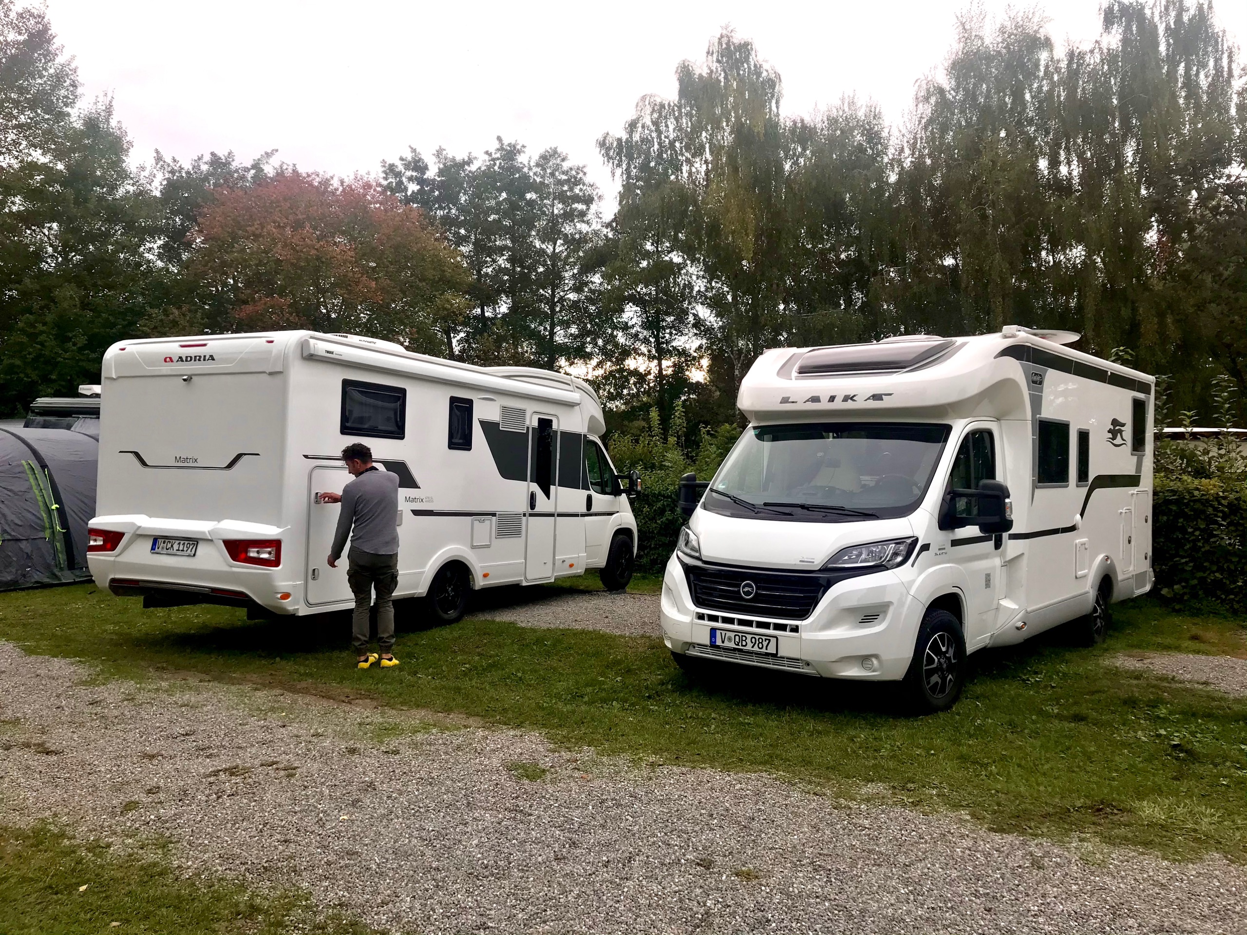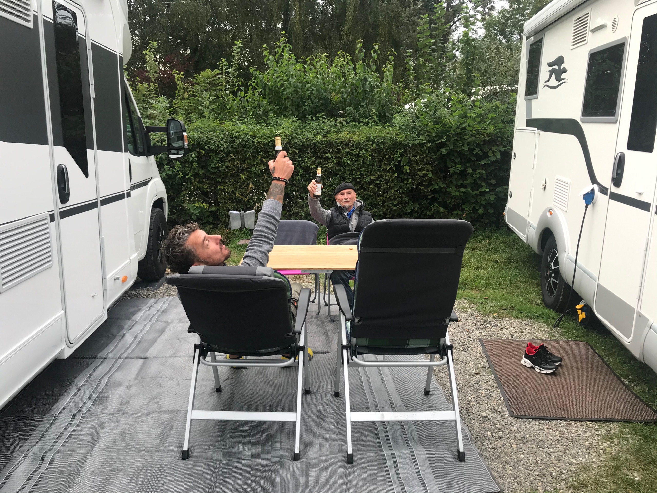 Nach mehreren Stopps sind wir dann am Freitag nach einer recht entspannten Fahrt gegen 16:30 am Campingplatz „Klausenhorn“ in Wallhausen am Bodensee angekommen. Die zwei Wohnmobile waren schnell in Stellung gebracht und dann war auch schon Campingessen angesagt. Nudeln :-). Der Abend war super lustig - Würfelpocker mit Petra und Peter.