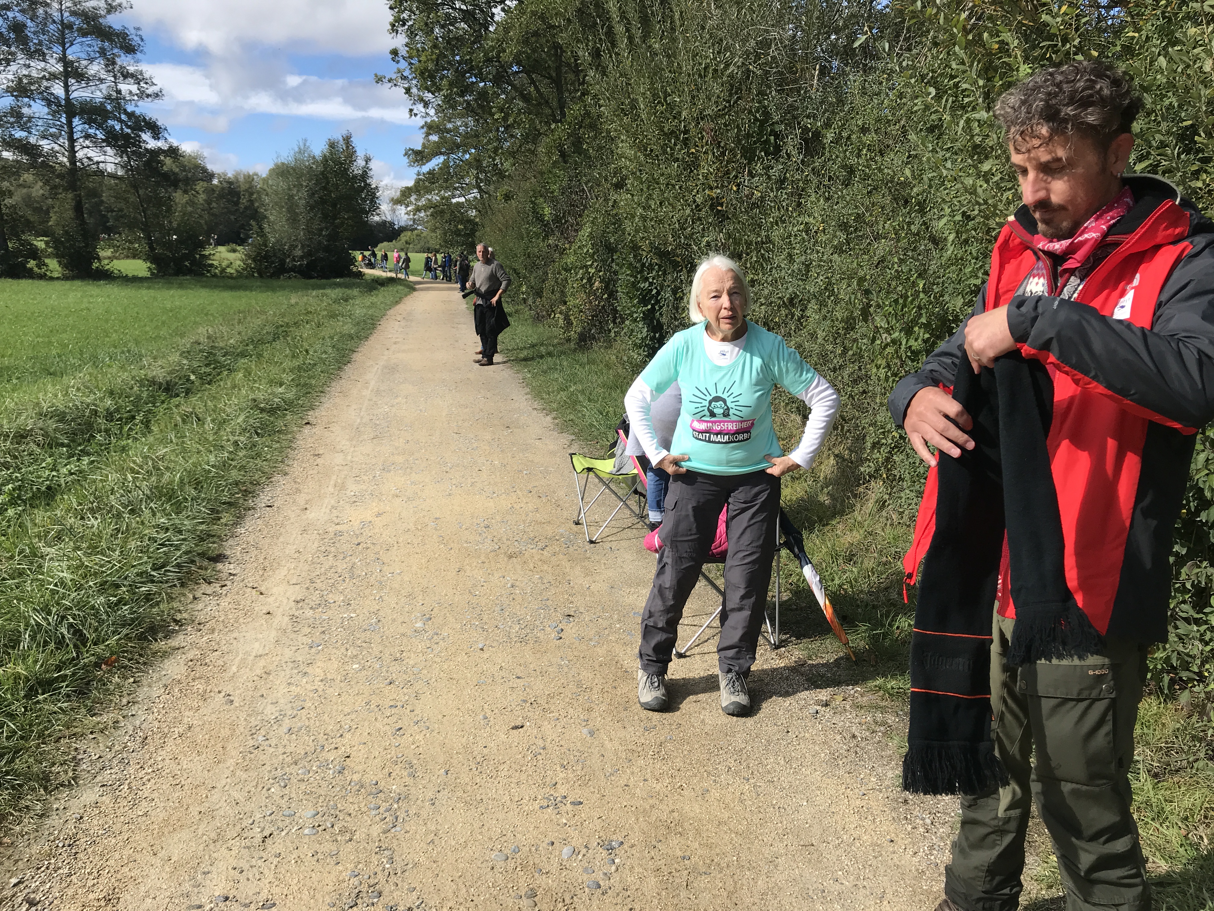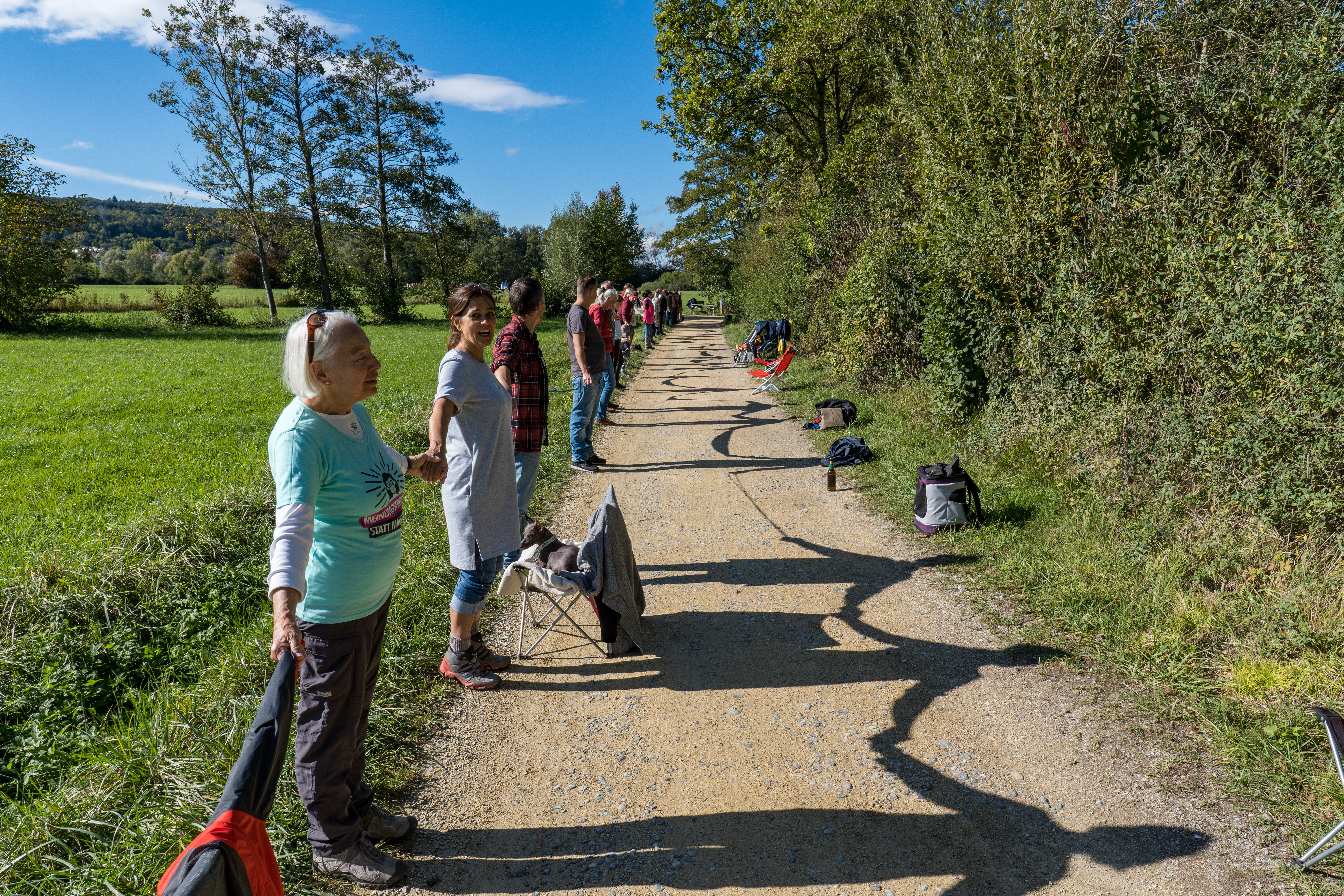 Wie oben bereits erwähnt, ist heute die Menschenkette um den Bodensee geplant. Daher gehen wir erst einmal bei wirklich beschissenem Wetter (starker Regen und sehr starker Wind) nach Wallhausen um uns registrieren zu lassen. Zack Aufkleber an die Jacke und schon erledigt. 14:00 begeben wir uns in unseren Abschnitt für den wir uns gemeldet hatten, direkt am Campingplatz. 15:00 wurde die Kette dann komplett um den See geschlossen und bis 15:30 geschlossen gehalten. Schon ein tolles Gefühl an so einem Event teilzunehmen, erst recht wenn es als Protest gegen die geistlosen und unsinnigen Auflagen der Idioten Spahn, Drosten, Merkel, Söder und Co. gedacht ist.