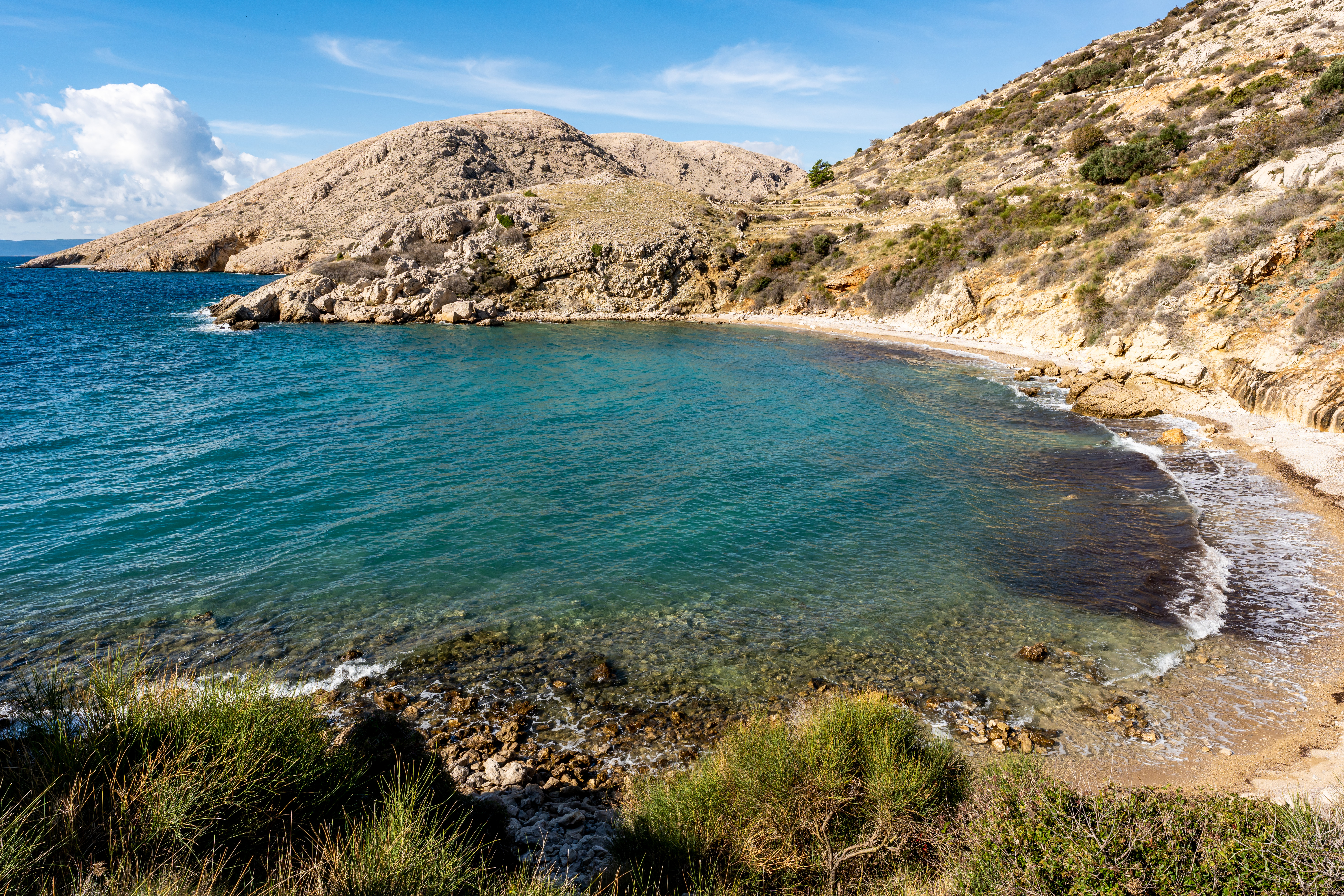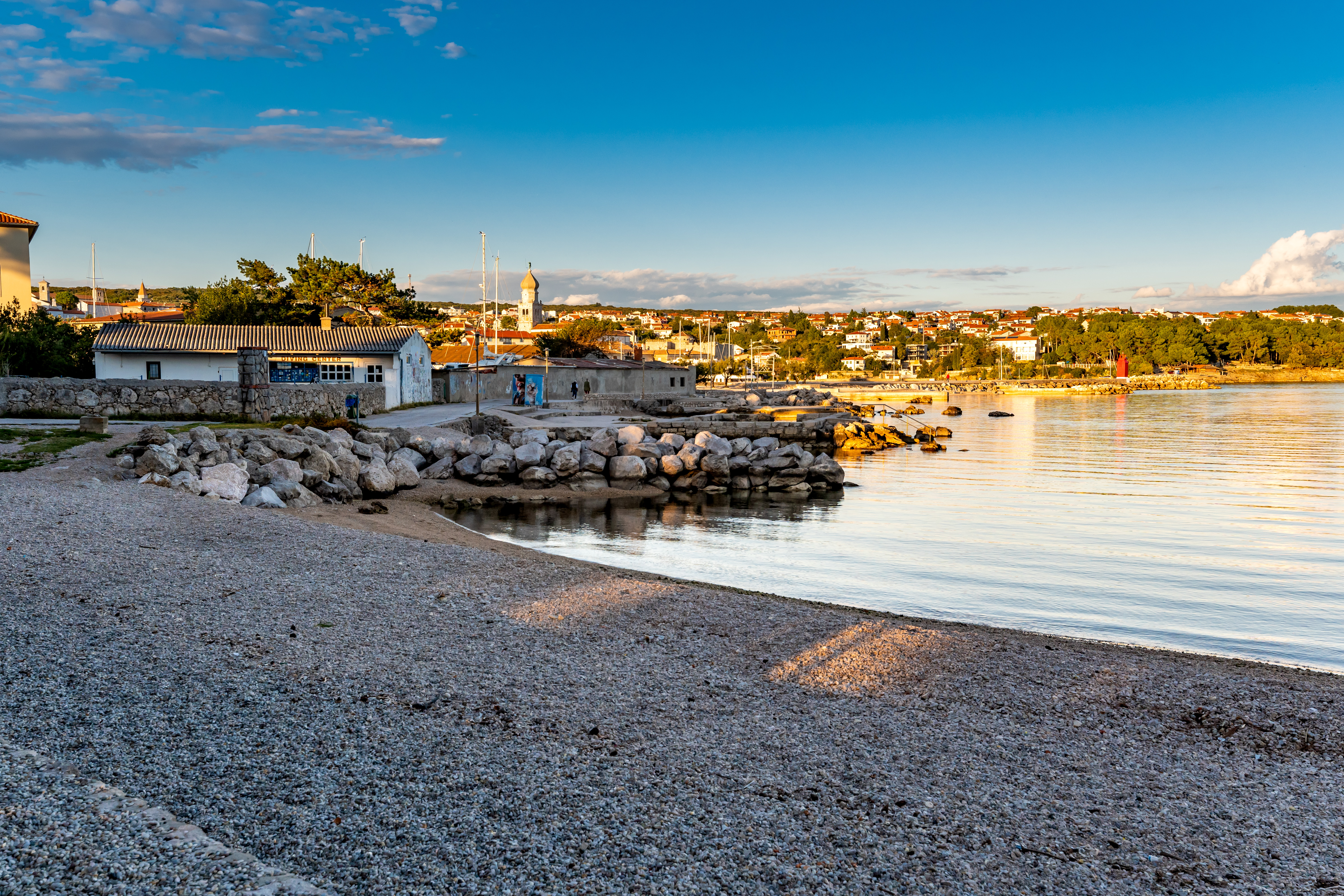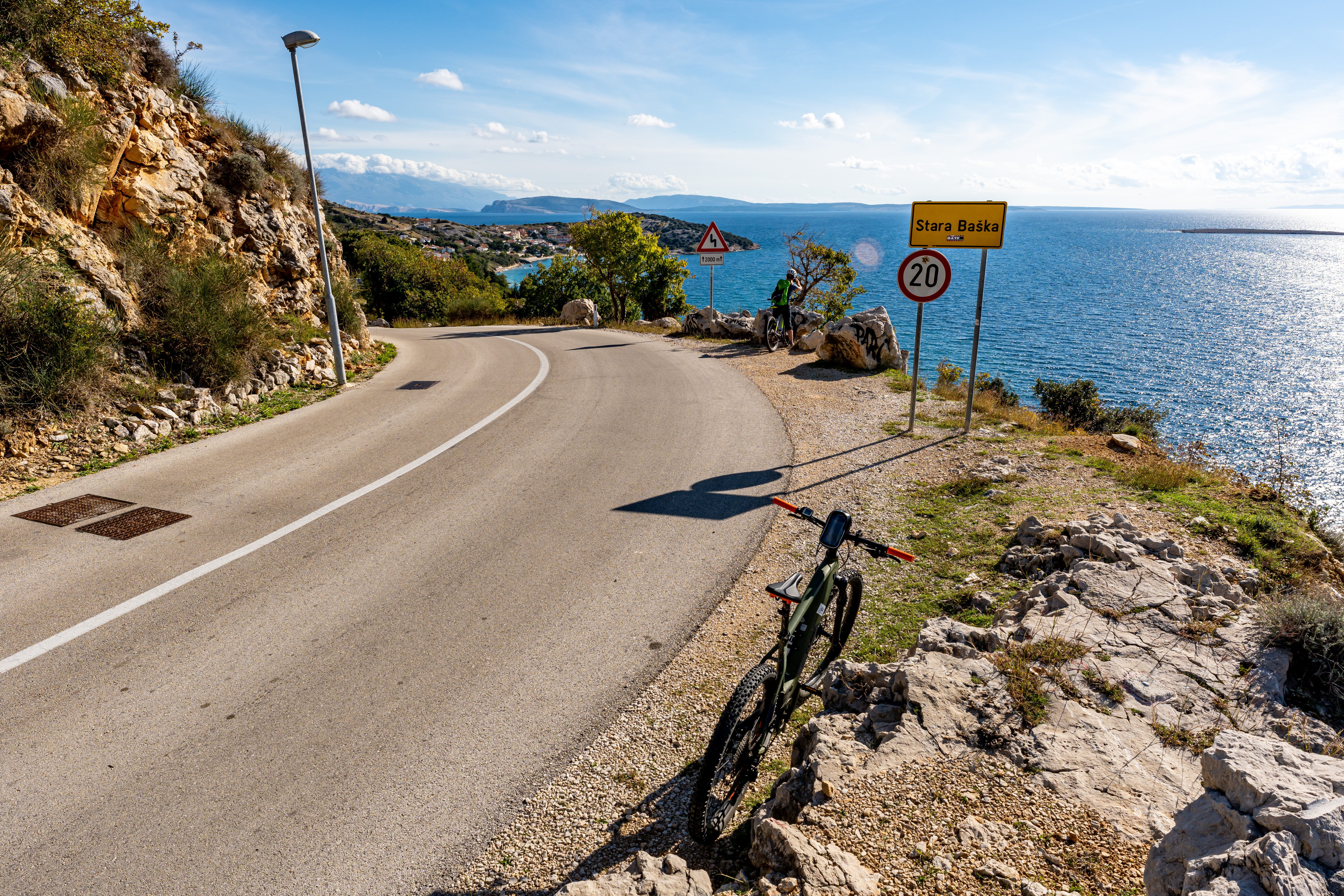 Unser letzter vollständiger Tag in Kroatien ist angebrochen. Wir wachen bei einem tollen Morgenhimmel auf und frühstücken draußen und trödeln in den Tag. Um 11:00 radeln wir zu unserem heutigen Ziel - Stara Baska. Wir wollen mal das kleine verschlafene Dörfchen sehen. Wir fahren über die Berge und finden unterwegs eine tolle Badebucht - Uvala Zaglav. Wir werfen die Räder über die Leitplanke und kraxeln runter zum Strand. Wir gönnen uns in der einsamen Bucht zwei Stunden in der Sonne. Wir essen unser „Mitnehmebrot“. Wir können leider nicht baden, da es sehr stürmisch ist, macht aber nichts, wir tappen eben bloß mit den Füßen bisschen am Strand rum. Wir fahren weiter nach Stara Baska und freuen uns über einen fantastischen Blick auf die Insel Krk und die benachbarte Insel Cres. Kurze Rundfahrt durch das nun tatsächlich schlafende Nest Stara Baska und machen uns auf den Rückweg. In Punat schauen wir in den „Discont“ uns kaufen zwei Flaschen Olivenöl und zwei Flaschen vom lokalen Wein Zlatina. Noch ein kurzer Stopp am Obststand, selbst nach dem vierten Einkauf bei der Dame erkennt Sie uns nicht wider, naja. Heute Abend haben wir ein Date mit unseren Stellplatznachbarn Franz und Brunhilde. Bis dahin chillen wir am Wohnmobil und gegen 16:30 fangen wir an uns für das abendliche Dinner hübsch zu machen. Franz und Brunhilde wollen uns die kleine aber wohl feine Gastätte „Galija“ zeigen - die haben aber leider geschlossen. Wir weichen aus auf die ebenso urgemütliche und tolle Konoba „Mali Nono“. Es gibt Weißwein, Fischsuppe, marinierten Salzfisch, Gnochi mit Trüffel und Spaghetti mit Seafood. Volle lecker. Auf jeden fall haben wir hier in der Altstadt von Krk zwei tolle Tipps bekommen wo man gut essen kann. Wir laufen zurück zum Campingplatz und lassen den Abend mit den beiden bei Gin-Tonic und Reiseerzählungen ausklingen.