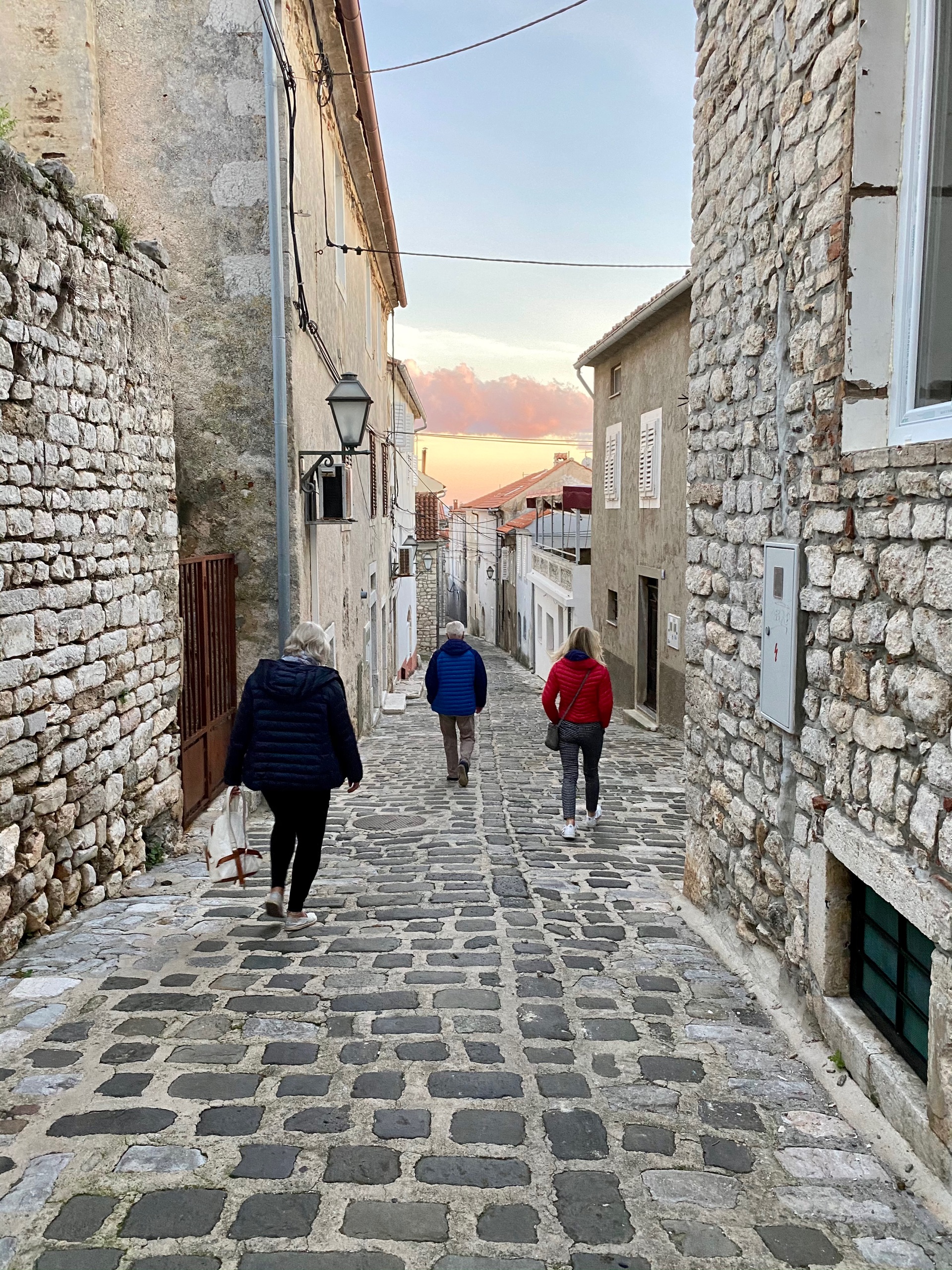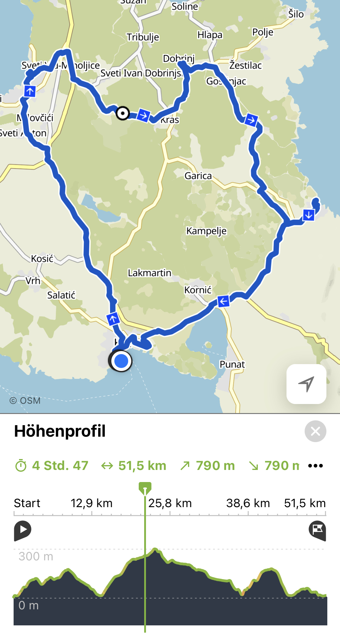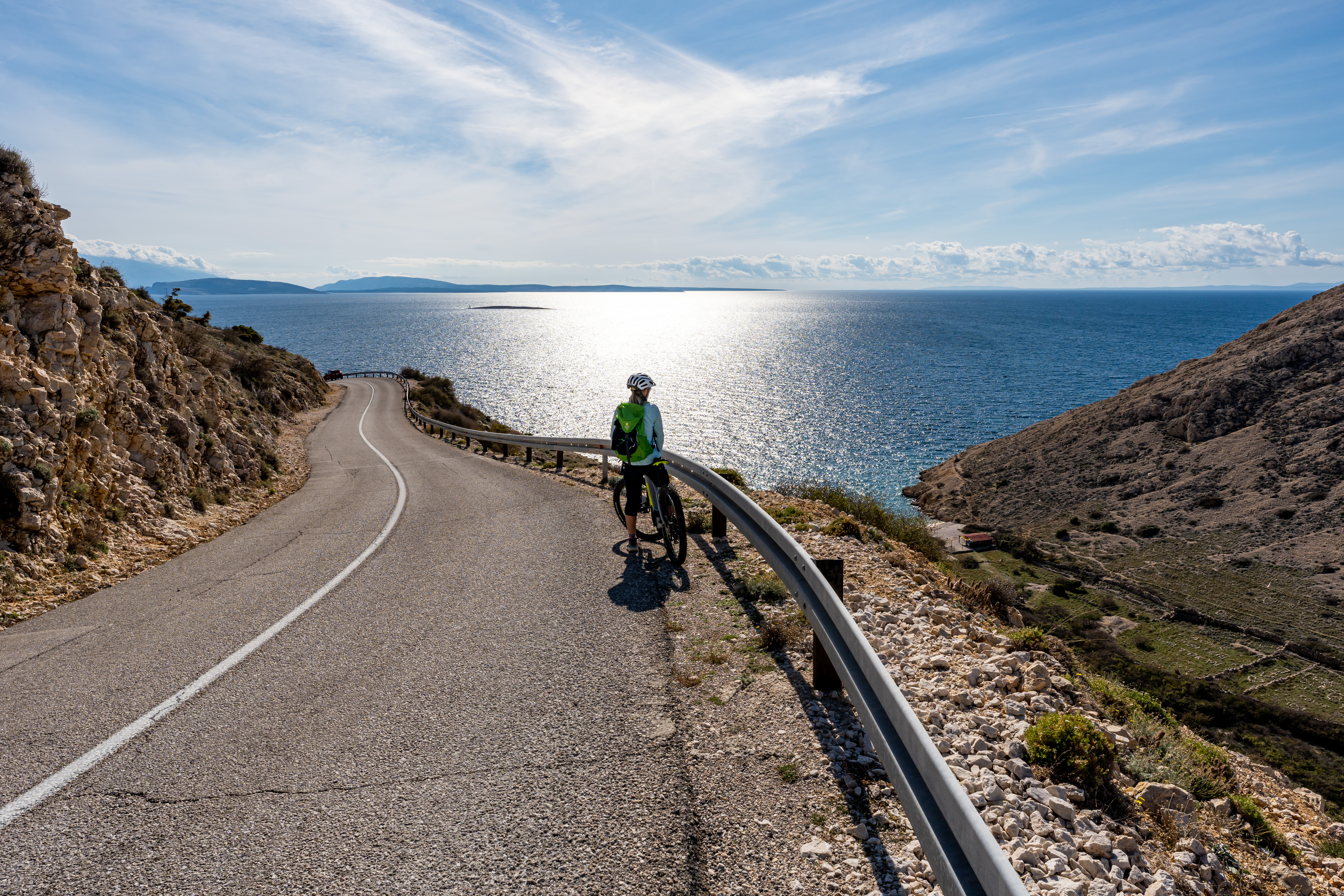Unser letzter vollständiger Tag in Kroatien ist angebrochen. Wir wachen bei einem tollen Morgenhimmel auf und frühstücken draußen und trödeln in den Tag. Um 11:00 radeln wir zu unserem heutigen Ziel - Stara Baska. Wir wollen mal das kleine verschlafene Dörfchen sehen. Wir fahren über die Berge und finden unterwegs eine tolle Badebucht - Uvala Zaglav. Wir werfen die Räder über die Leitplanke und kraxeln runter zum Strand. Wir gönnen uns in der einsamen Bucht zwei Stunden in der Sonne. Wir essen unser „Mitnehmebrot“. Wir können leider nicht baden, da es sehr stürmisch ist, macht aber nichts, wir tappen eben bloß mit den Füßen bisschen am Strand rum. Wir fahren weiter nach Stara Baska und freuen uns über einen fantastischen Blick auf die Insel Krk und die benachbarte Insel Cres. Kurze Rundfahrt durch das nun tatsächlich schlafende Nest Stara Baska und machen uns auf den Rückweg. In Punat schauen wir in den „Discont“ uns kaufen zwei Flaschen Olivenöl und zwei Flaschen vom lokalen Wein Zlatina. Noch ein kurzer Stopp am Obststand, selbst nach dem vierten Einkauf bei der Dame erkennt Sie uns nicht wider, naja. Heute Abend haben wir ein Date mit unseren Stellplatznachbarn Franz und Brunhilde. Bis dahin chillen wir am Wohnmobil und gegen 16:30 fangen wir an uns für das abendliche Dinner hübsch zu machen. Franz und Brunhilde wollen uns die kleine aber wohl feine Gastätte „Galija“ zeigen - die haben aber leider geschlossen. Wir weichen aus auf die ebenso urgemütliche und tolle Konoba „Mali Nono“. Es gibt Weißwein, Fischsuppe, marinierten Salzfisch, Gnochi mit Trüffel und Spaghetti mit Seafood. Volle lecker. Auf jeden fall haben wir hier in der Altstadt von Krk zwei tolle Tipps bekommen wo man gut essen kann. Wir laufen zurück zum Campingplatz und lassen den Abend mit den beiden bei Gin-Tonic und Reiseerzählungen ausklingen.
