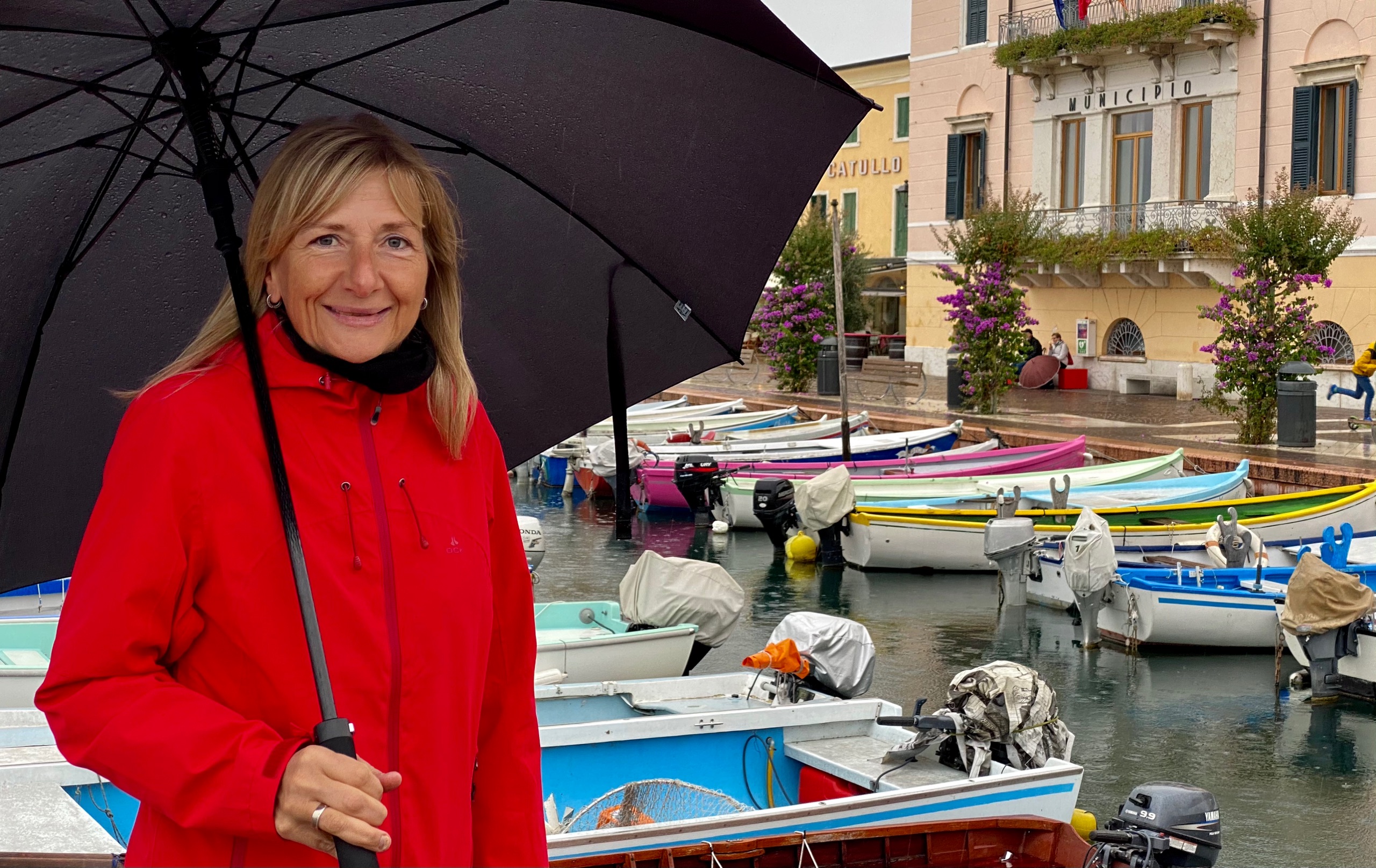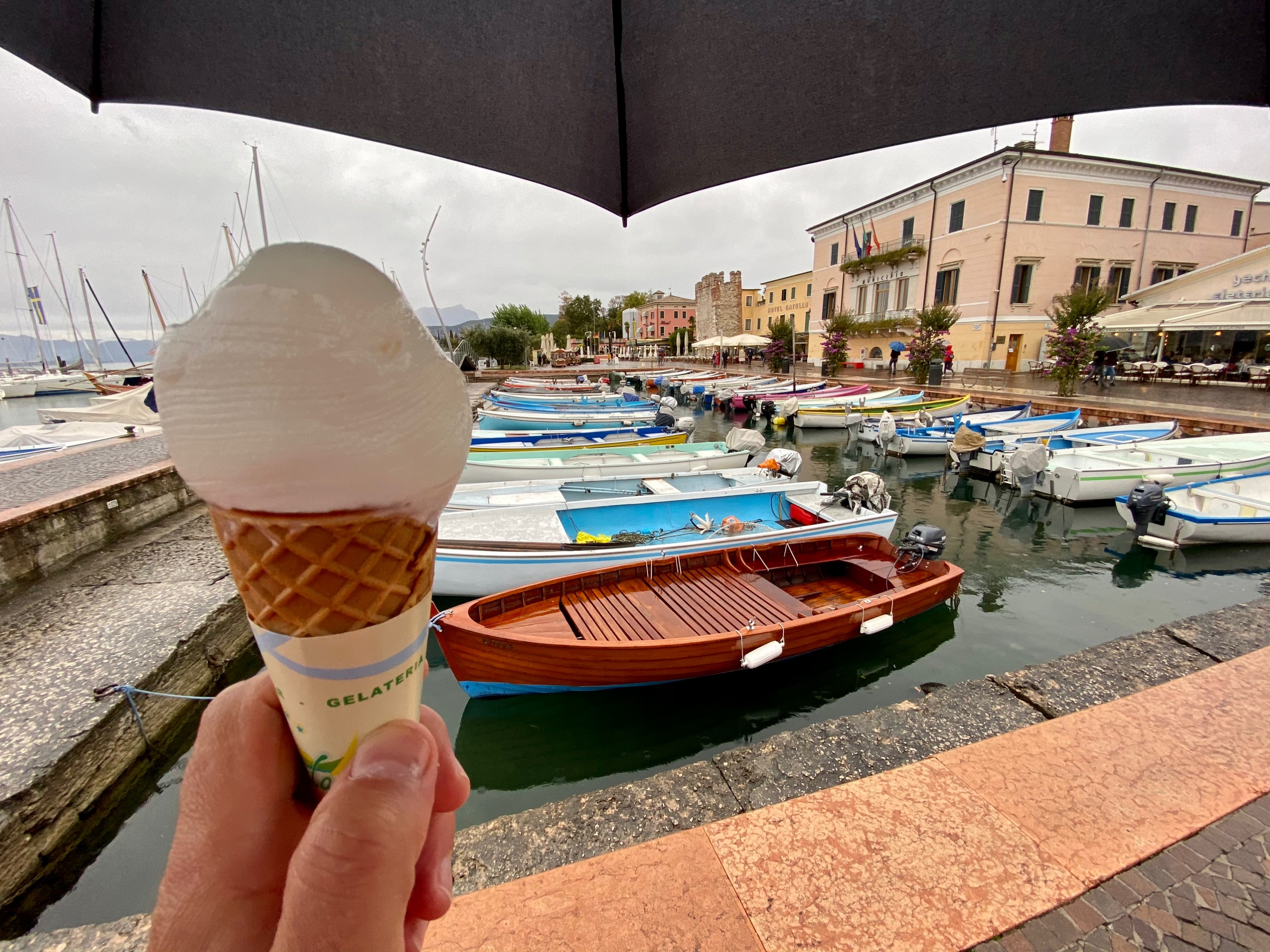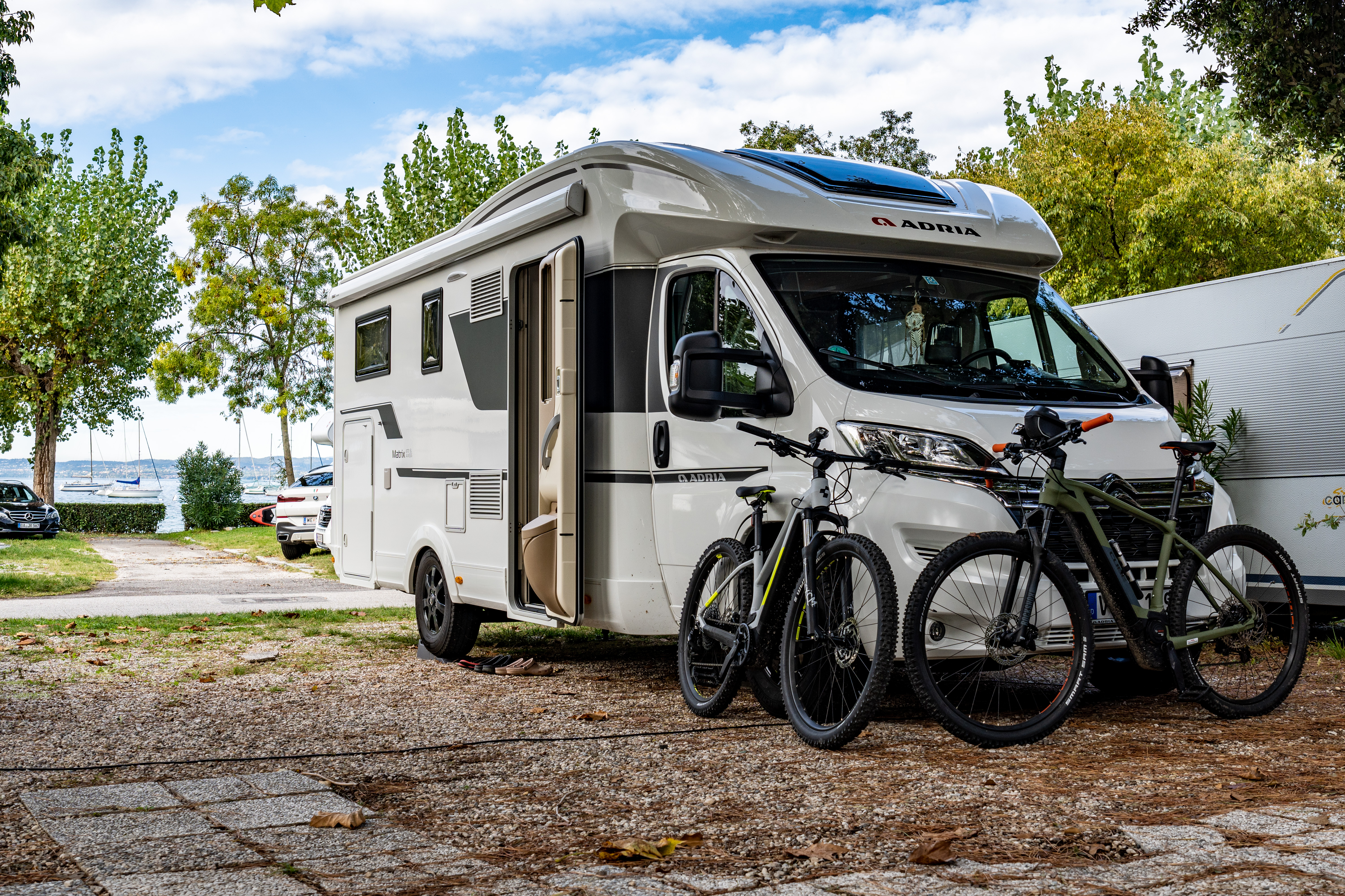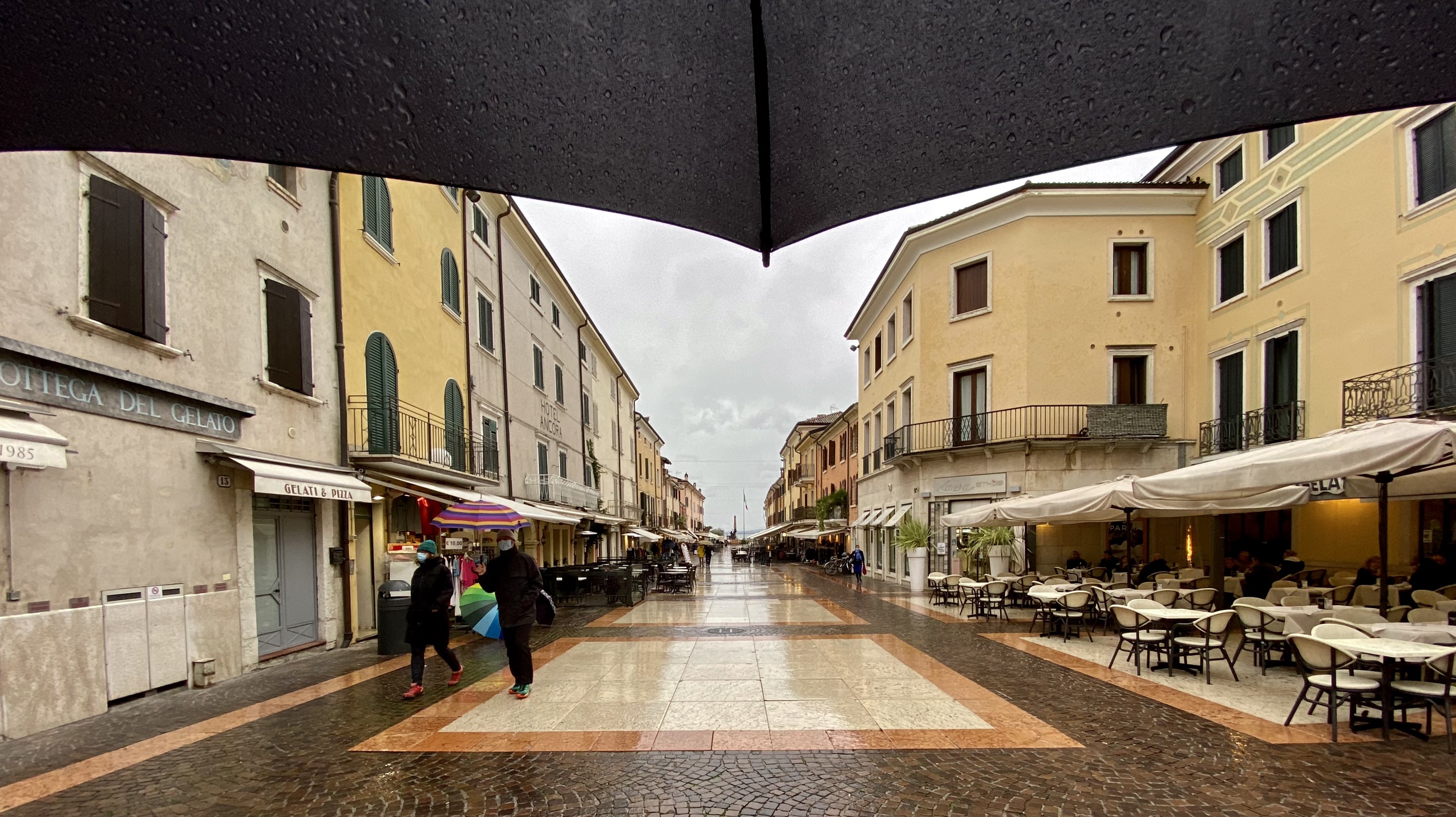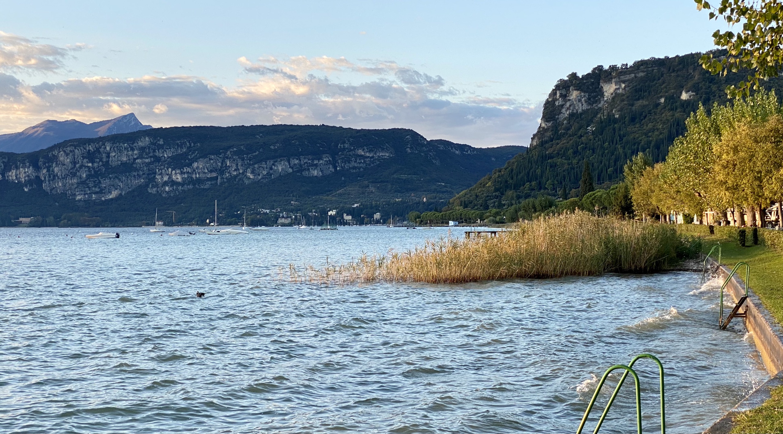 Es hat die ganze Nacht wie angesagt geregnet, aber nicht schlimm - wir haben ja eine festes Dach über dem Kopf. Als wir gegen 08:00 aufstehen klart es aber schon bisschen auf. Wir frühstücken gemütlich und entscheiden uns für eine Fahrradtour. Es geht über den Stadtrand von Affi über die Weinberge in Richtung Garda. 26 km mit unseren tollen Rädern machen auf dieser Tour wirklich viel Spass. Ob kleine Schotterwege oder Landstraße, jeder Untergrund wird gelassen gemeistert. Wir teilen uns in Garda am Hafen eine Pizza und das schöne Wetter wird in vollen Zügen genossen. Wir amüsieren uns über die ganzen Maskenschafe die vorbeilaufen. Es geht am Wasser zurück nach Bardolino. Wir chillen am Wohnmobil auf dem Campingplatz. Es sind immerhin ca. 21°C und da kann man doch schon von Sonnenbad reden. Gegen 17:00 raffen wir uns auf und radeln zum Eurospar. Unser Kühlschrank und die Reserven gehen zur Neige also müssen wir mal wieder bisschen „Bunkern“. 18:30 gönnen wir uns den tollen Sonnenuntergang und machen unser Abendessen. Noch ein paar Minuten aktuelle Politik, man kann sich ja auch im Urlaub weiter bilden.