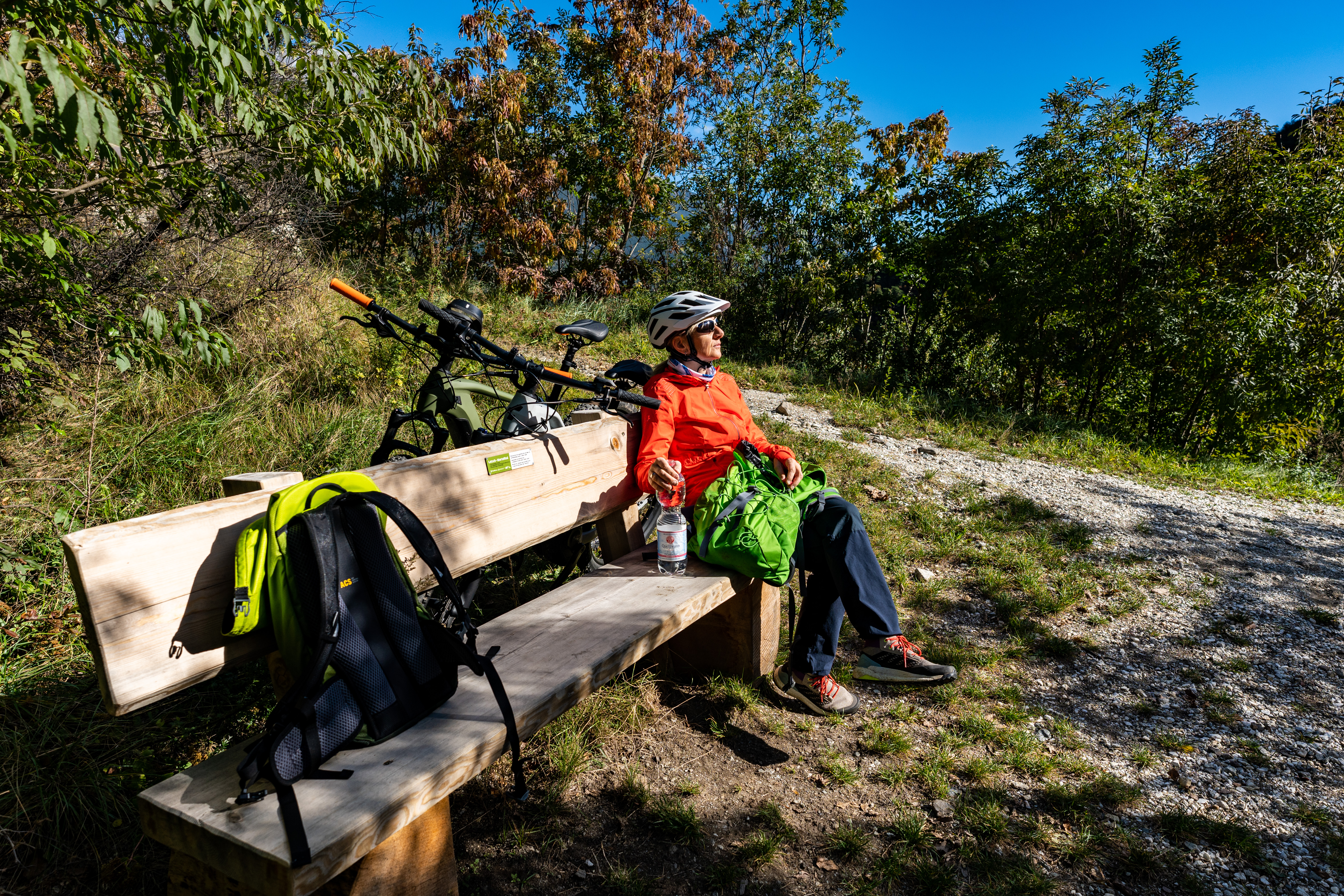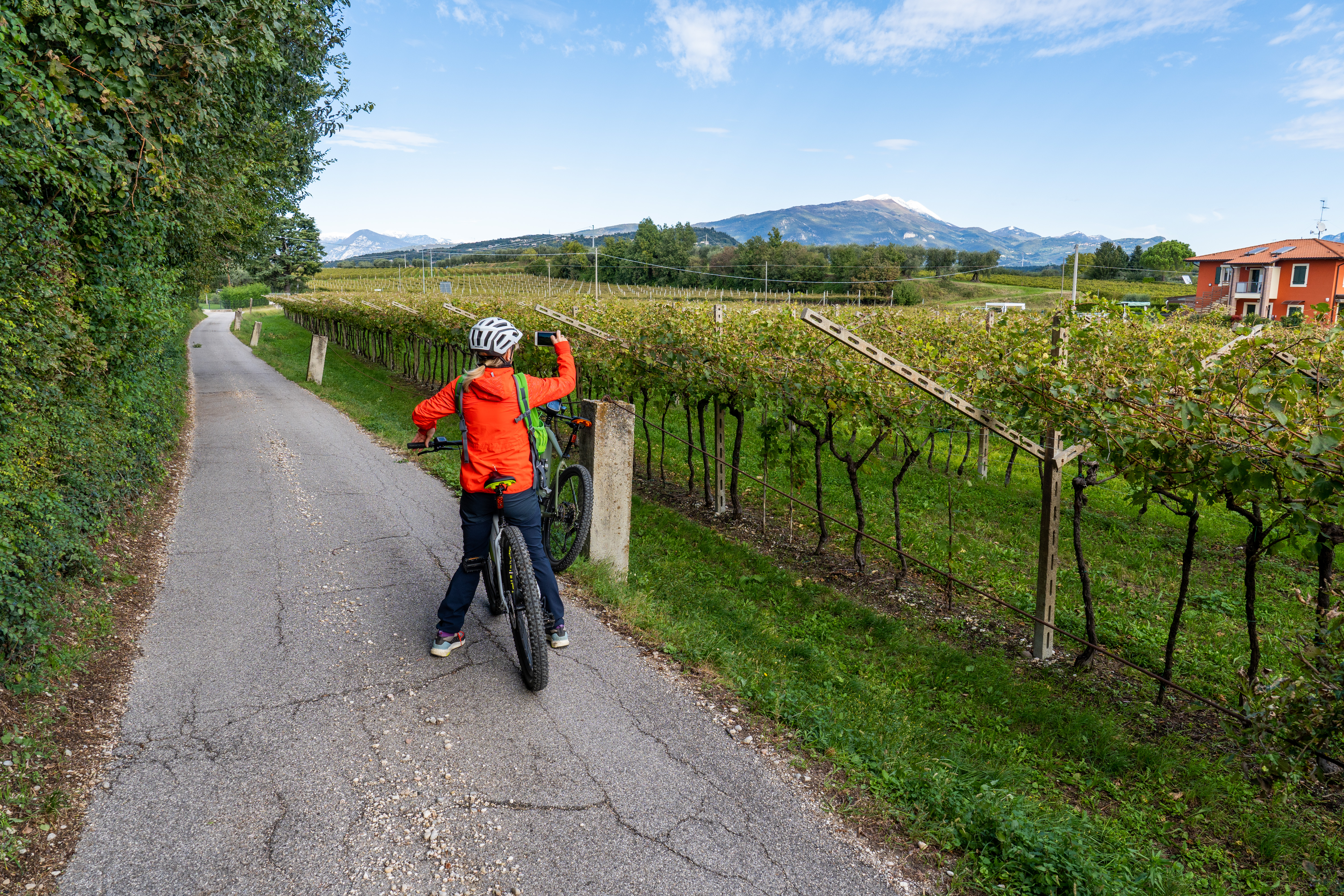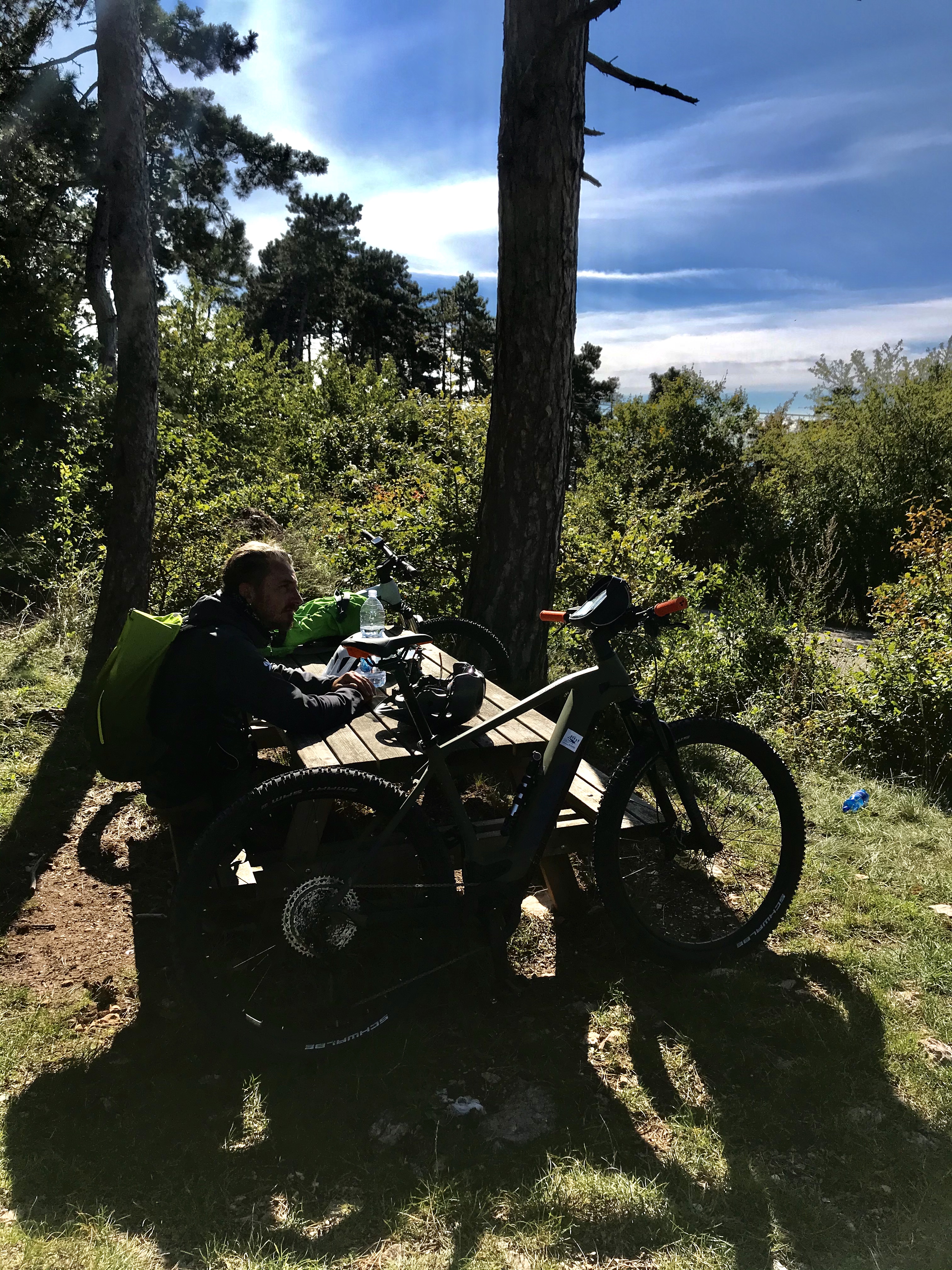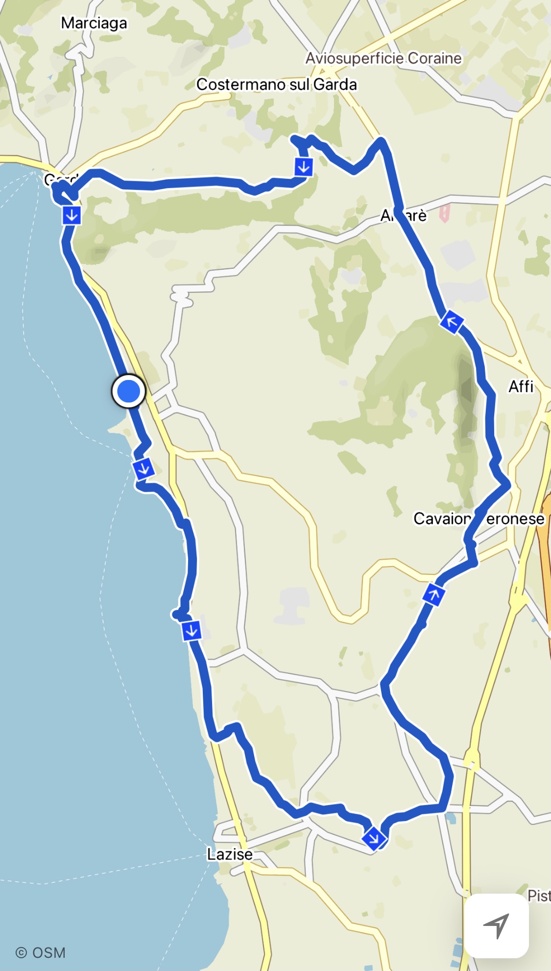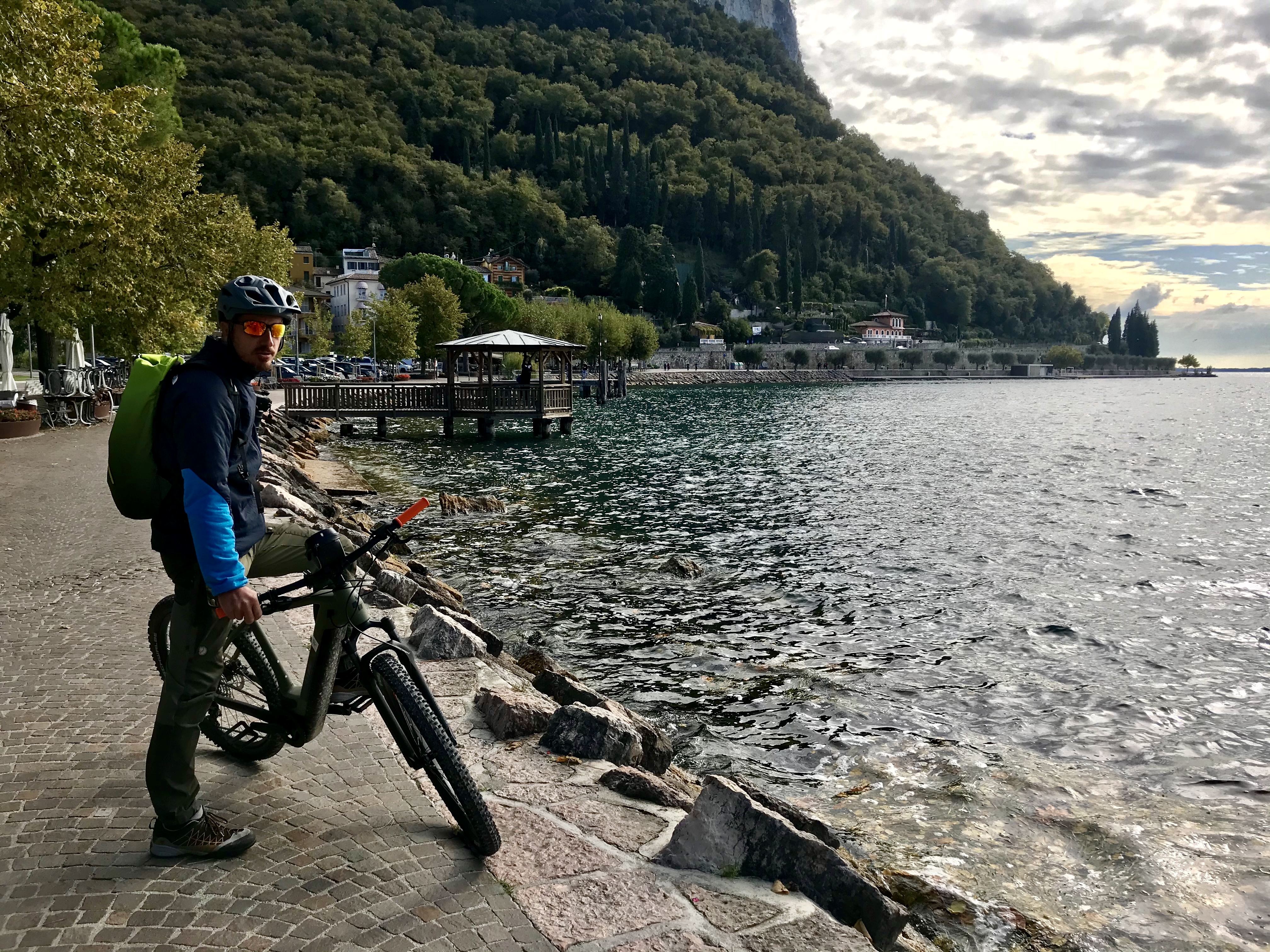 Wie es der Wetterbericht es vorhergesagt hatte, Topwetter. Wir stehen 08:30 auf und freuen uns über die lauen Temperaturen und frühstücken draußen. Bei dem tollen Wetter machen wir uns gegen 10:30 Uhr auf den Weg und radeln in die Berge oberhalb von Bardolino. Wir haben uns heute eine für unsere Verhältnisse schwierige Tour entschieden. Durchschnittlich 8% Steigung. Aber Dank dem starken Akku und 85Nm Drehmoment am Motor an unseren Bikes war das fast kein Problem, wir hatten nur die Restkapazität des Akkus falsch interpretiert, wir sind mit 5km Restlauf am Wohnmobil wieder angekommen. Unterwegs haben wir einen Snack in einem tollen Restaurant oberhalb des Gardasee`s genossen. Auf dem Rückweg haben wir wieder eine Pizza in Garda am Hafen „genascht“. :-)