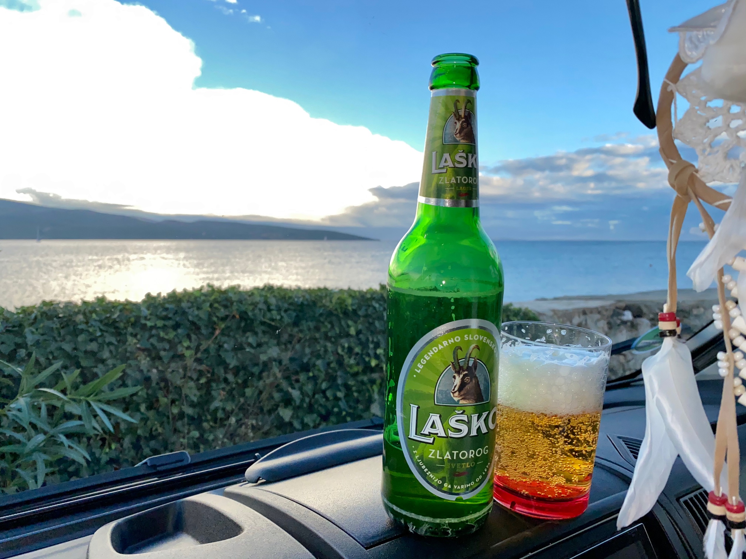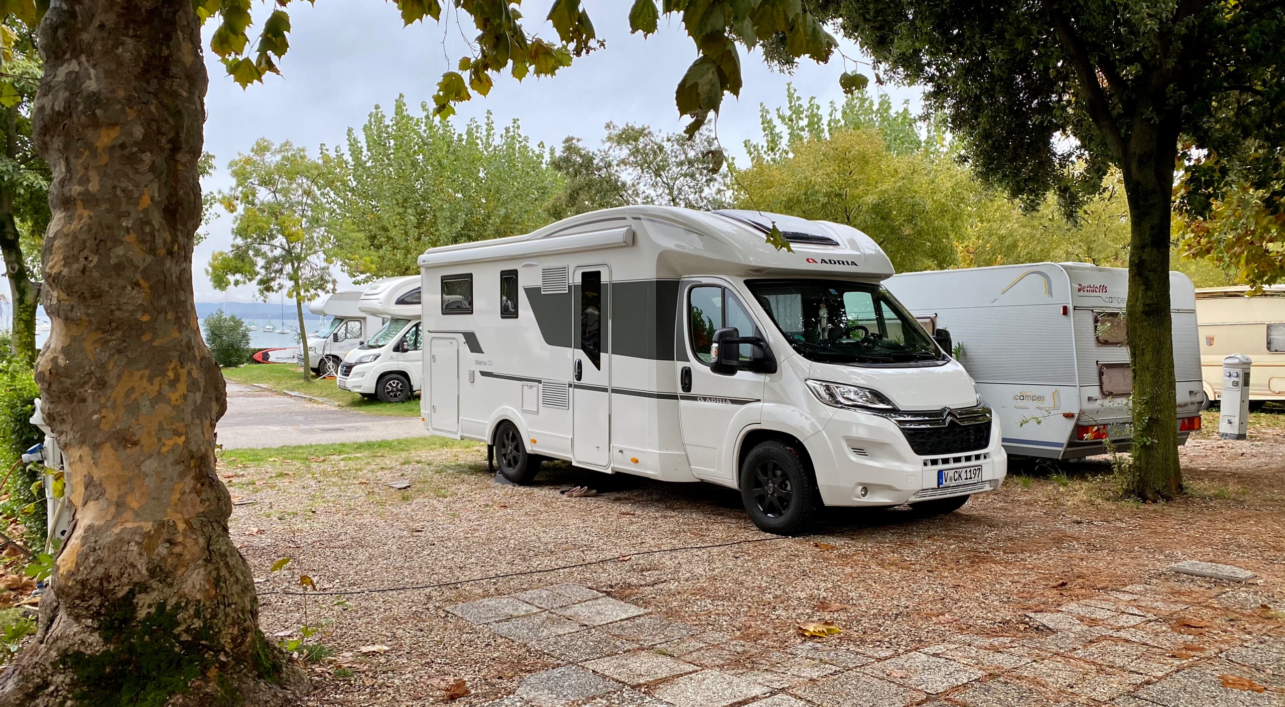 Unser letzter Morgen am Gardasee ist angebrochen, und ja, der Wetterbericht hatte komplett recht, es regnet die ganze Nacht und auch den ganzen Morgen. Wir frühstücken noch gemütlich und packen unsere Sachen zusammen. Wir verlassen den Campingplatz um 09:20 und kaufen noch in Bardolino Olivenöl. Bevor wir auf die Autobahn fahren shoppen wir noch bei ZENI vier Kartons Wein. Wir kaufen eigentlich immer wenn wir hier sind unseren Weinvorrat für fast ein Jahr. Also lassen wir knapp 120,-€ beim Weinhändler und laden unsere Errungenschaften ins Wohnmobil. Jetzt geht es aber wirklich auf die Autostrada A22 in Richtung Kroatien. Wir lassen Venedig, Verona und andere Städte rechts und links neben der Autobahn liegen, zielstrebig und durch wirklich heftigen Regen und starken Wind zuckeln in Richtung der Insel Krk. Kurz vor Trieste kochen wir uns auf einen Rasthof erstmal Nudeln mit Tomatensoße, abschließend wie es hier in Italien eben so ist, gibt es auch einen frischen selbst gekochten Espresso. Wir fahren durch Slowenien und an allen Grenzen werden wir von niemandem behelligt. Keine Tests, keine „Stäbchen“, keine dummen Fragen woher und wohin. Reisen wie immer.