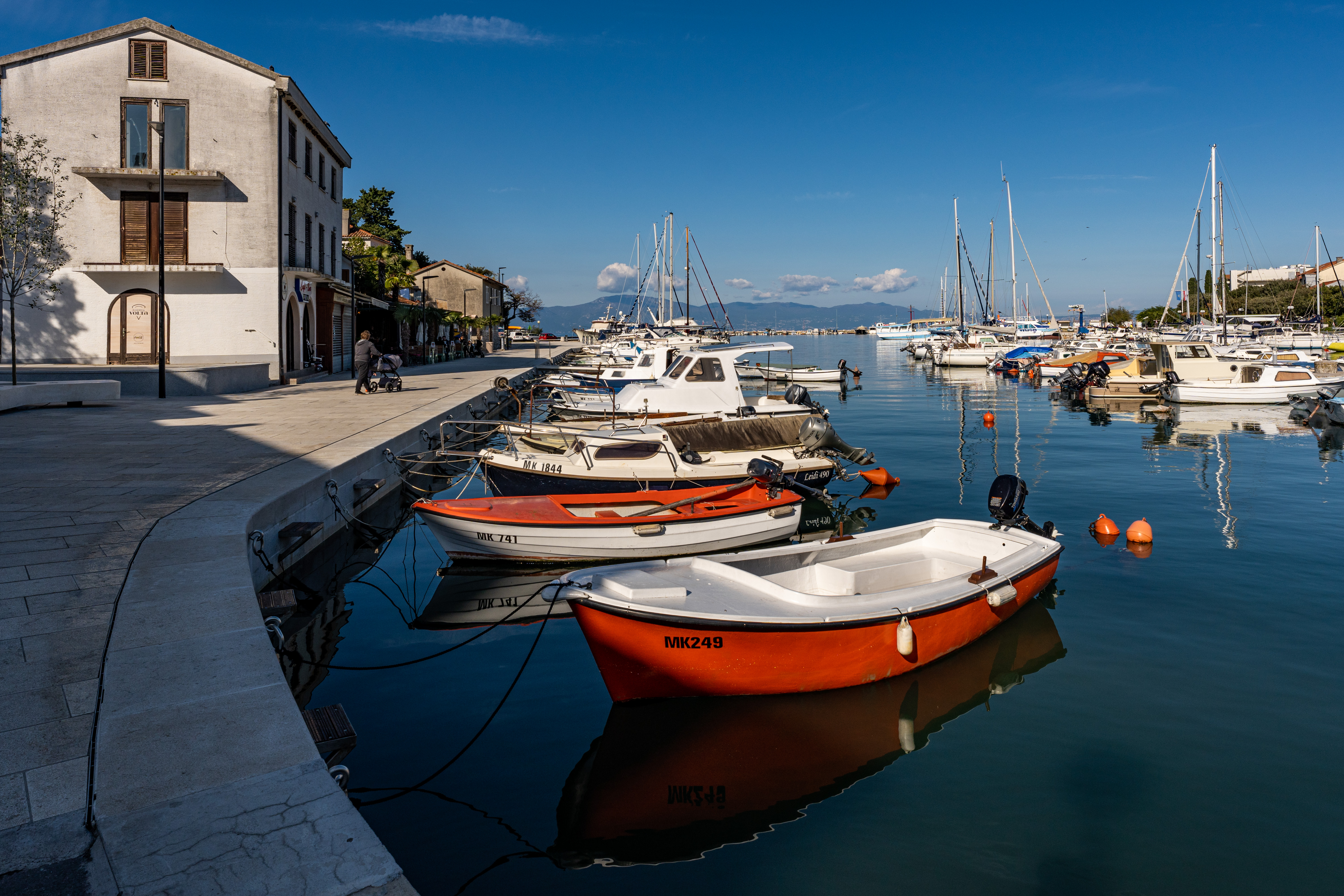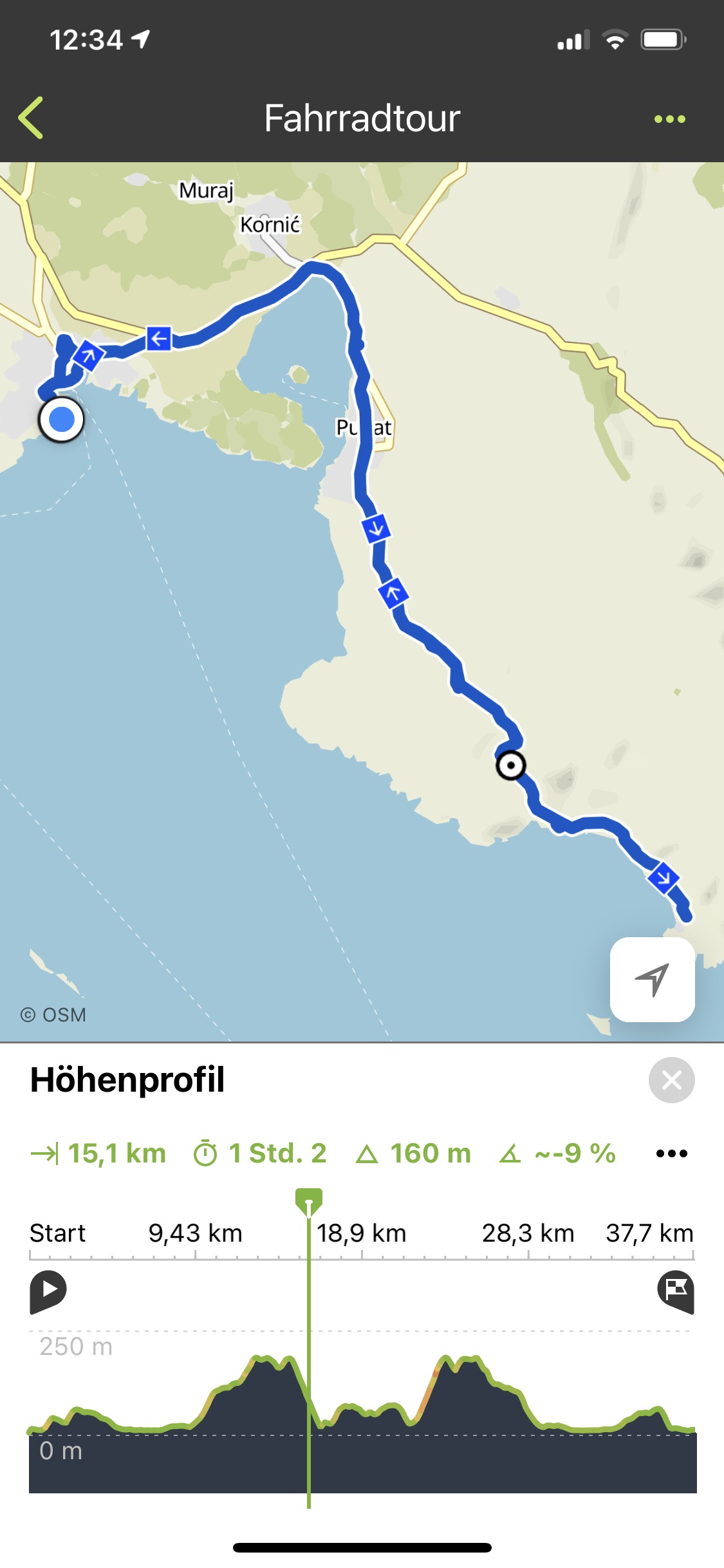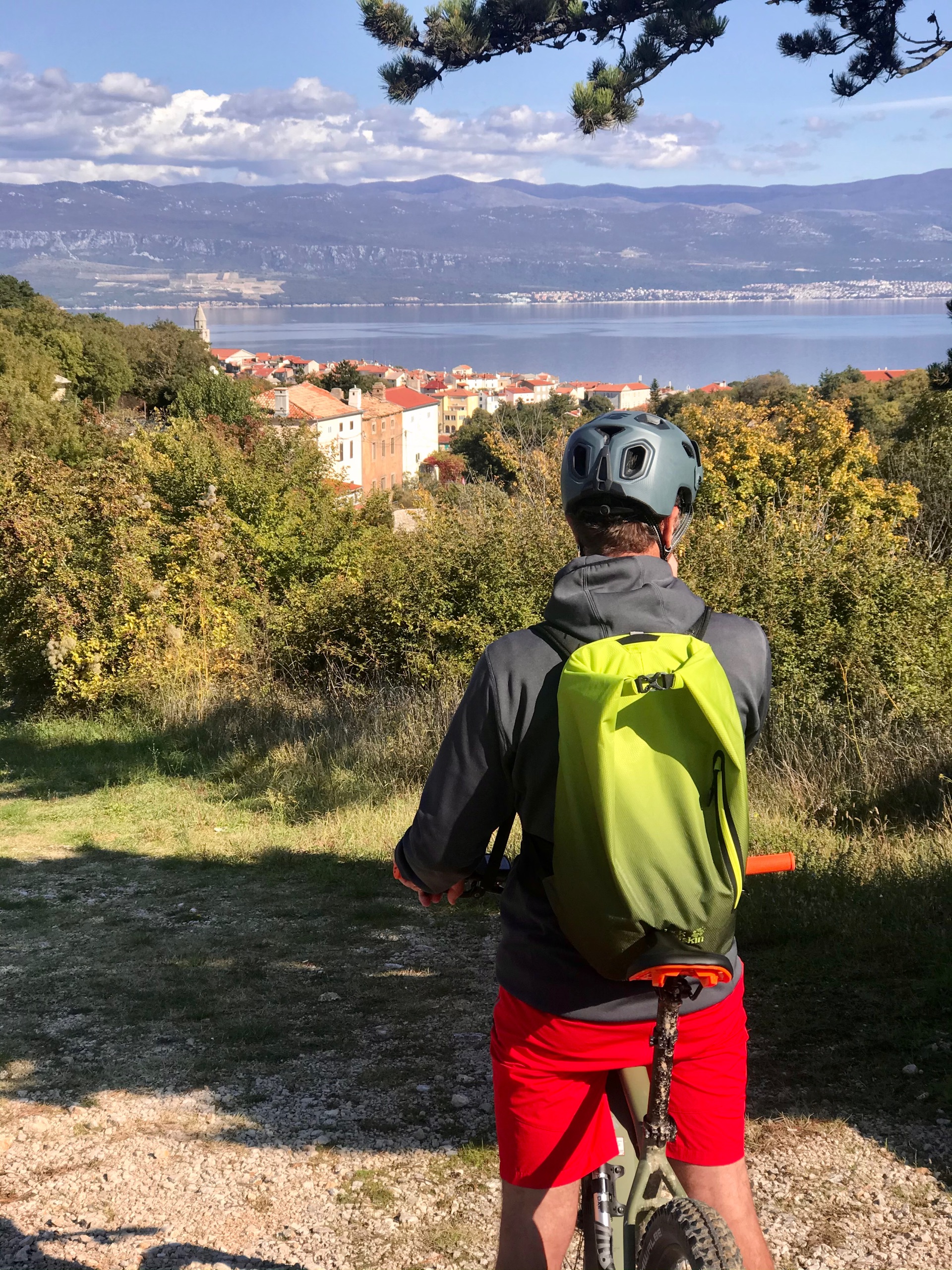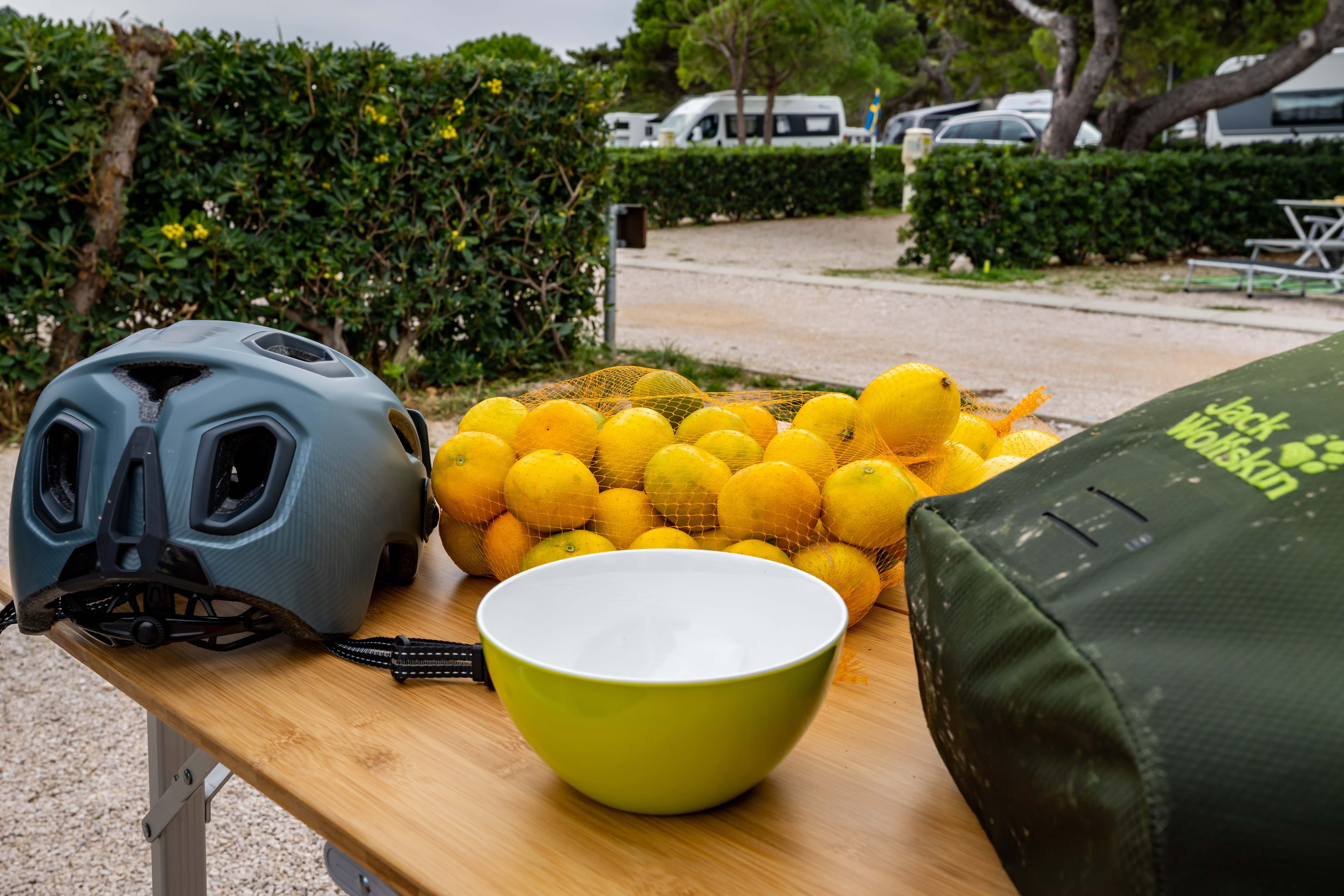 Guten Morgen Sonnenschein. Die Morgensonne scheint direkt waagerecht durch das Wohnmobil hindurch bis hinter in die Schlafkabiene. Wir frühstücken draußen. Katja geht ins Meer baden und dann machen wir uns mit dem Rad`l auf in Richtung Punat. Habe bei Komoot eine Runde gefunden die uns fast permanent an der Küste entlangführt. Wir durchqueren riesige Olivengärten - finden aber niemanden der Olivenöl verkauft, naja sind ja noch bisschen hier um das herauszufinden. In Punat essen wir am Hafen Spaghetti mit Seafood und trinken Wein dazu. Herrlich in der Sonne. Auf dem Rückweg fangen wir uns noch ein Netz Mandarinen und Zitronen ein. Kroatische - sehr lecker. Wir werfen noch einen Blick an den Hafen der Stadt Krk. Chillen am Wohnmobil mit Mandarinen.