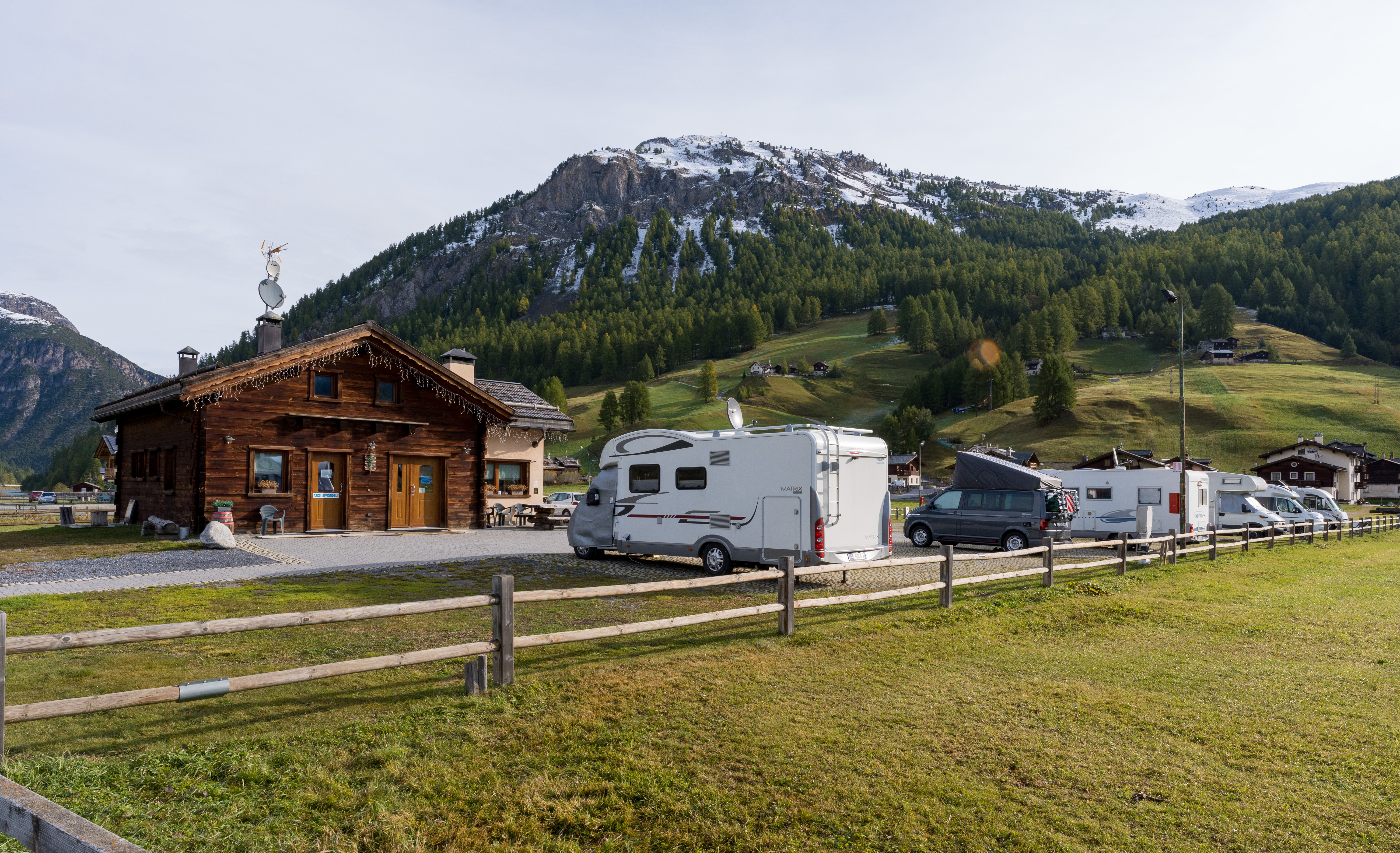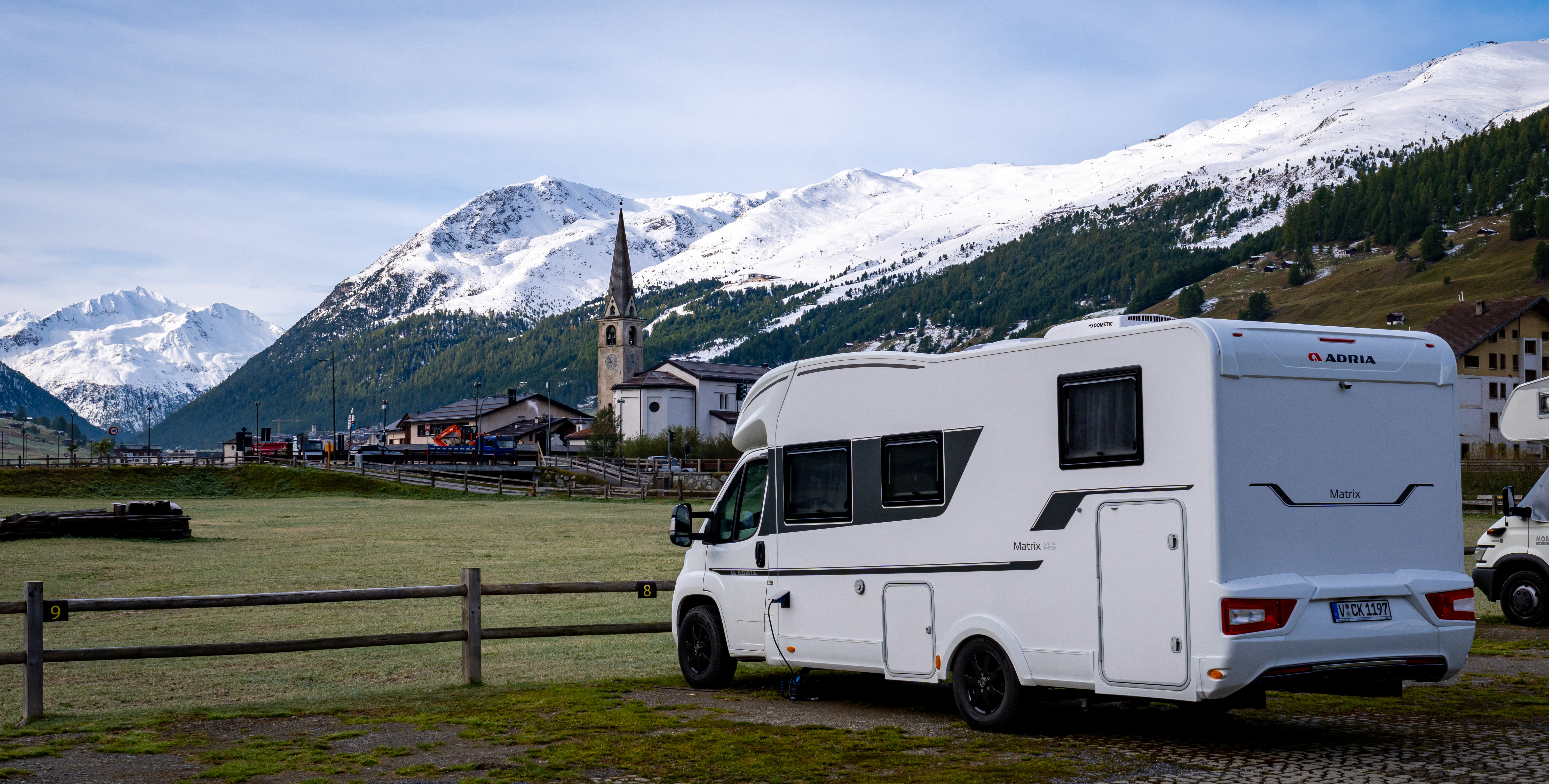 Heute heißt es Abschied nehmen von unseren beiden Weggefährten. Peter und Petra fahren zurück ins Vogtland. Für uns geht es jetzt erst einmal in Richtung Süden. Wir wollen in die italienische zollfreie Zone Livigno. Wir wählen den Weg über die Schweizer Landstraßen. Über St. Moritz und den doch schon recht winterlich verschneiten Bernina Pass kommen wir gegen 16:30 in Livigno an. Erstmal tanken. Da lacht das Herz, 0,77€/l Diesel! Da möchte man doch schon gern einen größeren Tank. Wir haben uns auf dem nicht besonders romantisch angelegten Campingplatz „Campeggio Mansueto“ einquartiert. Dafür ist er mit 20,-€/Nacht mit WoMo und zwei Personen recht günstig und noch dazu mit einer tollen Aussicht auf Levigno. Sanitäre Einrichtungen sind top und das Personal ist sehr freundlich. Bis ins Zentrum braucht man lediglich 5 Minuten. Haben wir auch direkt ausprobiert. Fix ein paar Sachen für das Abendessen besorgen. In unseren vier Wänden haben wir es uns dann schön gemütlich gemacht, draußen ist es bei 4°C dann doch etwas frisch!