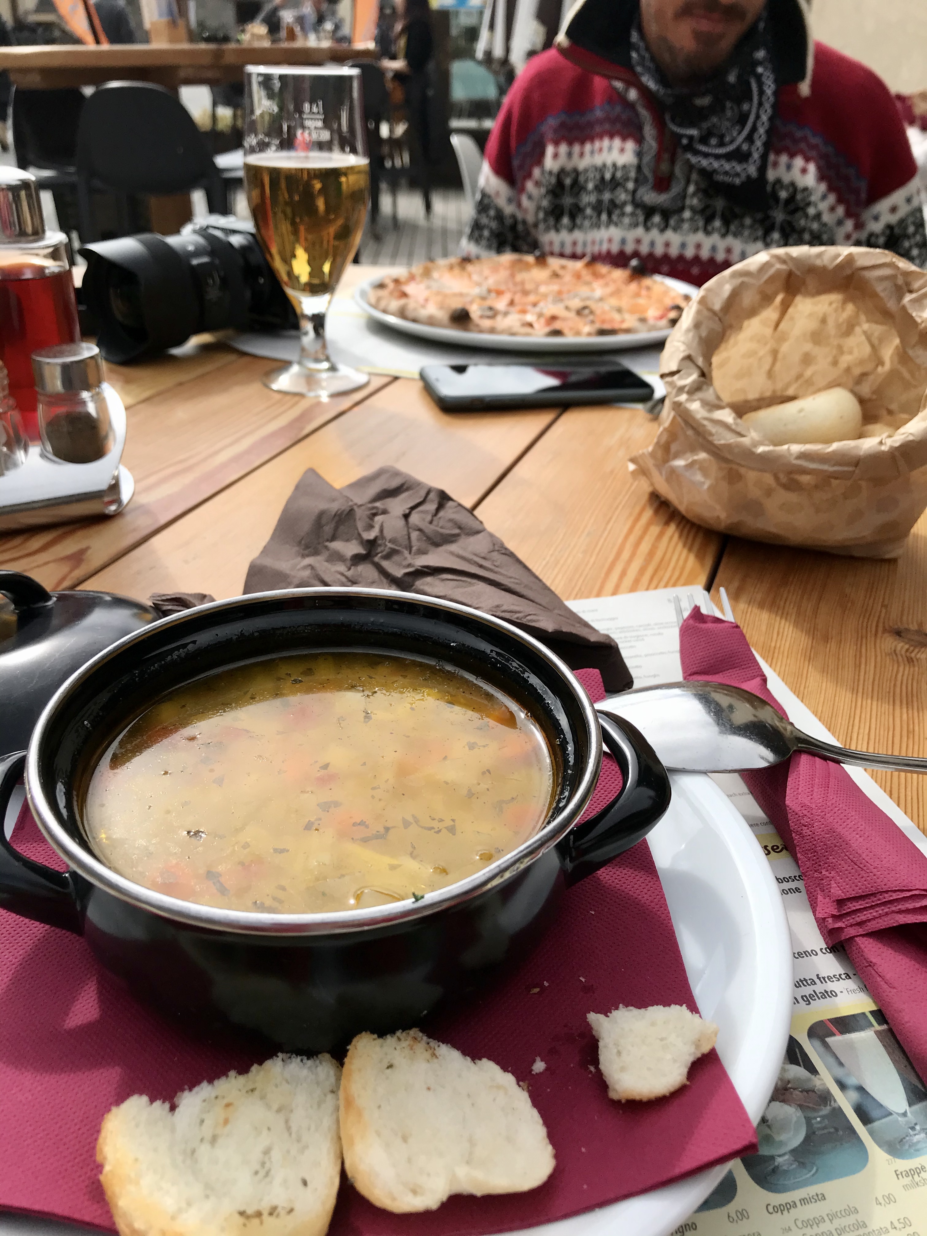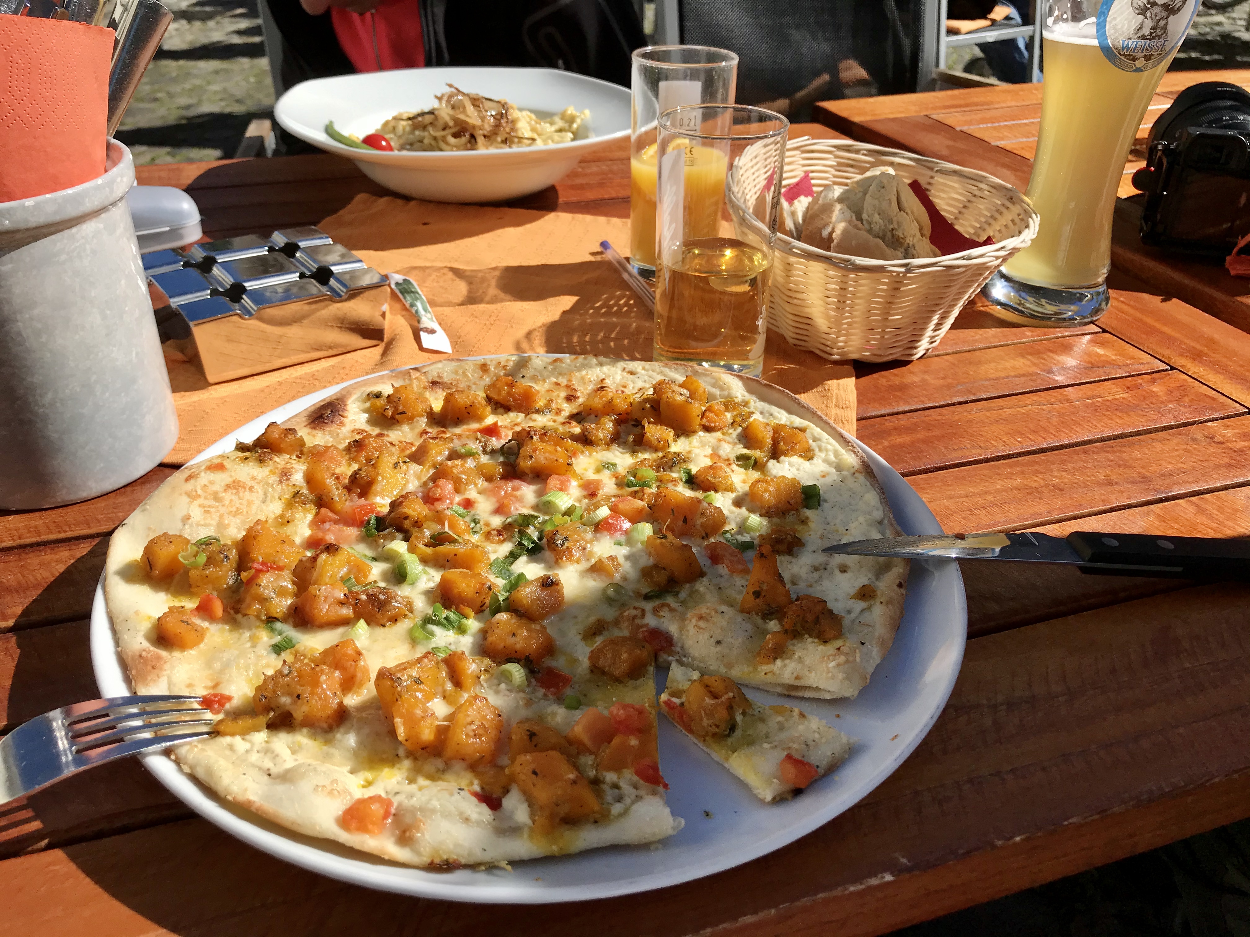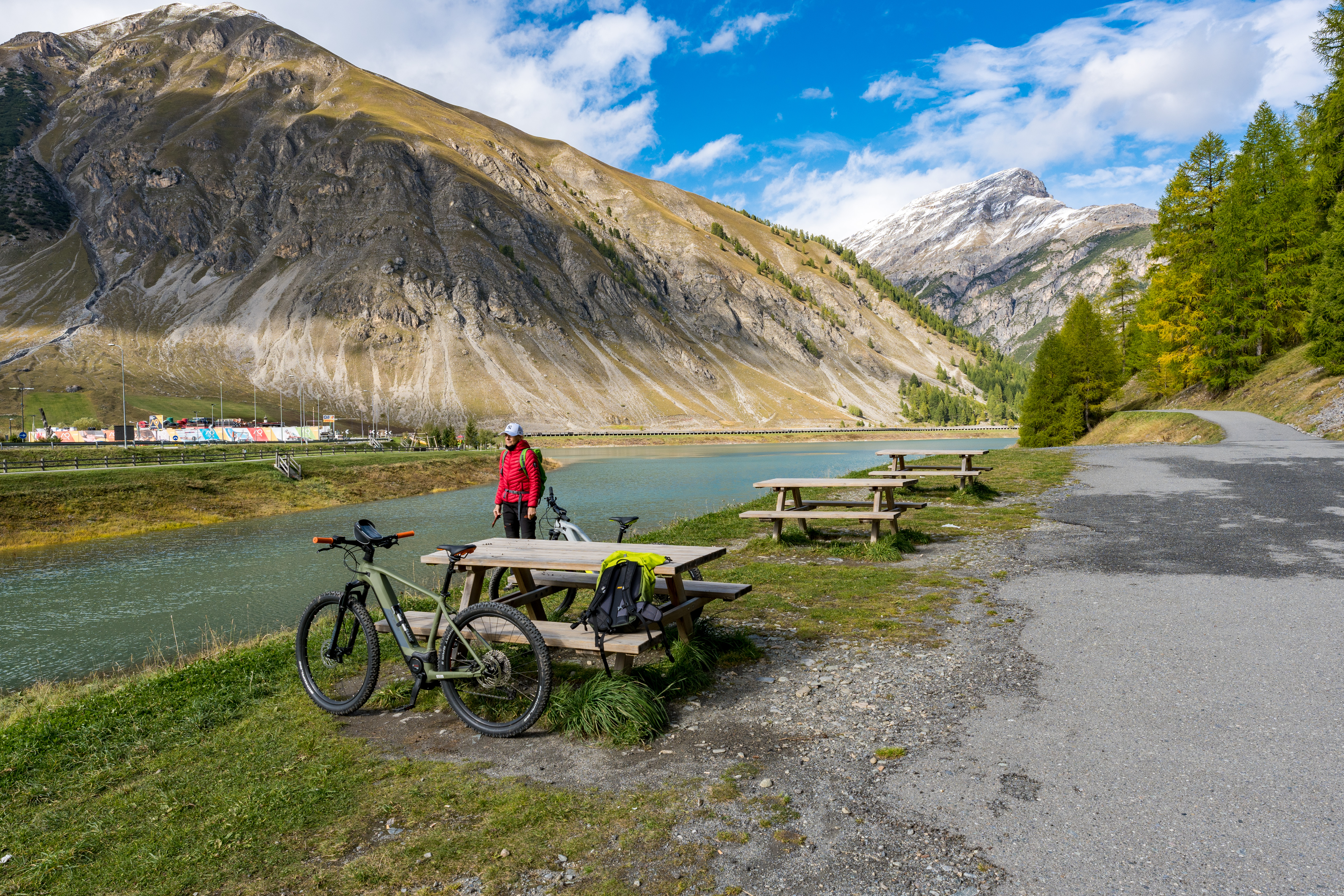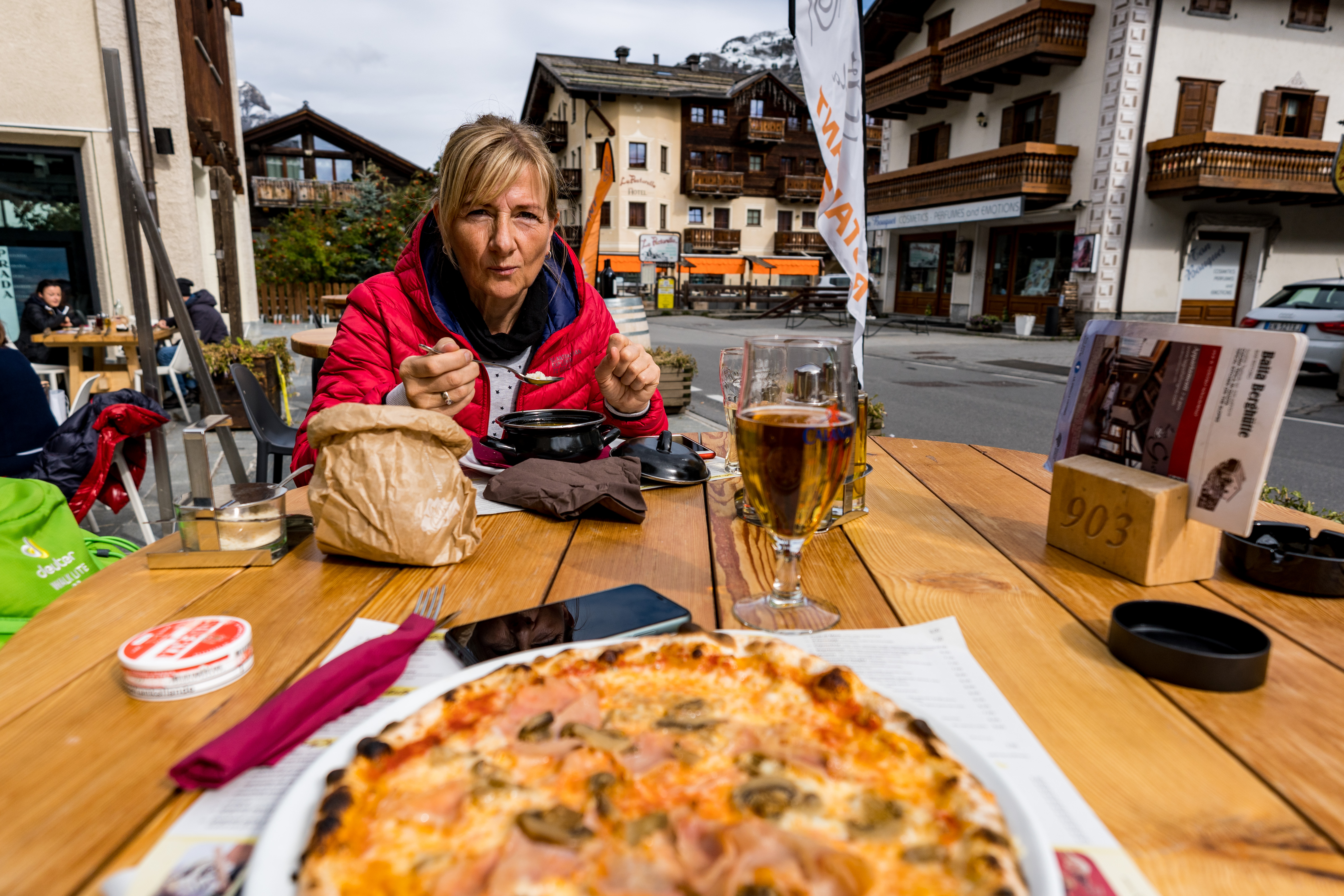 Guten Morgen. Es ist sau kalt aber wunderbar sonnig. Wir brechen gegen 09:30 Uhr auf Richtung Livigno Zentrum. Heute wollen wir biss`l shoppen. Neue Wanderschuhe für uns beide, Sonnenbrille für Christian und ne tolle Hose für Katja. Zu Mittag essen wir ganz typisch italienisch in einer kleinen Bar auf der sonnigen Terrasse eine Pizza und Minestrone. Kühles Blondes? Na klar. Unsere neu erworbenen Sachen schaffen wir erstmal zurück ins WoMo. Ganz gechillt schöne Mittagsruhe. Es hat kurz geregnet in der Zeit aber pünktlich als wir mit den Rädern starten wollen ist die Sonne wieder da. Wir schauen kurz an den Lago di Levigno, realisieren dann aber, dass er für eine „fixe“ Umrundung doch etwas zu groß ist. Kein Ding - auf in die entgegengesetzte Richtung. Wir radeln nochmal durch das Zentrum von Levigno und über den Bäcker wieder zurück zum WoMo. Chillen, Duschen, Abendessen - wir machen es uns gemütlich und planen die kommenden Tage.