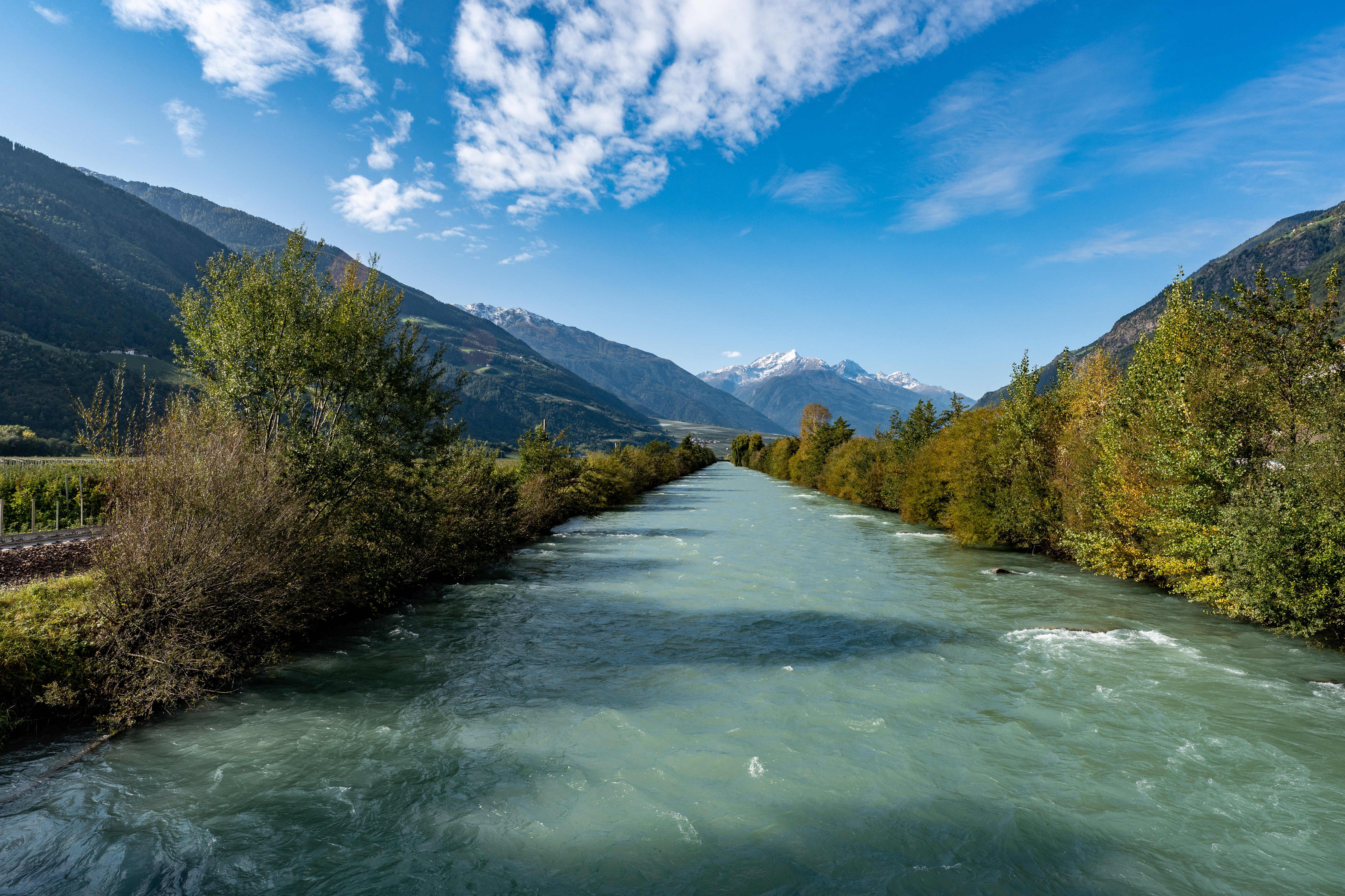 Auch unterwegs bekommen wir zum Thema Gasflasche leider immer nur Absagen. Schließlich finden wir in Latsch an der ENI-Tankstelle einen Mitarbeiter der das Problem schon seit Jahren kennt. Mittels eines Adapters kann er unsere leeren Flaschen mit LPG-Gas wieder füllen. Die Stimmung ist gerettet, und das Abendessen dann auch wieder warm. Wir beschließen gleich hier in Latsch auf dem Campingplatz zu bleiben. Gemütlich, fast leer, nur etwas laut. 44,-€/Nacht, Strom, Dusche ist inclusive. Geht doch. Ein gemütliches und leider wie sich später herausstellt etwas zu schattiges Plätzchen haben wir für die nächsten drei Nächte gefunden.