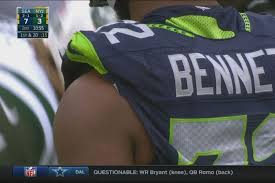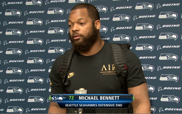 According to sports.yahoo.com, it states "The Pads allow the Seattle lineman greater flexibility while also showing his pipes. Michael Bennet, at 6'4 and 274 pounds, is a large defensive end. Bennet talked to SB Nation about his unusual shoulder pad choice, revealing that they help him perfect his hand technique as a pass rusher". This shows that he is using small shoulder pads on purpose.