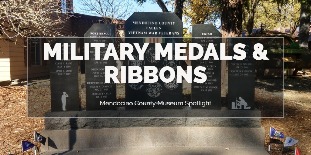 The Mendocino County Museum is pleased to be sharing 10 military medals and ribbons recently acquired for our education collection. The medals and accompanying research have been made possible through the generous donation and research of retired U.S. Army Major Dennis Miner.