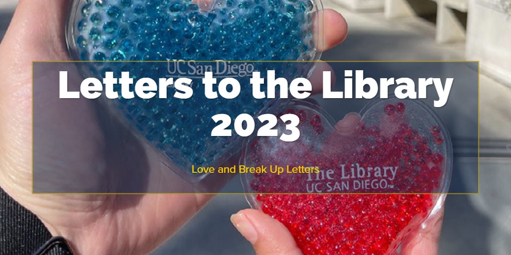 Dear UC San Diego Libraries, Happy heart health month in February 2023 I love: the international newspapers (e.g. El Pais), the dot to dot activity pages for destressing, and UCSD alumni access to the libraries. Respectfully, Anonymous UCSD Alumni Association Life Member