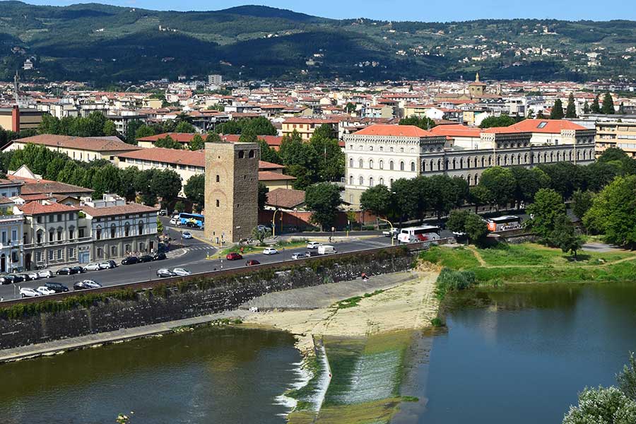 На набережной Lungarno della Zecca Vecchia (zecca - монетный двор) стоит одинокая средневековая башня. Построенная в XIII веке как часть крепостной стены, она была самой северной охранной фортификацией города. Под рекой башня соединялась туннелем с башней Сан Николо, стоящей на другом берегу. Этим тоннелем пользовались партизаны во время оккупации Флоренции немецкими нацистами.