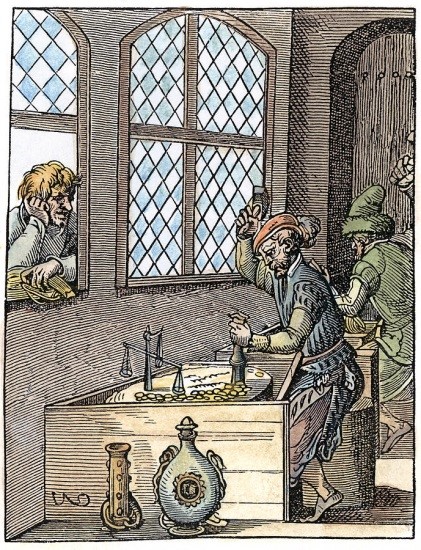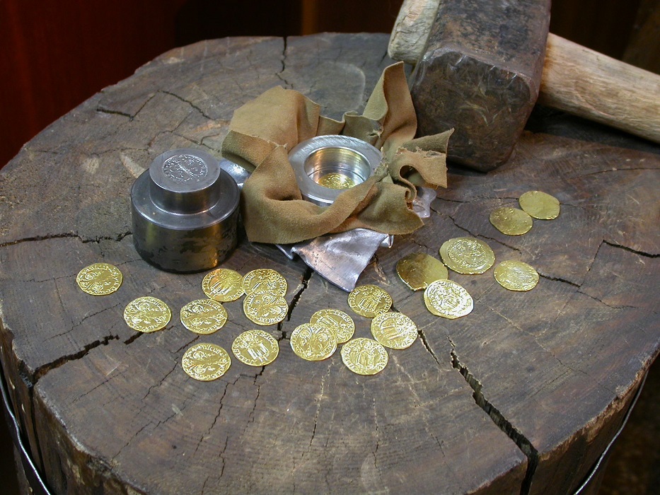 Так как чистое золото очень мягкое, монеты гнулись и стирались. Поэтому старые ценились буквально столько сколько весили. Во избежание потери веса золота, монеты запечатывали в кожаные мешочки прямо на монетном дворе. Расчёт в крупных операциях шел мешочками, пока в XV веке не начали использовать векселя.