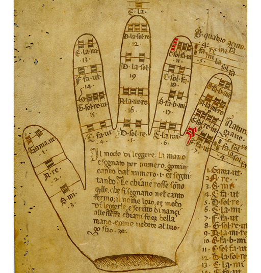 Берите чернила и делайте на ваших пальцах отметки фраз, начиная с Re. А так как мы поем на латыни, на которой «отметка» - это «нота», получится 5 пальцев - 5 нот.