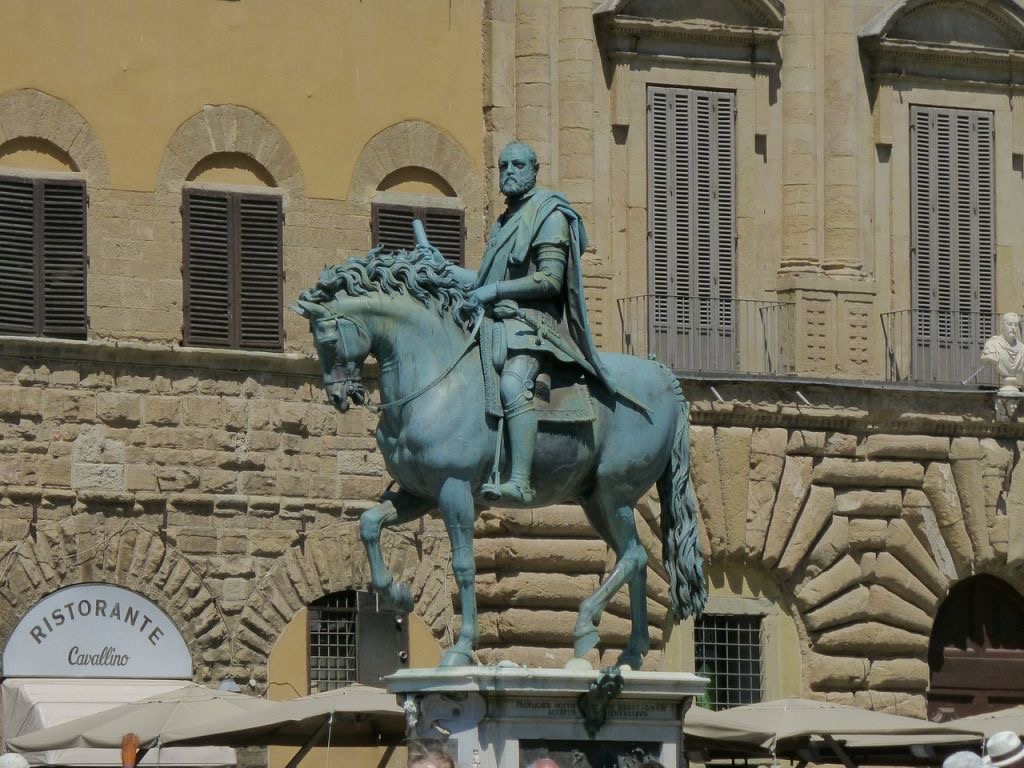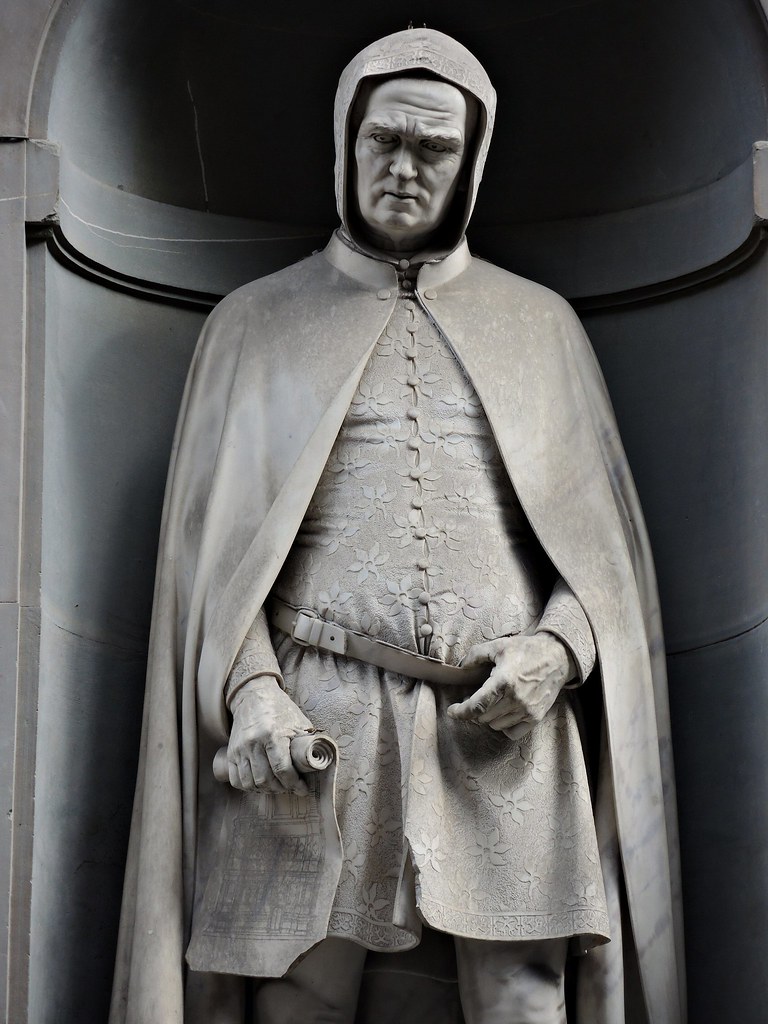 Помимо, уже знакомых нам, Микеланджело, Леонардо, и Данте, здесь присутствуют интересные персонажи. Например, Пьеро Каппони — глава правительства конца 400’. В 1494 году французский король Карл VIII вошел во Флоренцию, и встретился с Каппони, выдвинув унизительный ультиматум. «Иначе мы будем дуть в наши трубы», пригрозил король. На что гордый флорентиец ответил «Тогда мы начнем бить в наши колокола». В итоге, благодаря дипломатическим способностям и несгибаемой воле Каппони, французы удалились из города без нанесения ему ущерба.