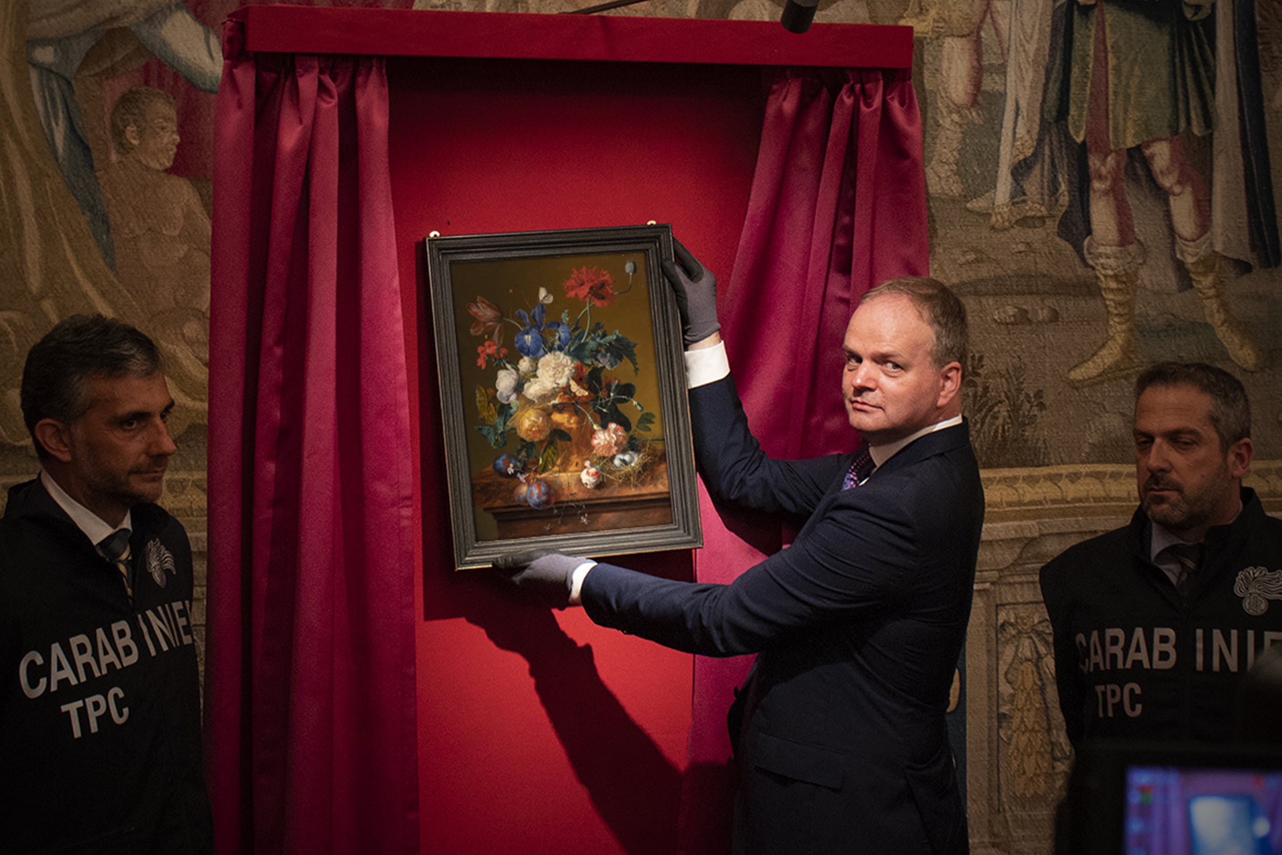 — Ты уже видела картину? — спросила Джорджа из зала Леонардо смотрительницу соседнего зала Рафаэля, — «Ваза с цветами» Яна ван Хейсума. В великолепном состоянии. Как ему удалось ее вернуть по прошествии 75 лет, непонятно.