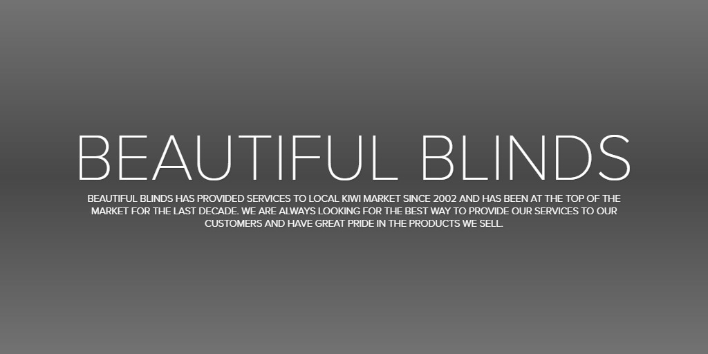 BEAUTIFUL BLINDS Beautiful Blinds has provided services to local kiwi market since 2002 and has been at the top of the market for the last decade. We are always looking for the best way to provide our services to our customers and have great pride in the products we sell.