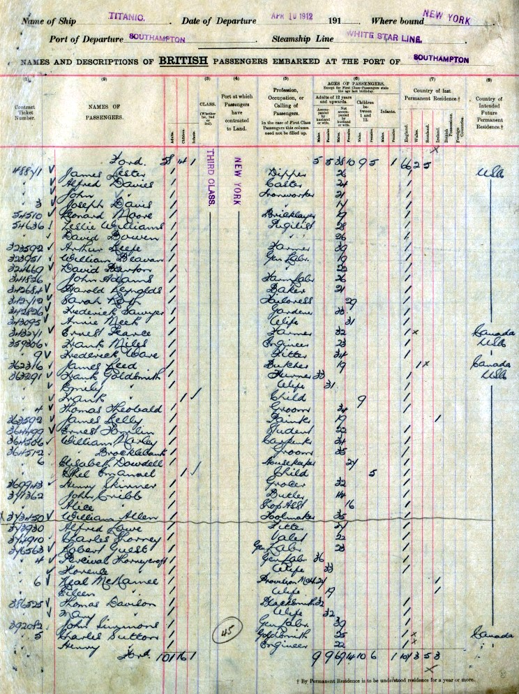 When does it show? It shows the names of the Titanic's passengers.