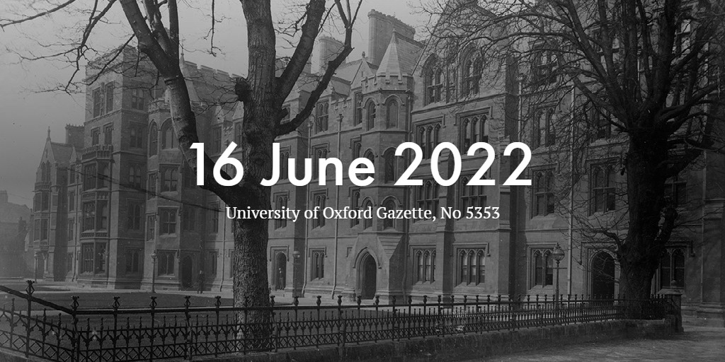 New members of Congregation (J M Brown; P C B Cartwright; F V R Dean; B F Donnelly; S Dutta; T E Franklinos; E A Hammond; A Johnson; J R Kirkpatrick; R O M Mallalieu; J McCormack; J Mundey; D P O’Brien; A Roman Zozaya; R A Sawyer; S J Schneider; M Stepney; B Sun; A M Walker; J Yangchan)