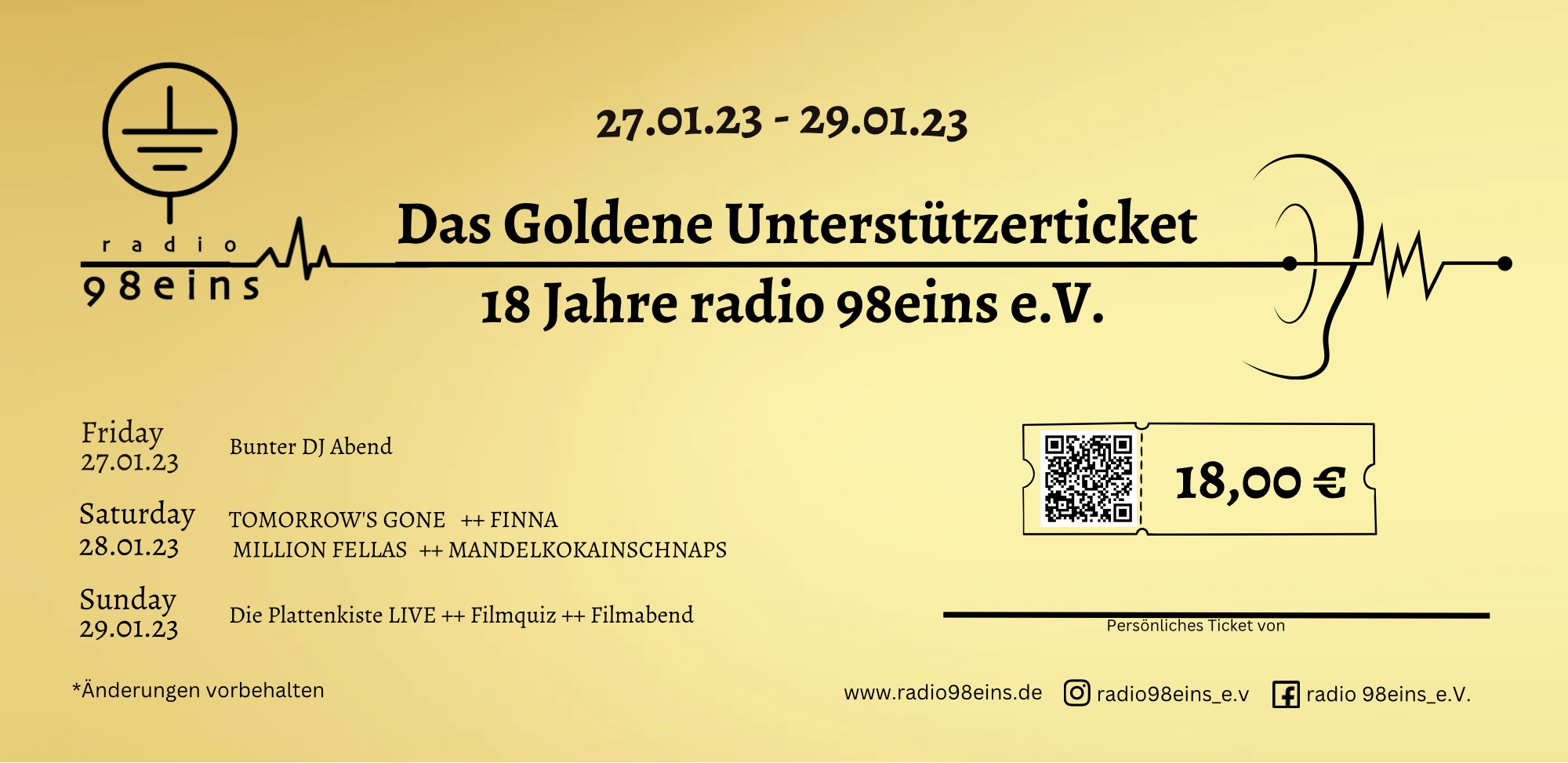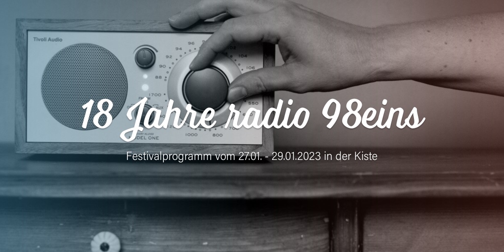 18 Jahre radio 98einsFestivalprogramm vom 27.01. - 29.01.2023 in der Kiste