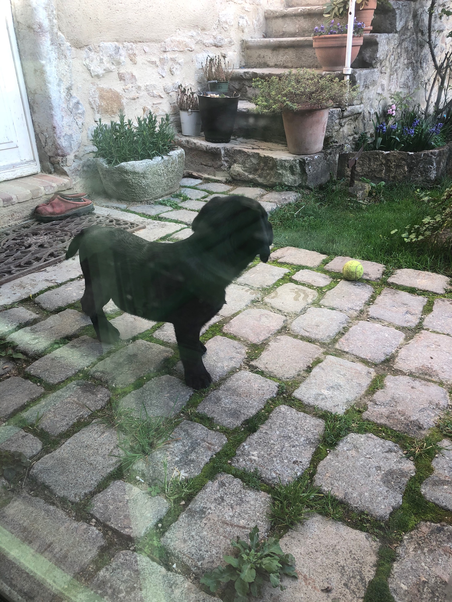 Je suis RIB, un chiot labrador noir de deux mois et je suis arrivé à Misérieux avec mes 4 frères et soeurs Rumba, Rusti, Ryder, River. On est tous nés le 10 janvier 2020 : des quintuplés ! Mais, des copies de moi... Notre maman Molly a été très courageuse. On a tous un collier de couleur différente, car il faut nous reconnaître. Moi, j'ai un collier rouge. C'est Maj' qui est venu nous chercher, juste avant le confinement, au CESECAH à Lezoux le mardi matin, avec le bus des chiens. J'ai versé une petite larme, car j'ai quitté ma maman à ce moment-là. Oups ! Je n'étais pas tout à fait prêt à quitter la maison. Maj' nous a groupés dans des cages pour faire le trajet. Et on s'en est donné à coeur joie : on a couiné pendant tout le trajet... Maj' était content d'avoir une compagnie aussi joyeuse pendant 1 heure et demi. Arrivés au chenil de l'école, Martine et Fifi, les éducatrices, nous ont donné nos croquettes. On est petits et on mange trois fois par jour. Mais, moi je mangerais bien une fois de plus... Je ne pèse que 8 kg pour l'instant ! Et puis, nous sommes partis vers nos familles de confinement en début d'après-midi. Même pas le temps de faire la sieste...