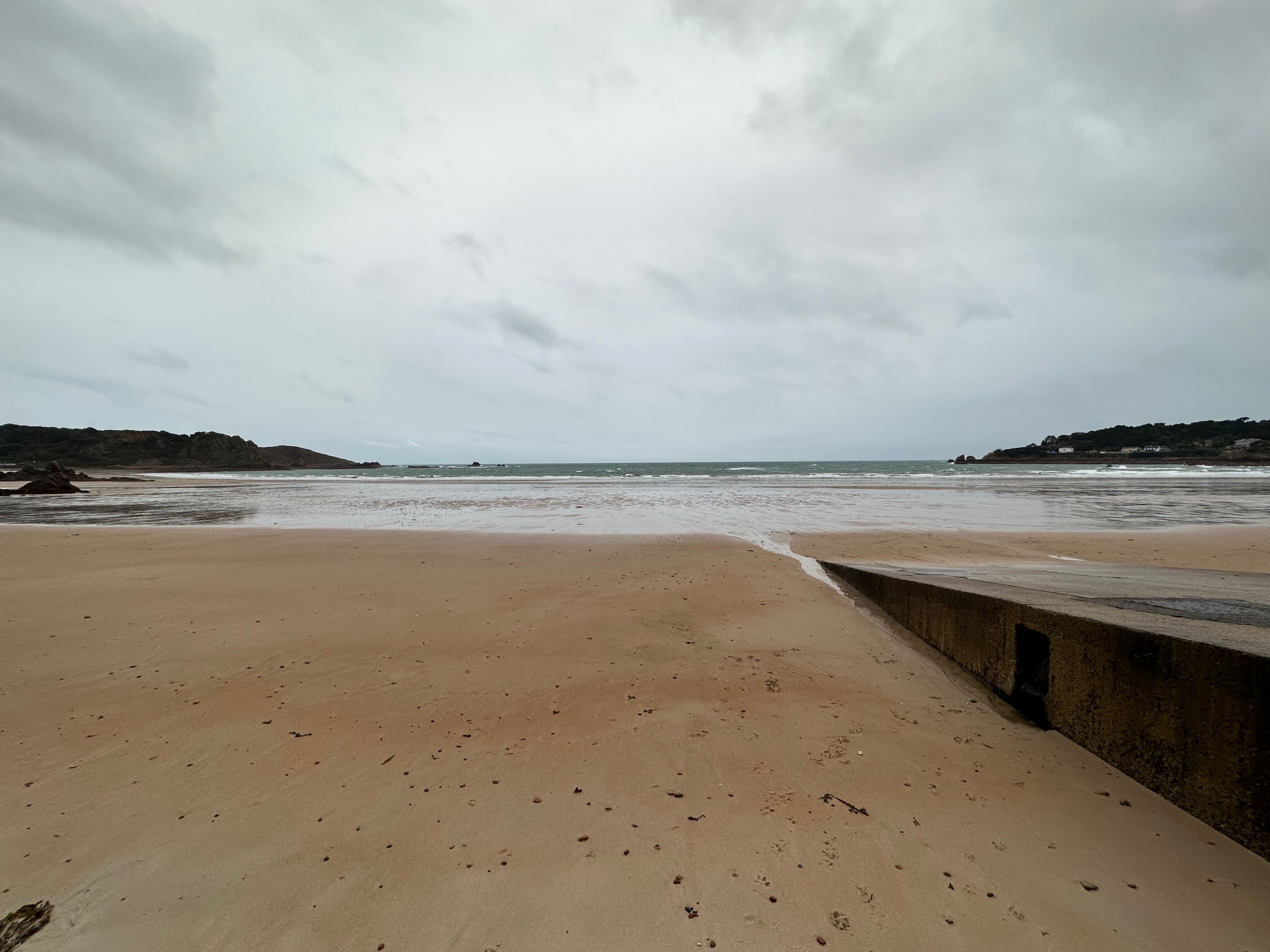 With an hour to kill, before dinner and also of remaining daylight, we walked round to the beach. The hotel is directly on the seafront in the centre of St Brelade’s Bay, in quite a spectacular setting. With the rain and wind it was all lovely and bleak.