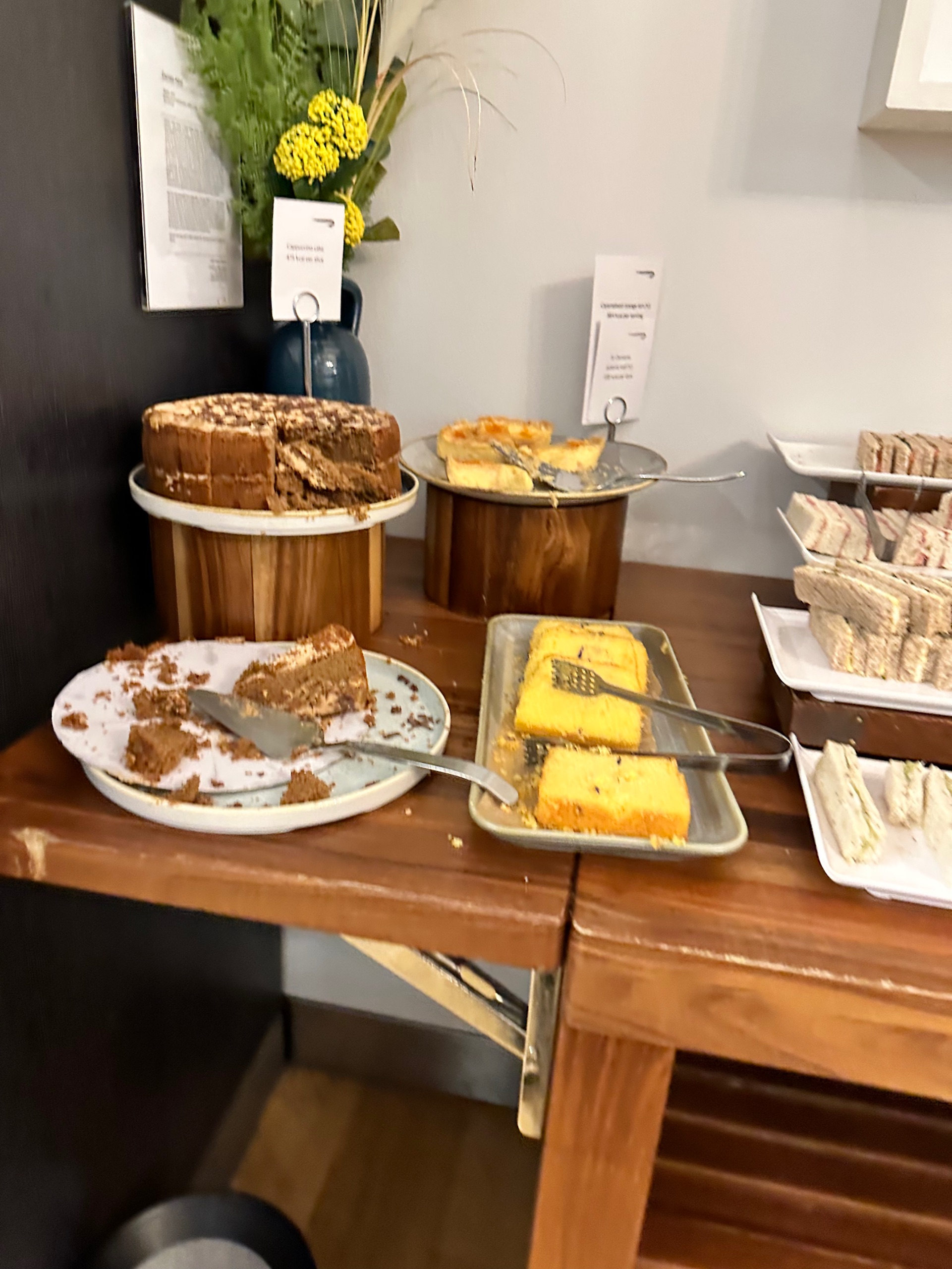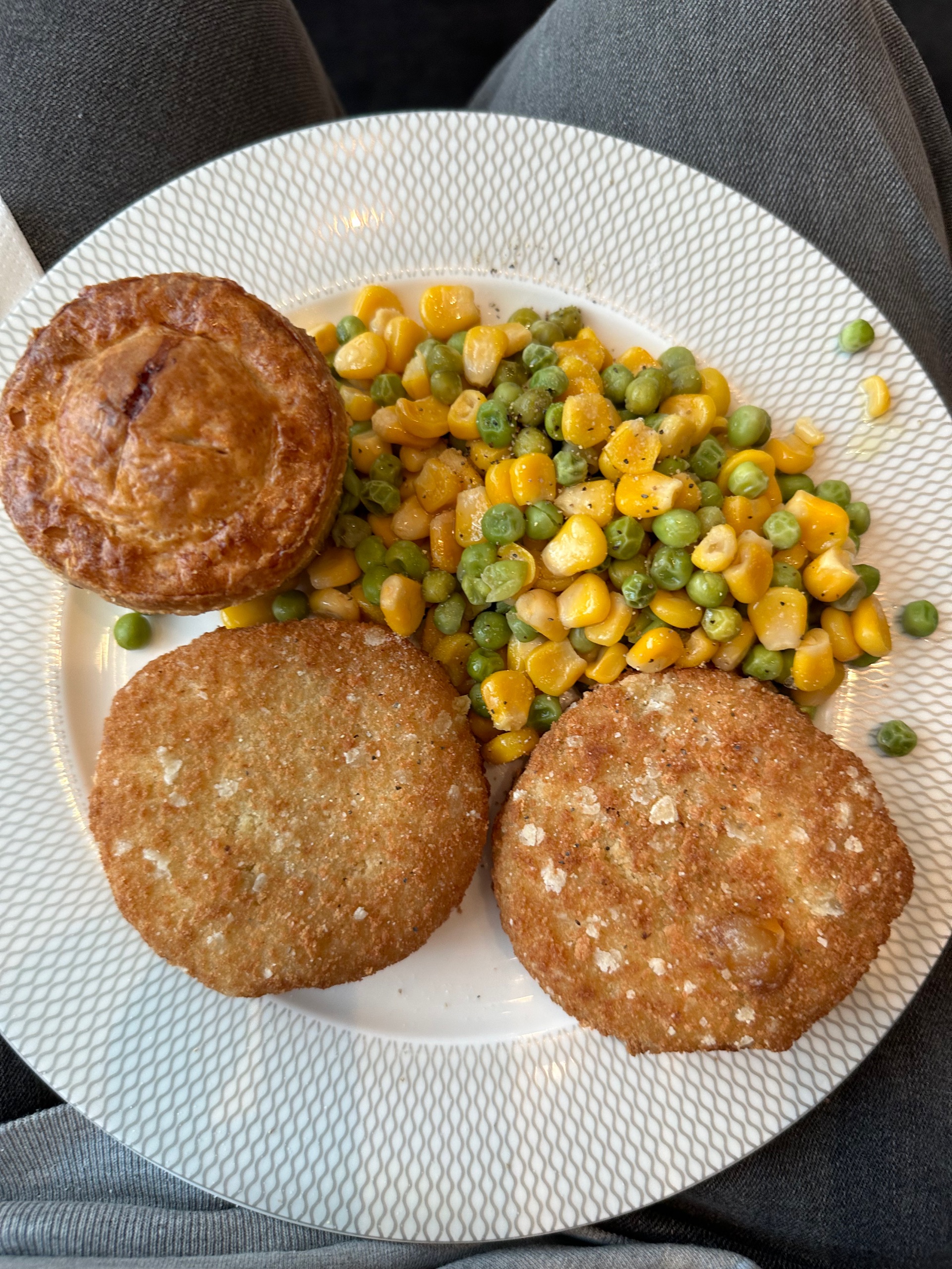 Thing is, the “lounge menu” offered only 3 choices of food, all very unappetising. Whereas the buffet is in full pre-pandemic mode, so that’s where I filled my plate with spinach, peas, fish cakes and pie. It were all really quite nice. As was the champagne, a second glass of which came swiftly after the first.